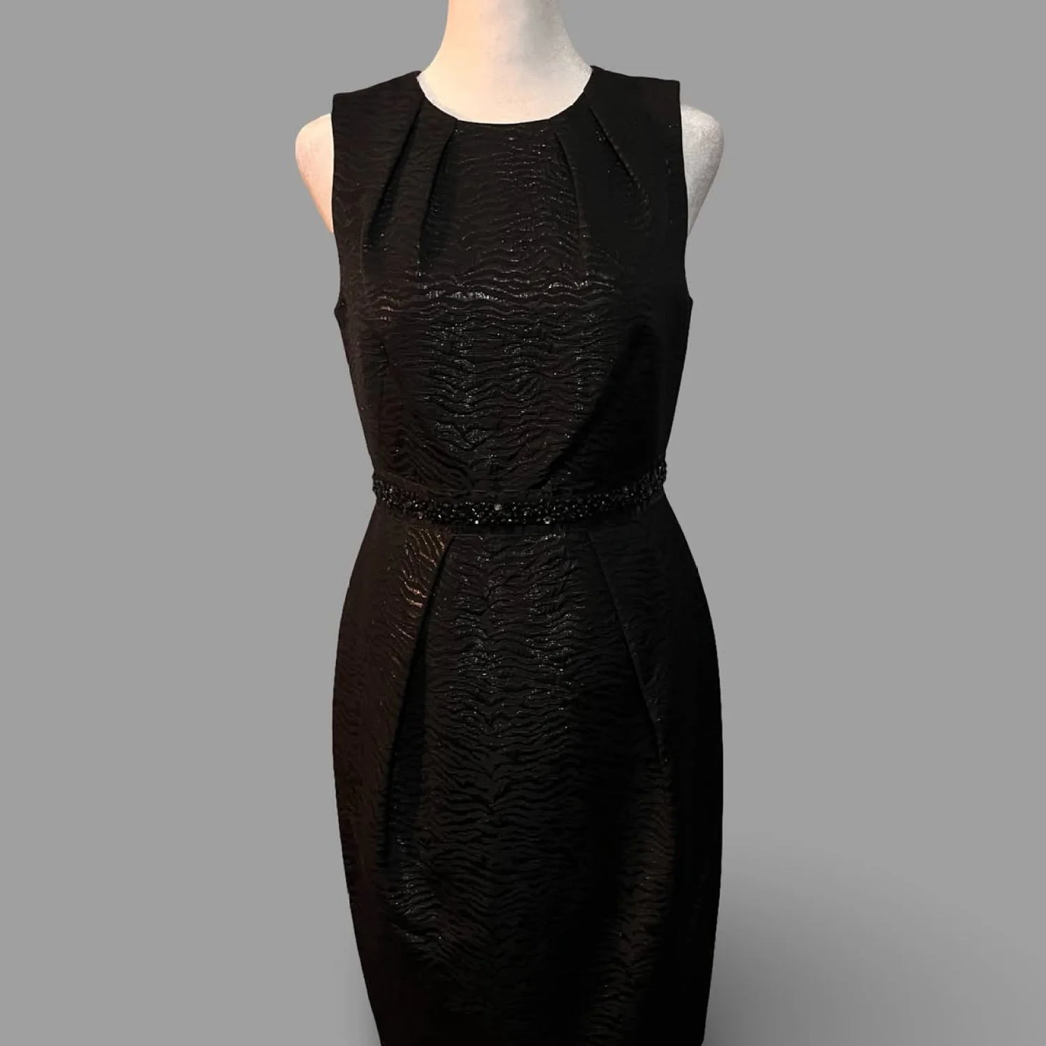 Black cocktail dress with jeweled waist accent