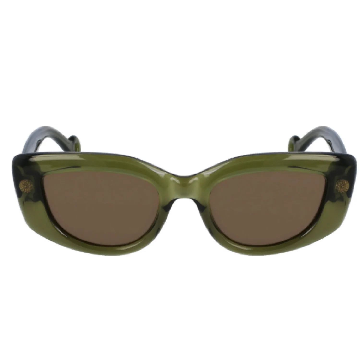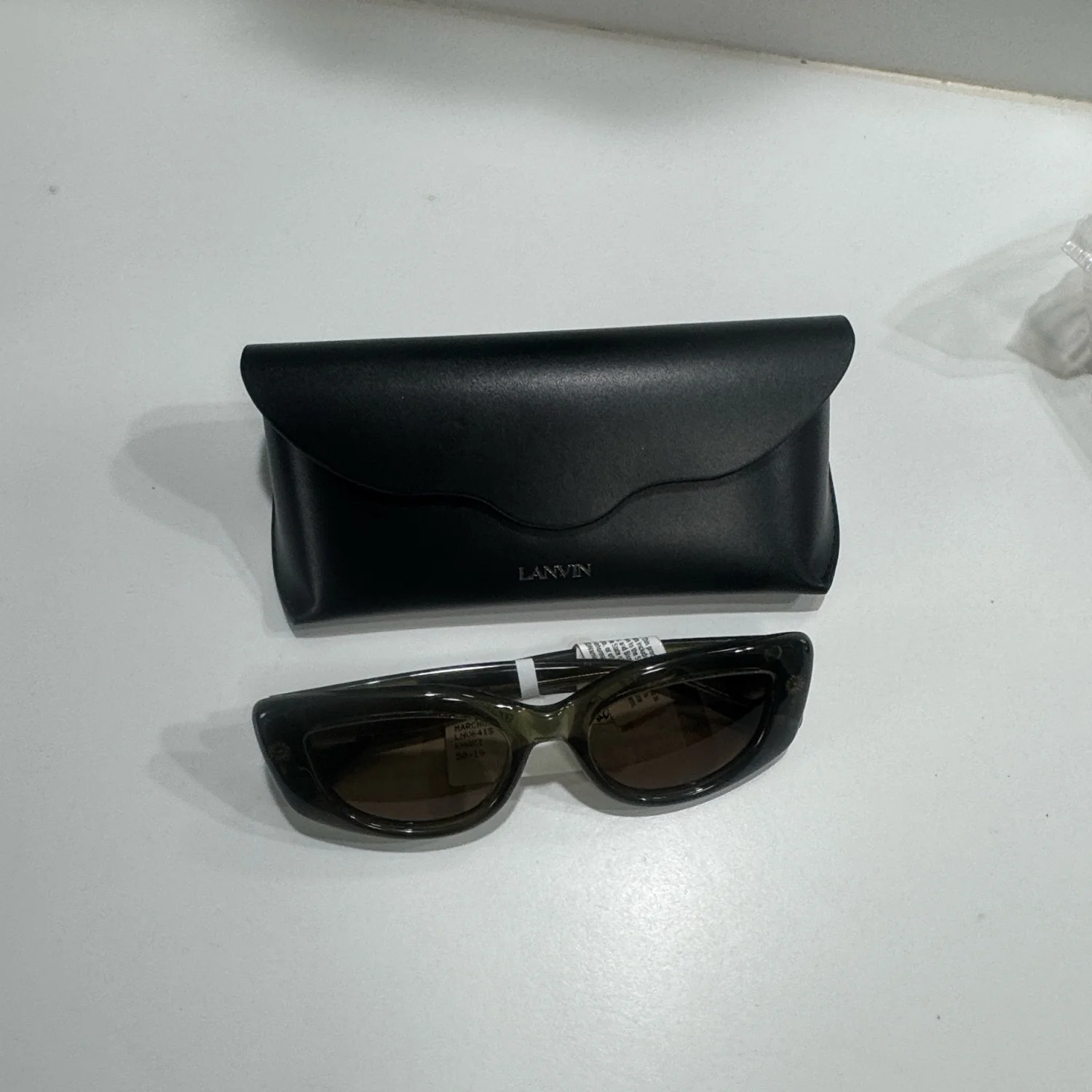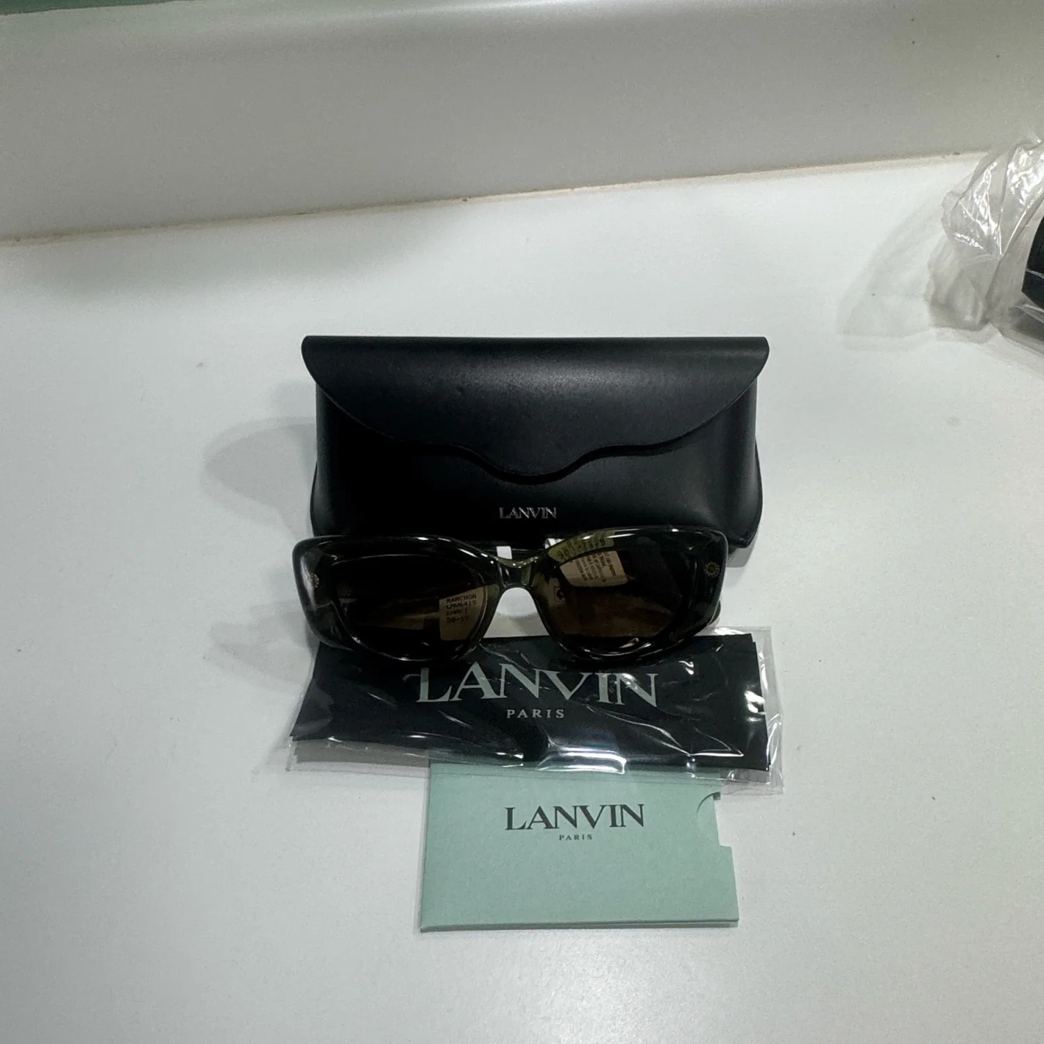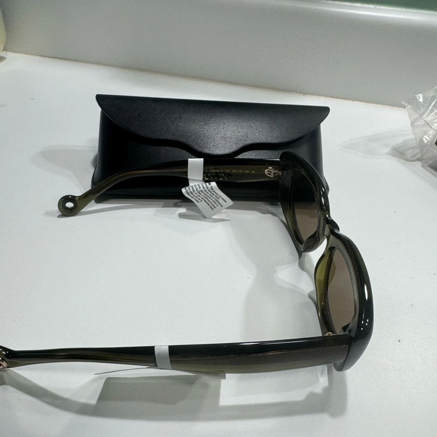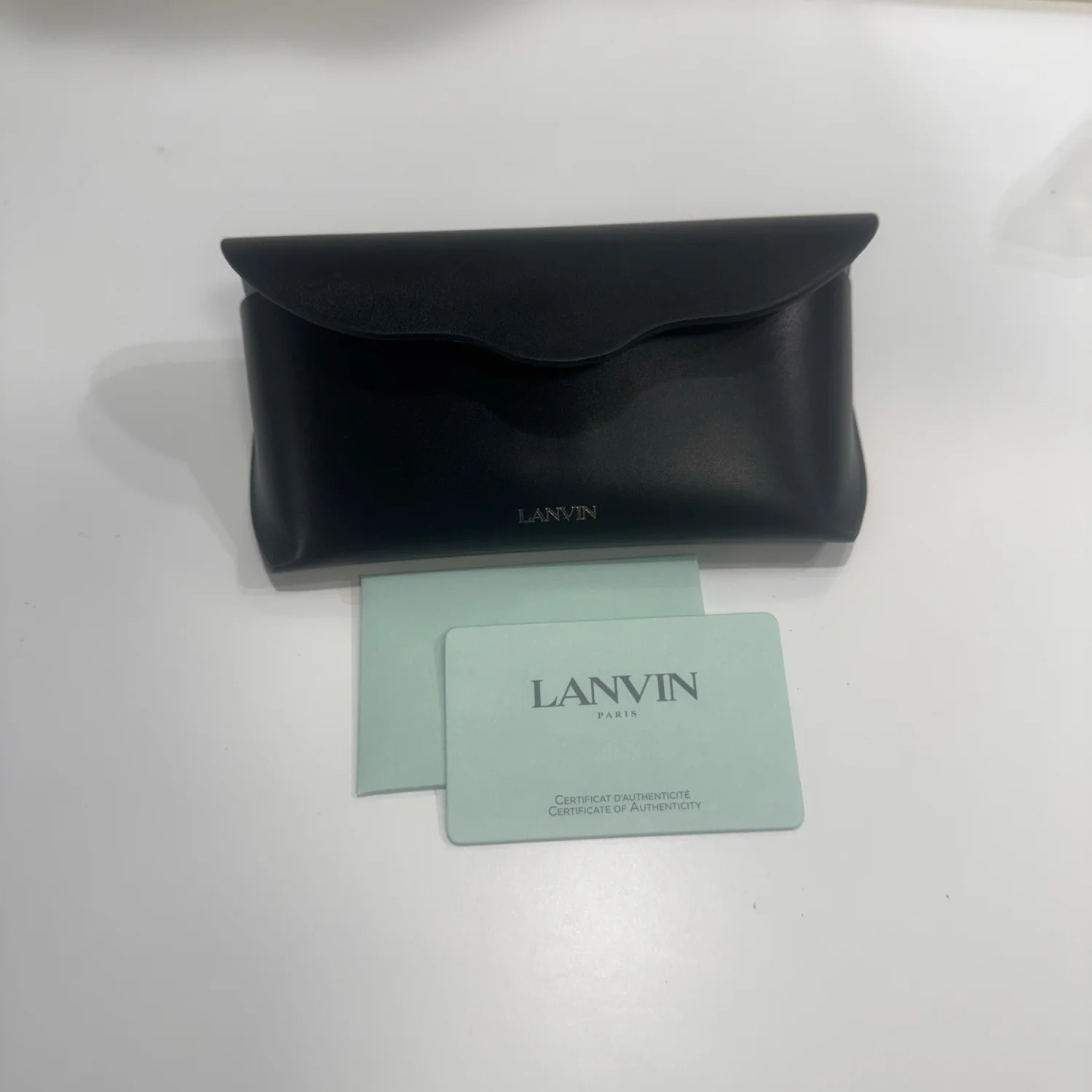 Luxurious Lanvin cat eye sunglasses featuring a sleek black frame and dark lenses, perfect for a sophisticated look. Comes with a stylish Lanvin branded black leather case and a certificate of authenticity. Ideal for adding elegance to any outfit. #Lanvin #Sunglasses #CatEye