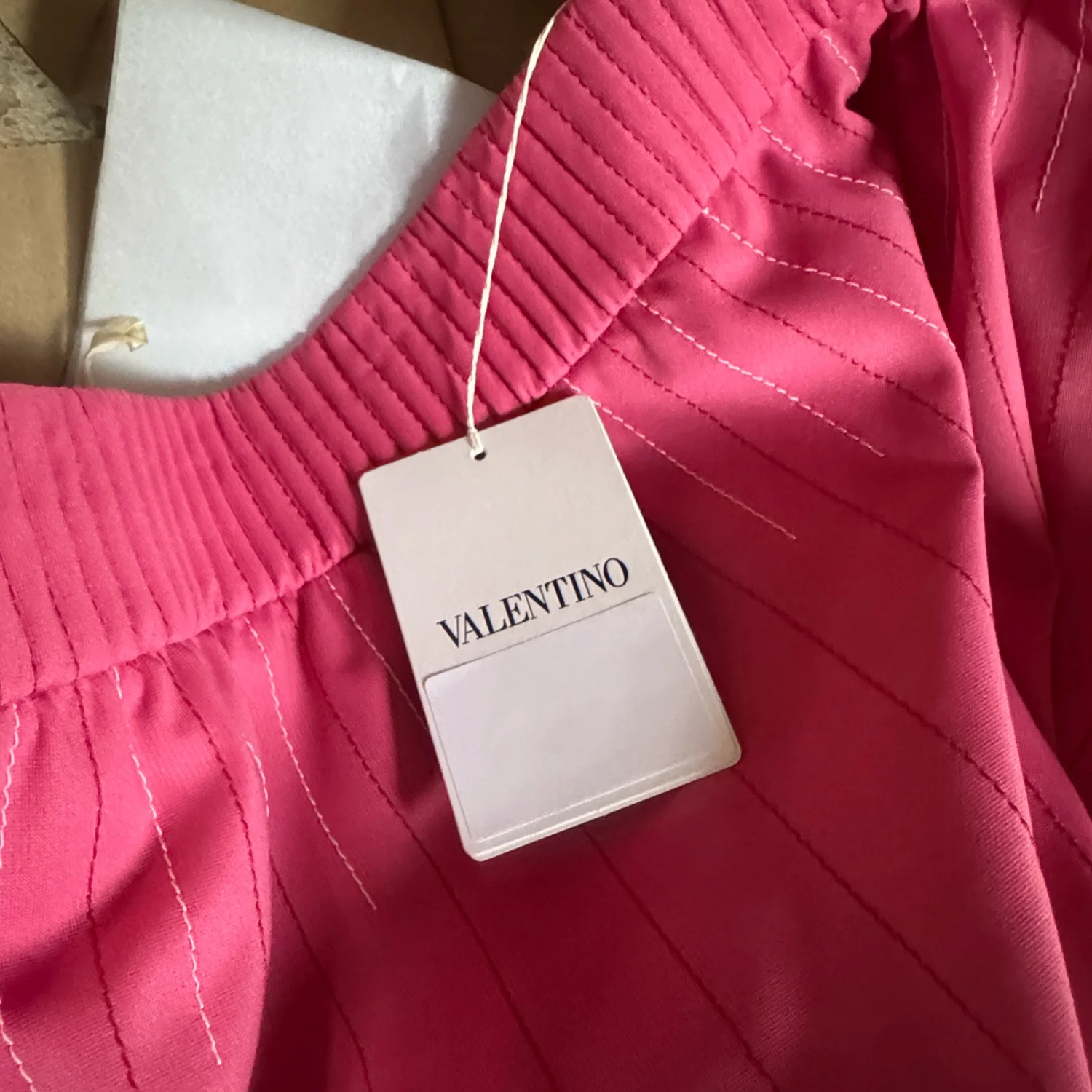 This beautiful pink skirt by Valentino features an elegant pleated design. Made in Italy, it offers a classic and sophisticated look perfect for any occasion. The skirt has a comfortable elastic waistband and subtle vertical stitching for added flair. Perfect for a chic, vibrant, and feminine style. #Valentino #PleatedSkirt #ElegantFashion