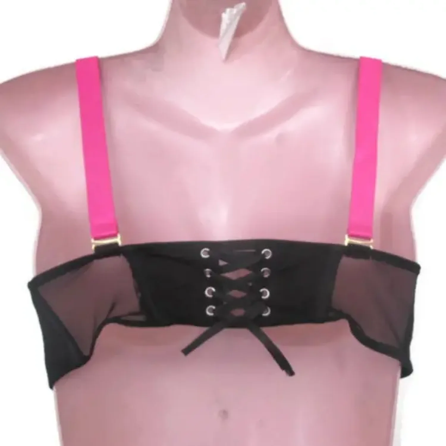 NO HAGGLING pink & blue-size 34b nwot never worn black lace-used with no size tag or padding.sheer see through lingerie set lot 3 pieces neon zipper corset lacing ribbon front opening hook retro sexy thick straps push up demi stripper exotic dancer costume