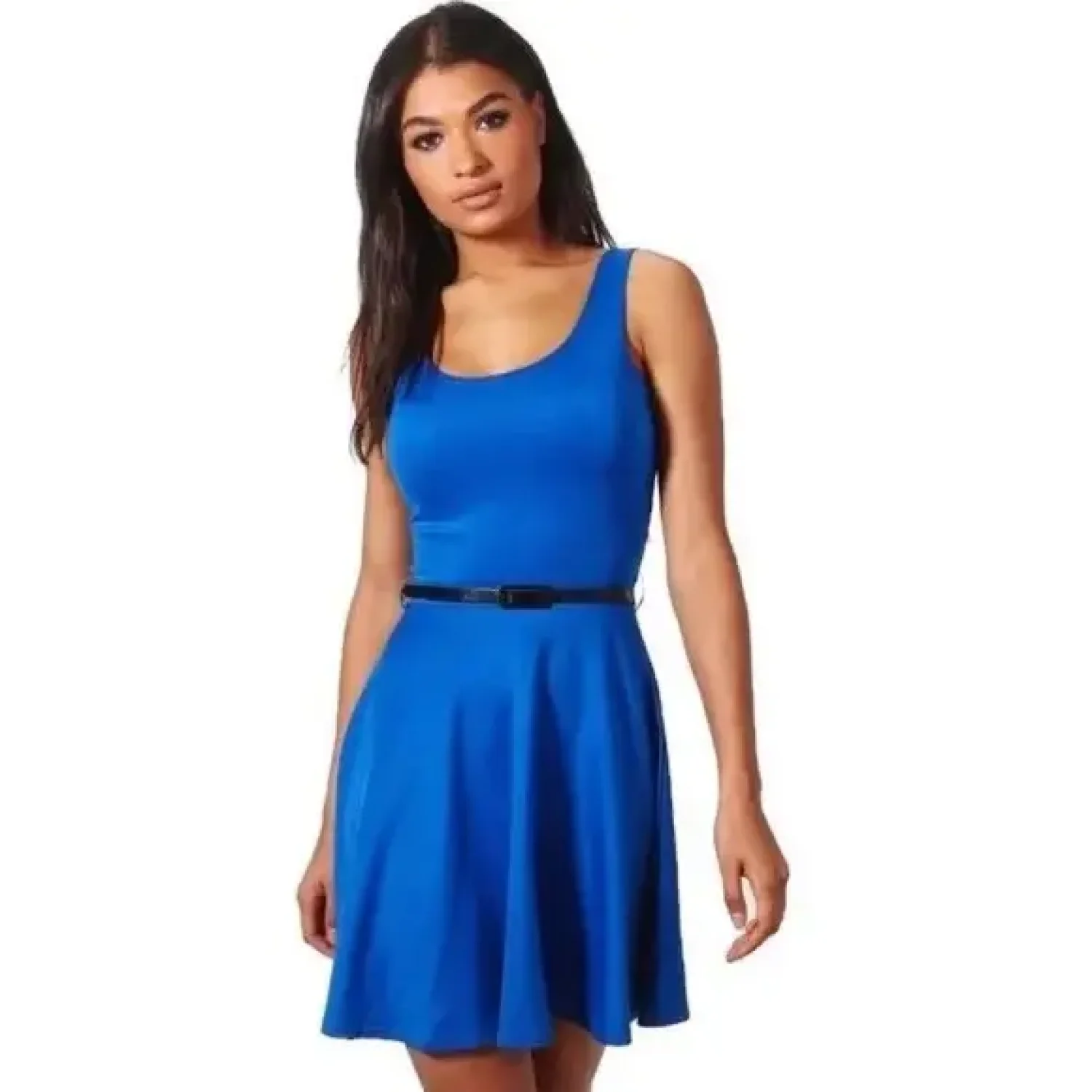 NO HAGGLING------ length-35,bust-32,waist-26,hips-42 ---------yes, the belt is included. 2 small snags on side front. xs maya scoop skater dress cobalt blue mini short sleeveless bodycon stretch new with tags tank black skinny belt 2 4 belted