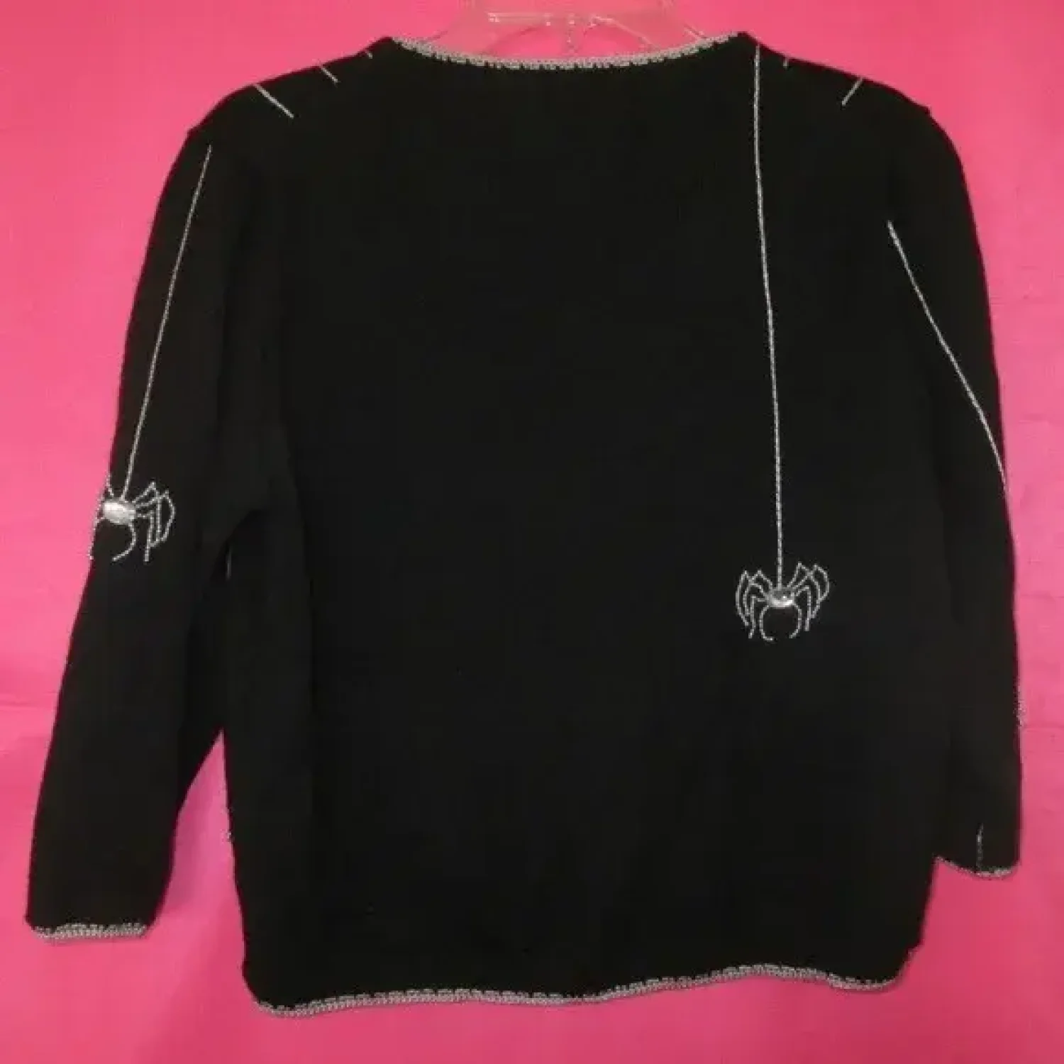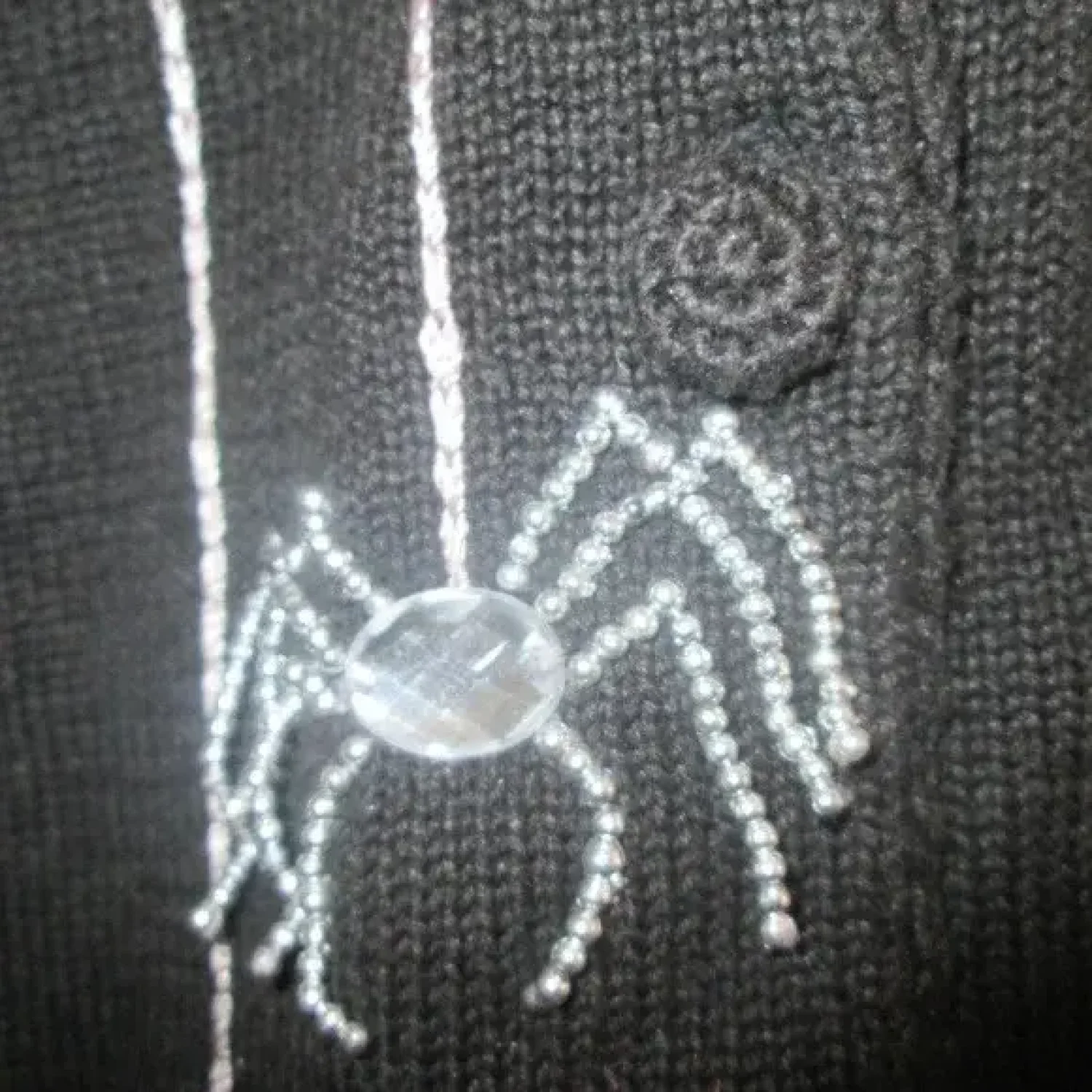 No haggling.------ length-20,bust-42,waist-40----------. tag says medium --------quarter short 3/4 sleeves large silver grey gray rhinestones beaded beading black spiders spiderweb web psychobilly vintage 1990s 90s 1980s 80s crop cropped cardigan jacket creepy day of the dead dia de los muertos 8 10
