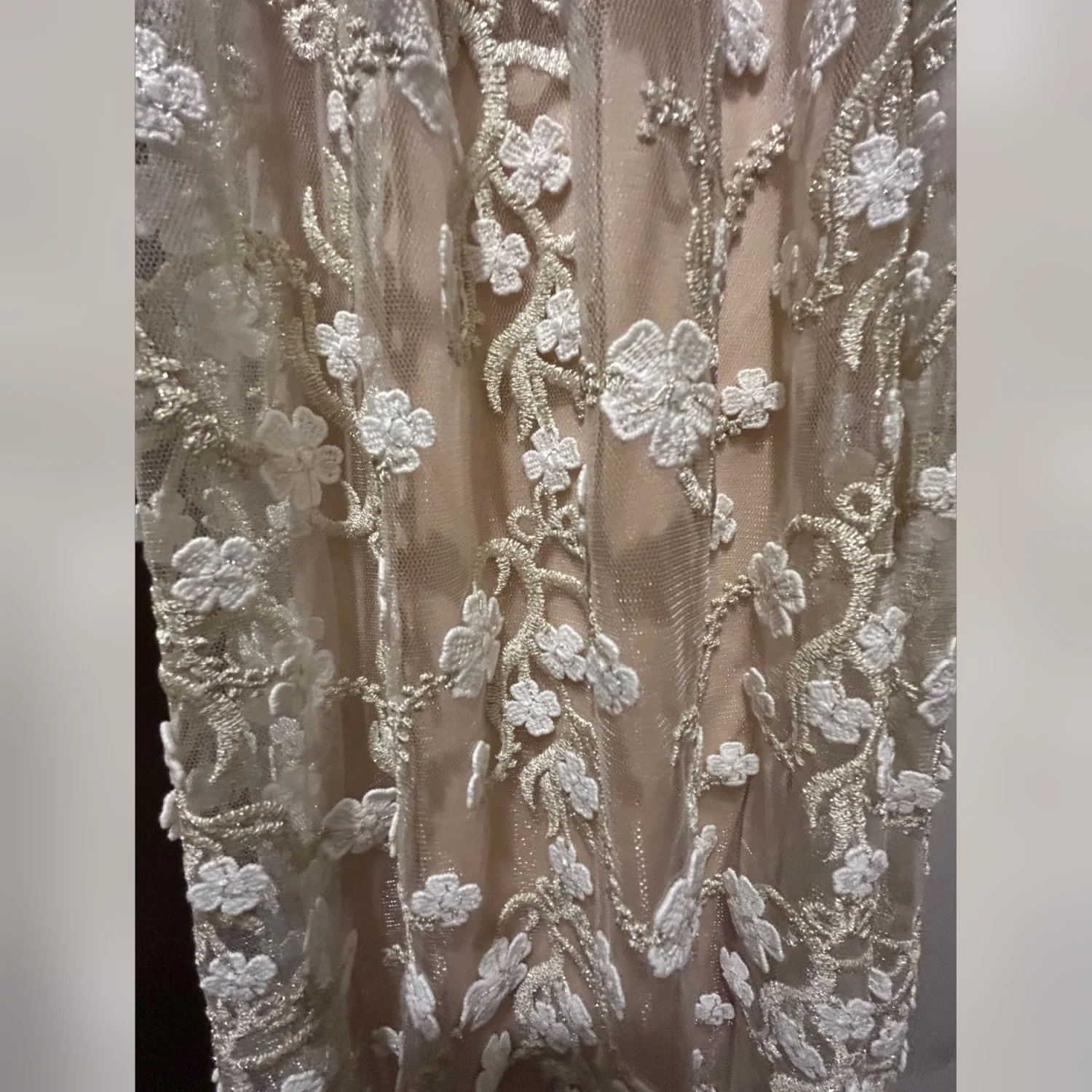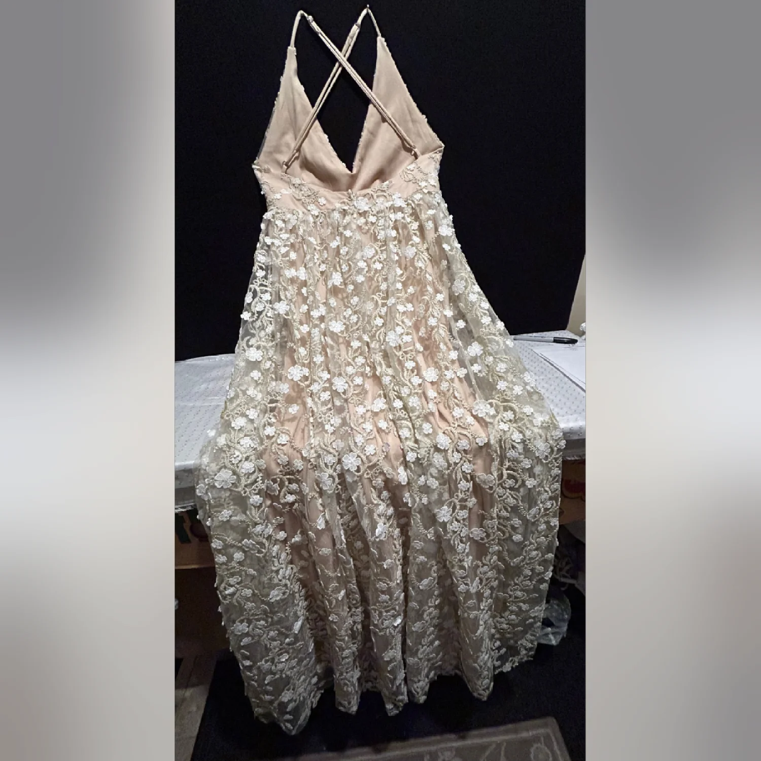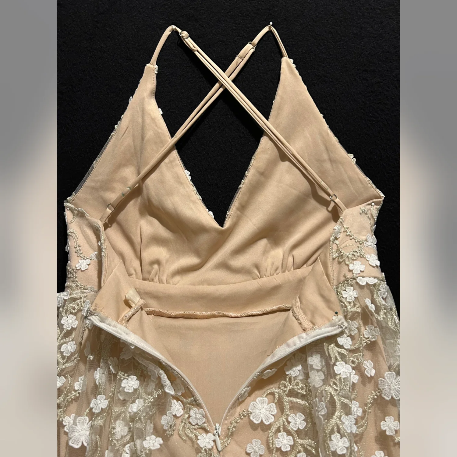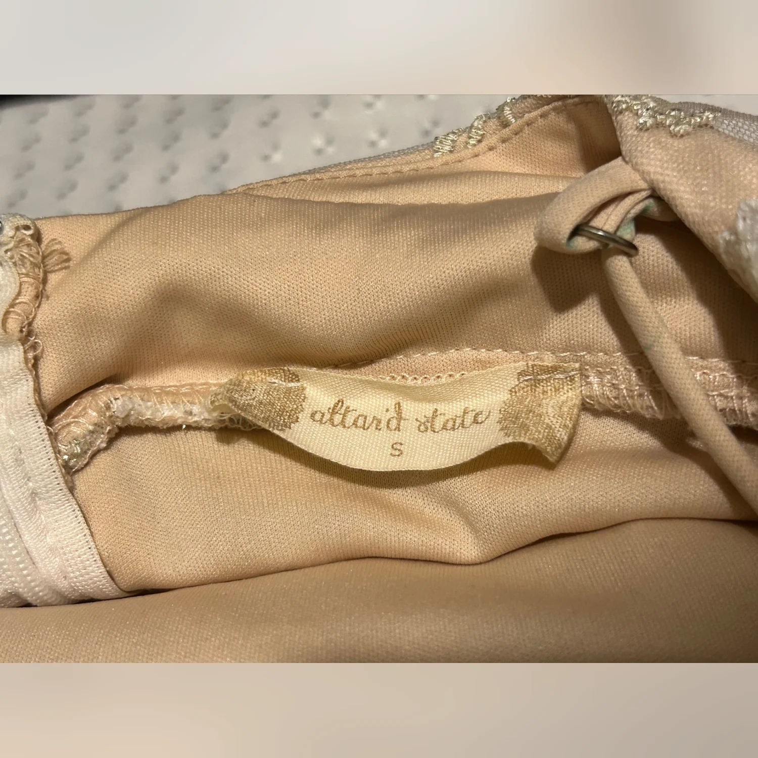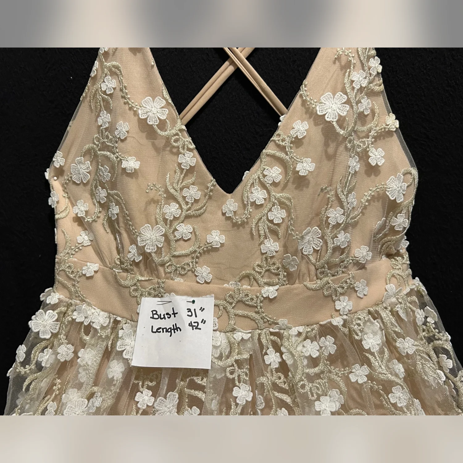 Altar'd State Dress Sz S Tan Cream Formal Floral Lace Overlay V-Neck Long Maxi