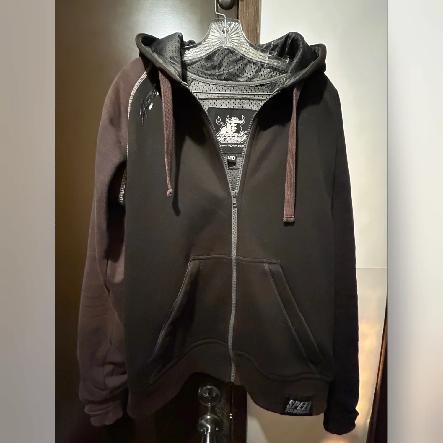 Speed and Strength Men's Armored Motorcycle Hoodie, Black and Brown