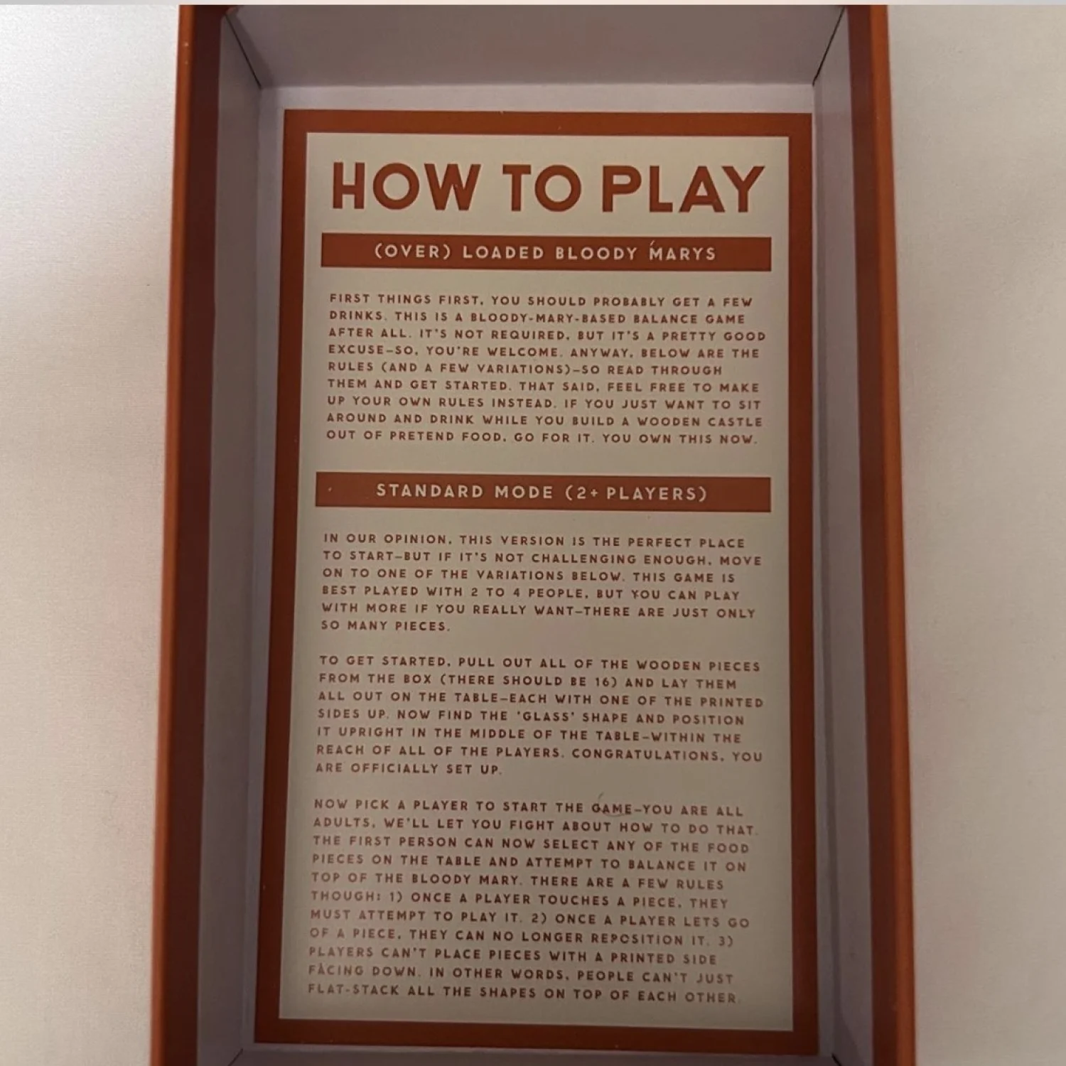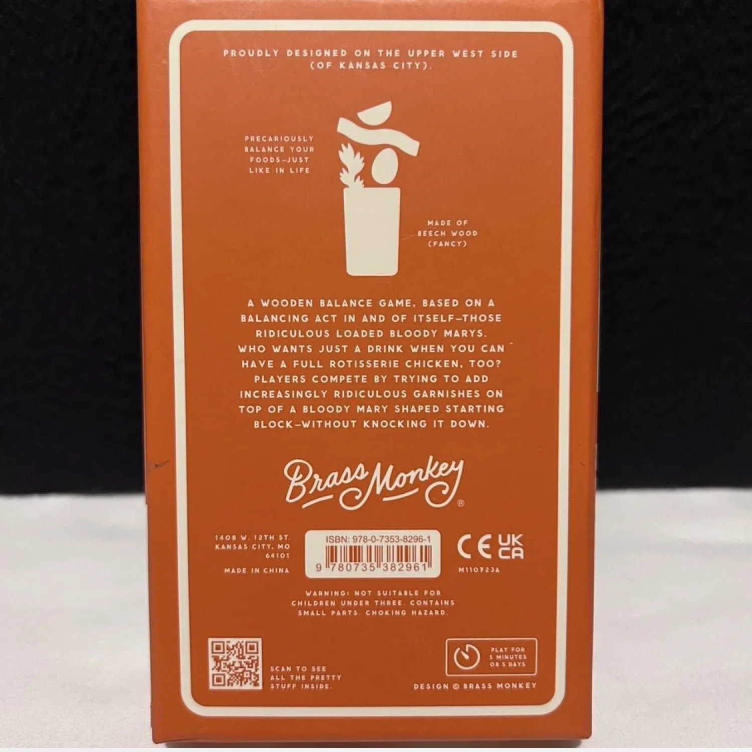 A unique wooden balance game themed around a Bloody Mary cocktail. The game involves stacking various pieces to create a balanced structure. It is designed for fun and entertainment.