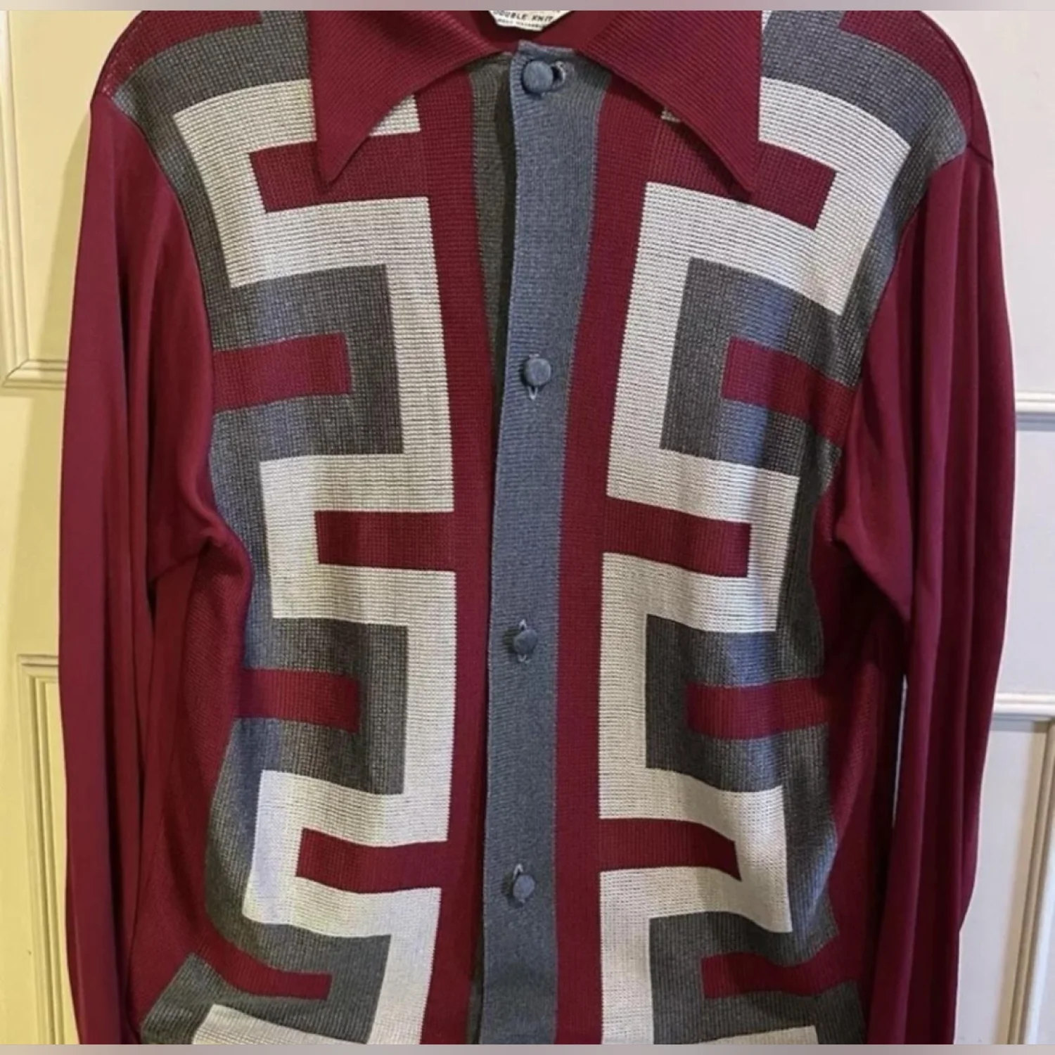 Vintage 1970s Diplomat Double Knit Geometric Pattern Shirt