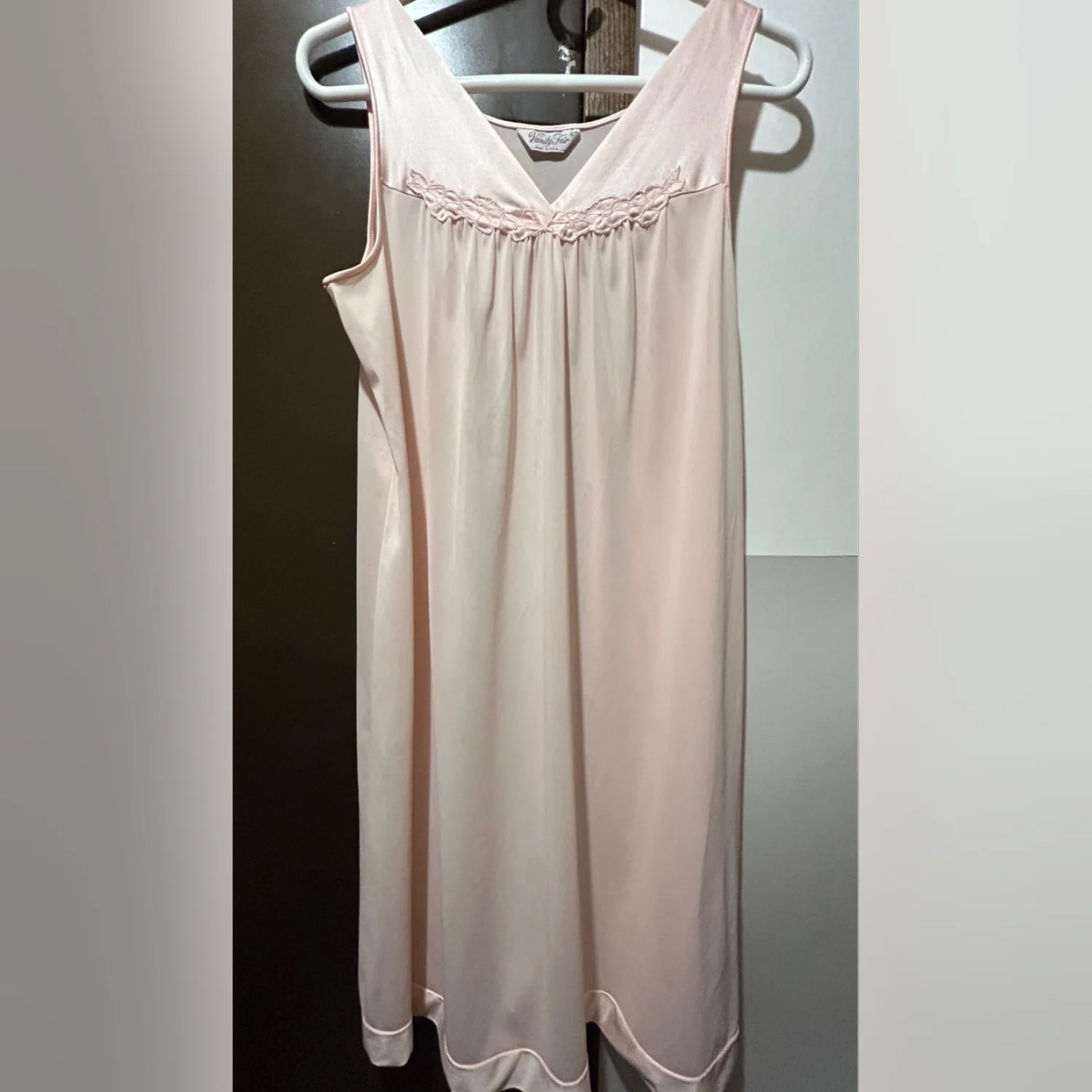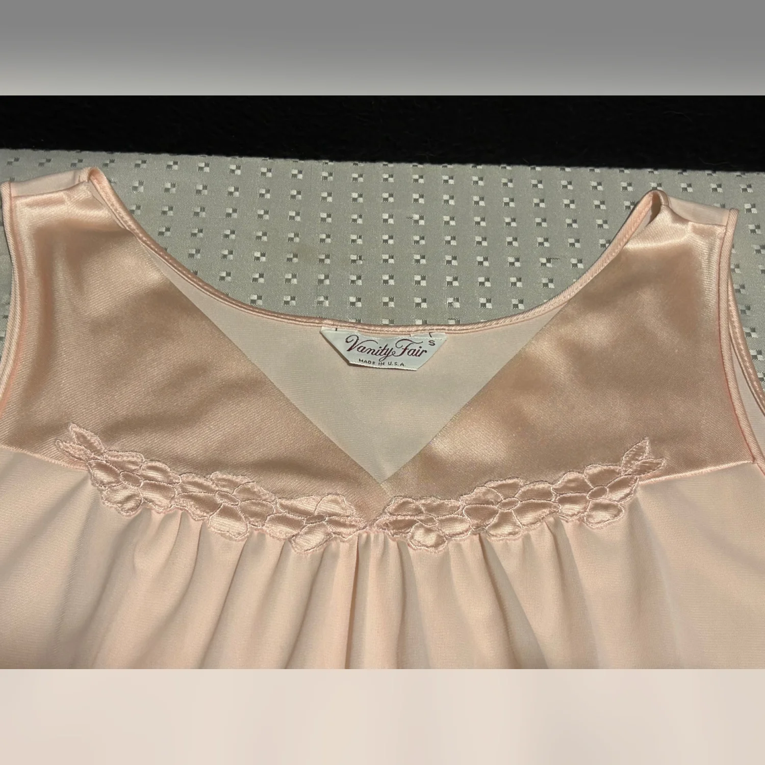 Vintage 70s Pink Nylon Nightgown: Vanity Fair Sleeveless Midi - Size Small