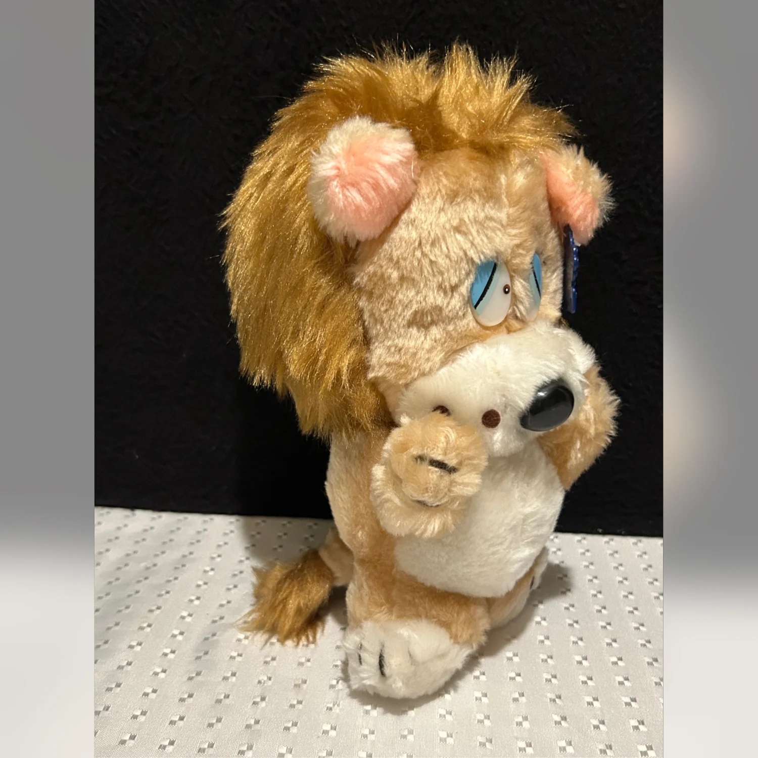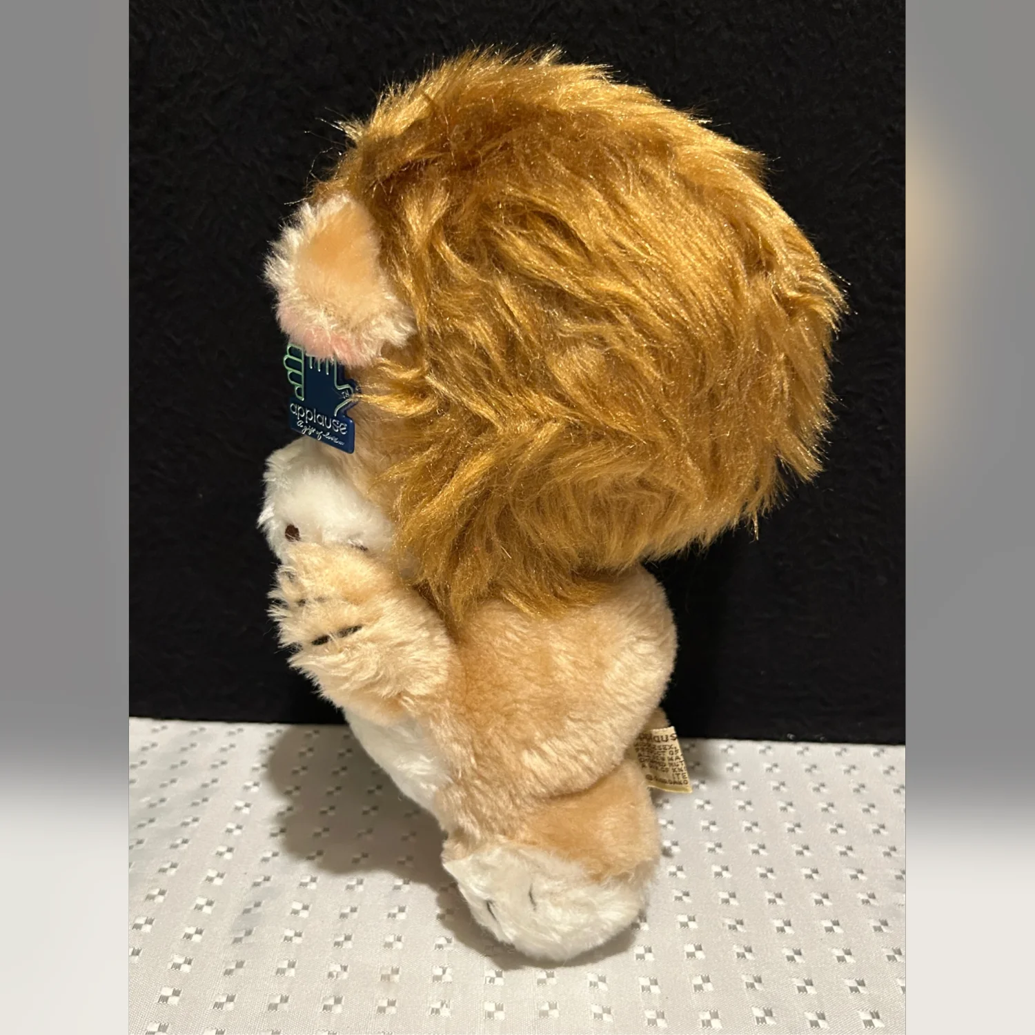The Vintage Applause Plush Lion with Sad Eyes is a rare collectible from the 1980s. Standing at 9 inches tall, this small stuffed animal features the character family of "Other" and is a unique addition to any toy or plush animal collection. With its nostalgic charm and brand history, this plush lion appeals to collectors and those who appreciate vintage toys from the 1980s era.