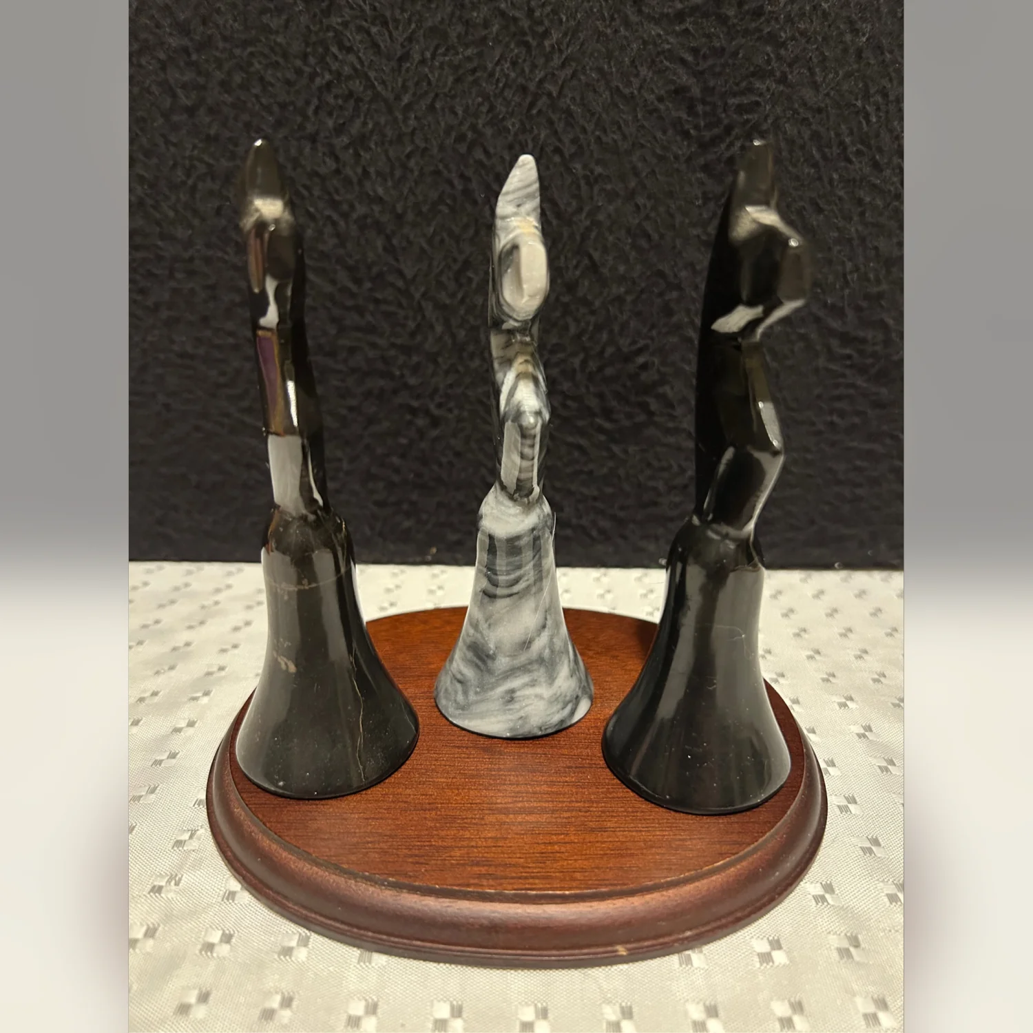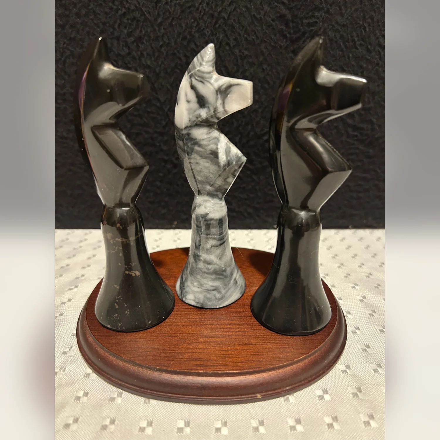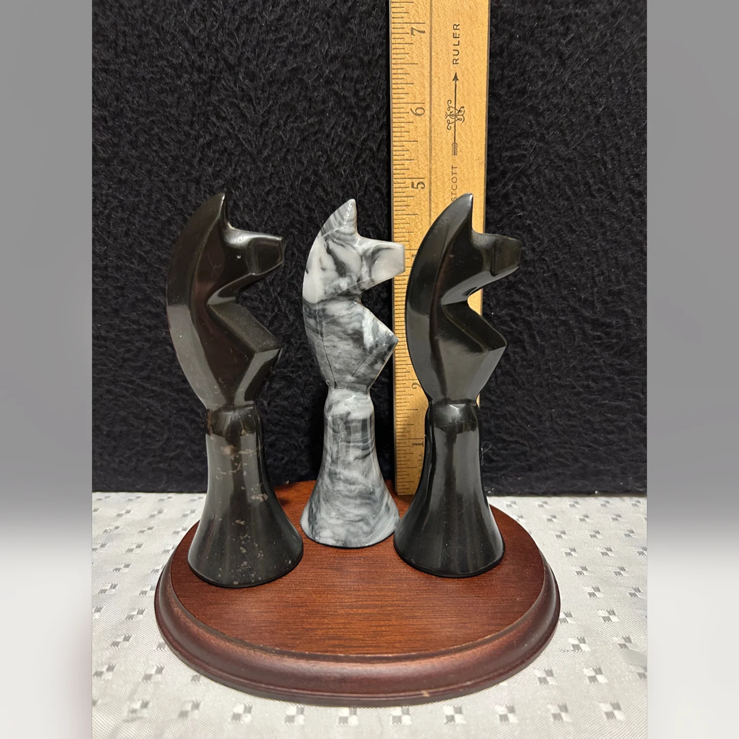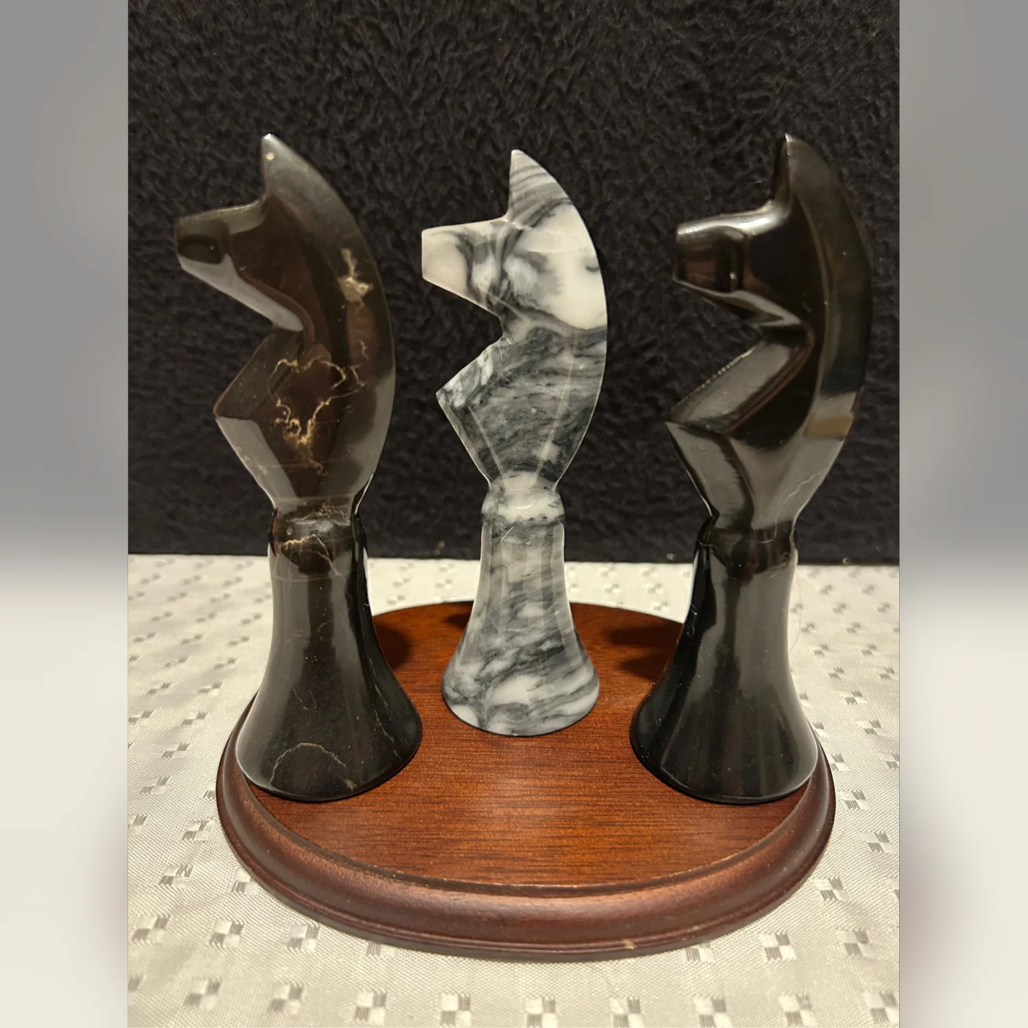 Vintage Handcarved Onyx Gray White Marble Stone Knight Chess Pieces 5”