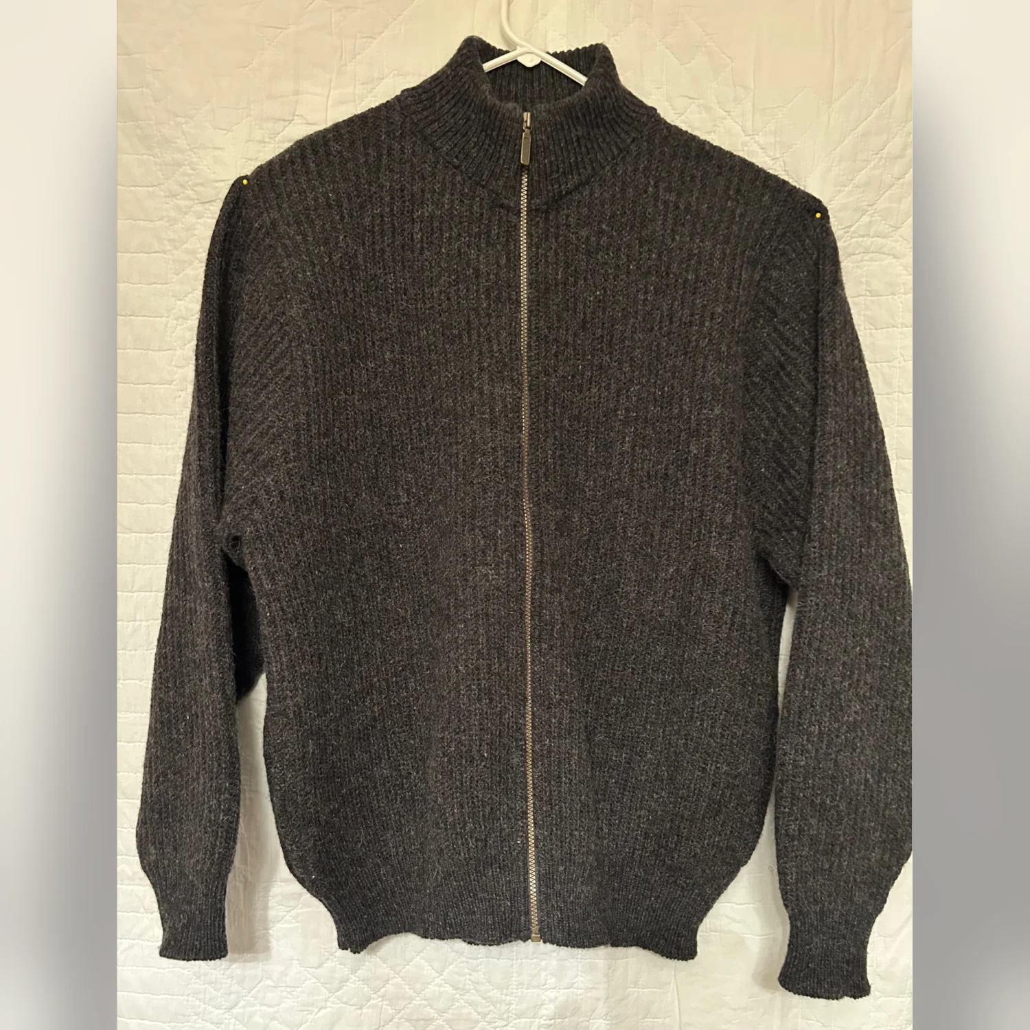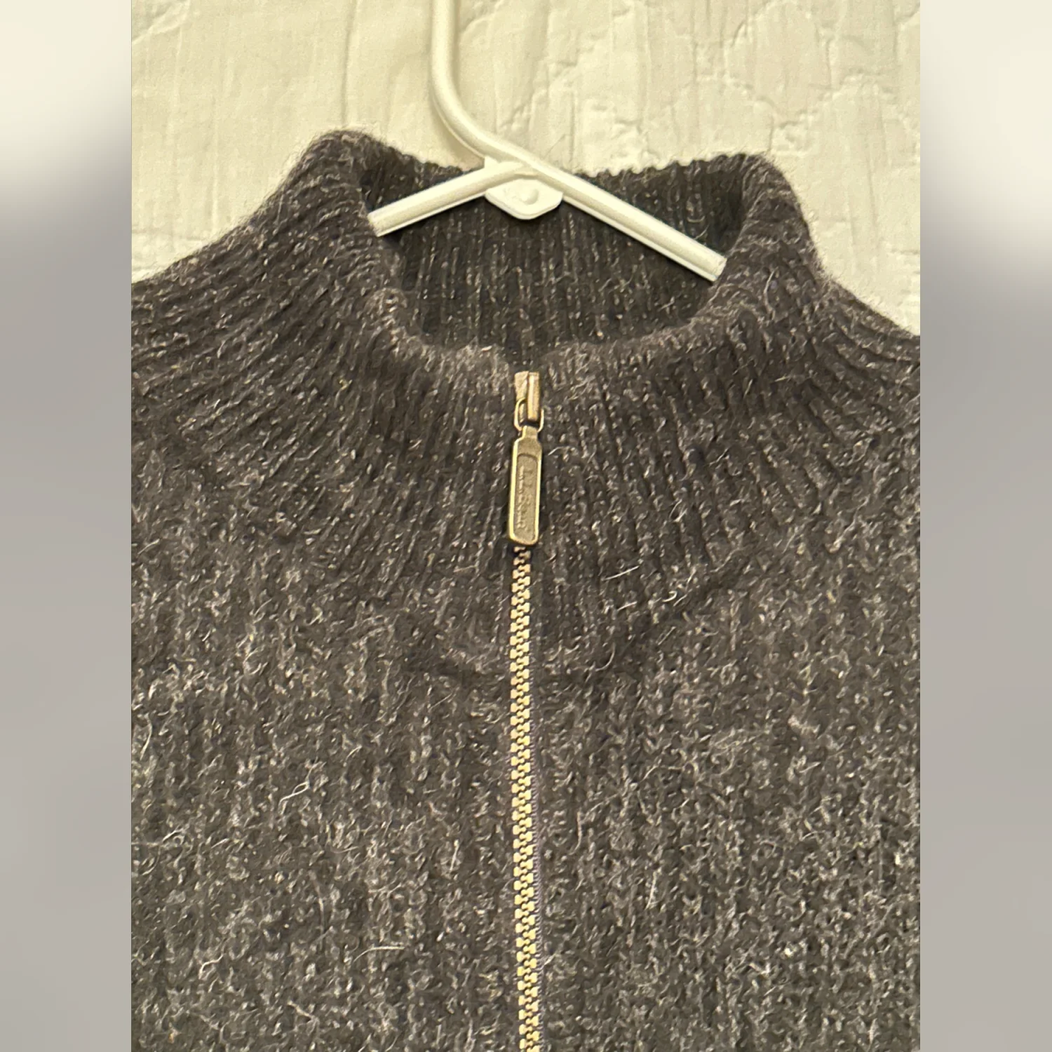 Vintage LL Bean Made in USA Wool Alpaca Full Zip Ribbed Sweater Size XL Long