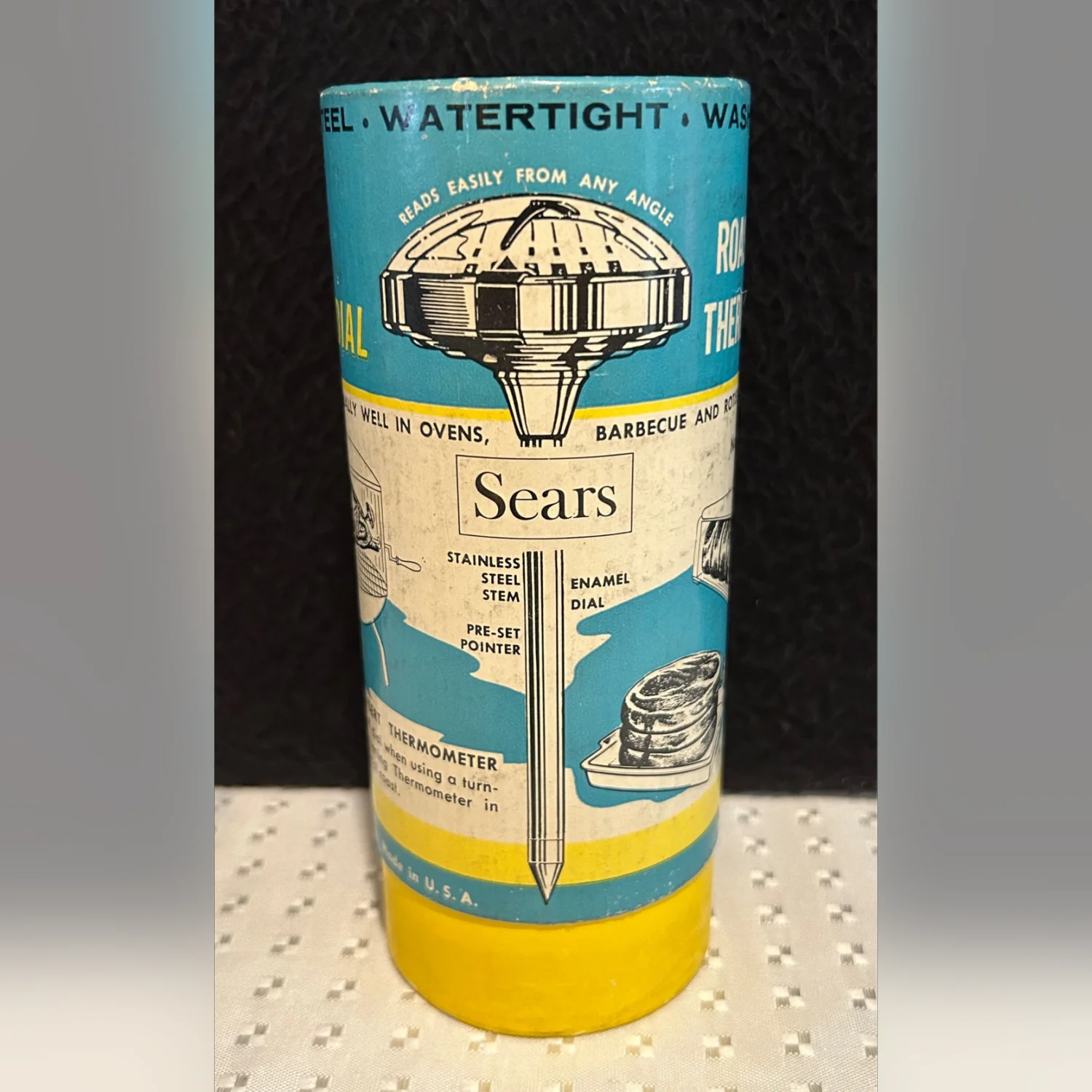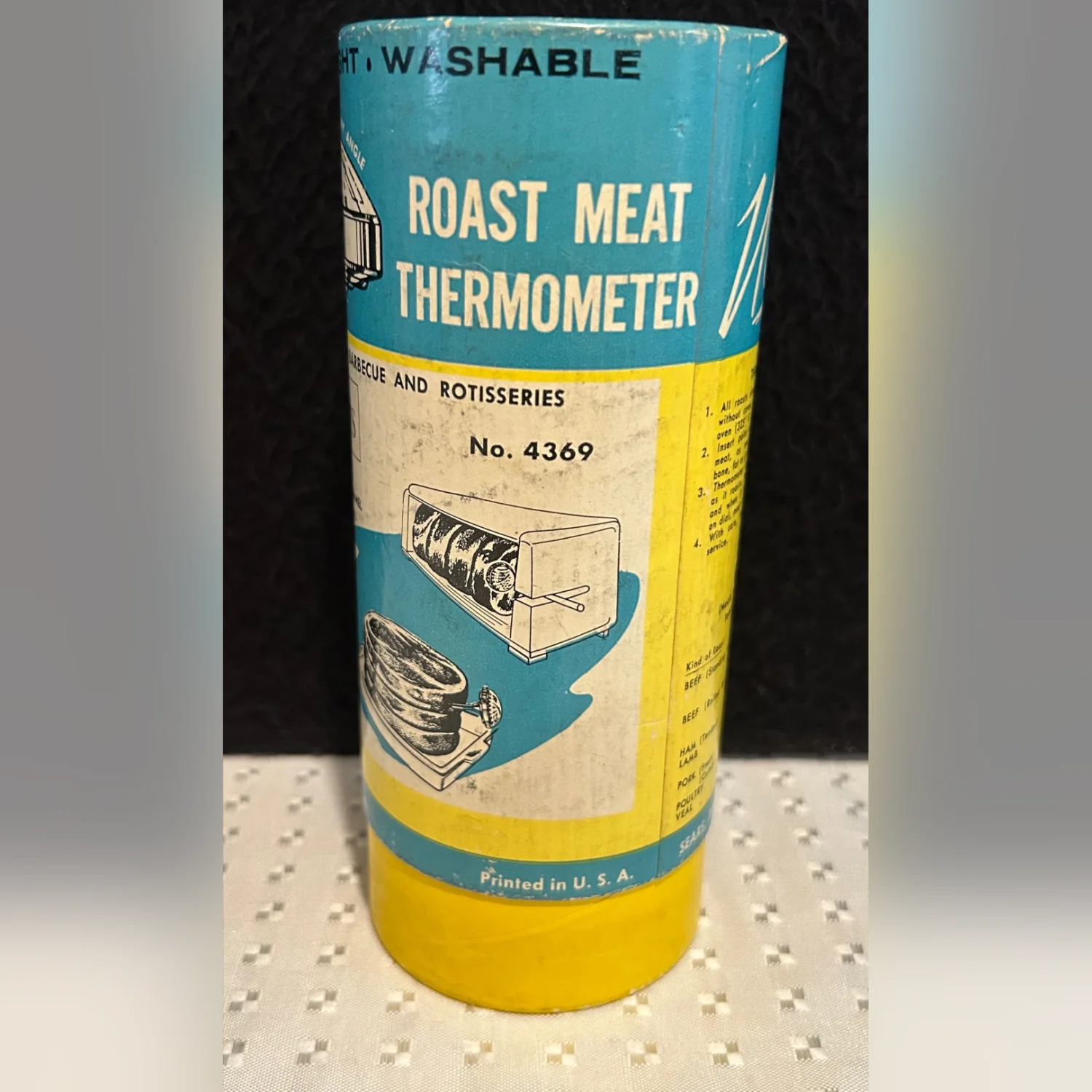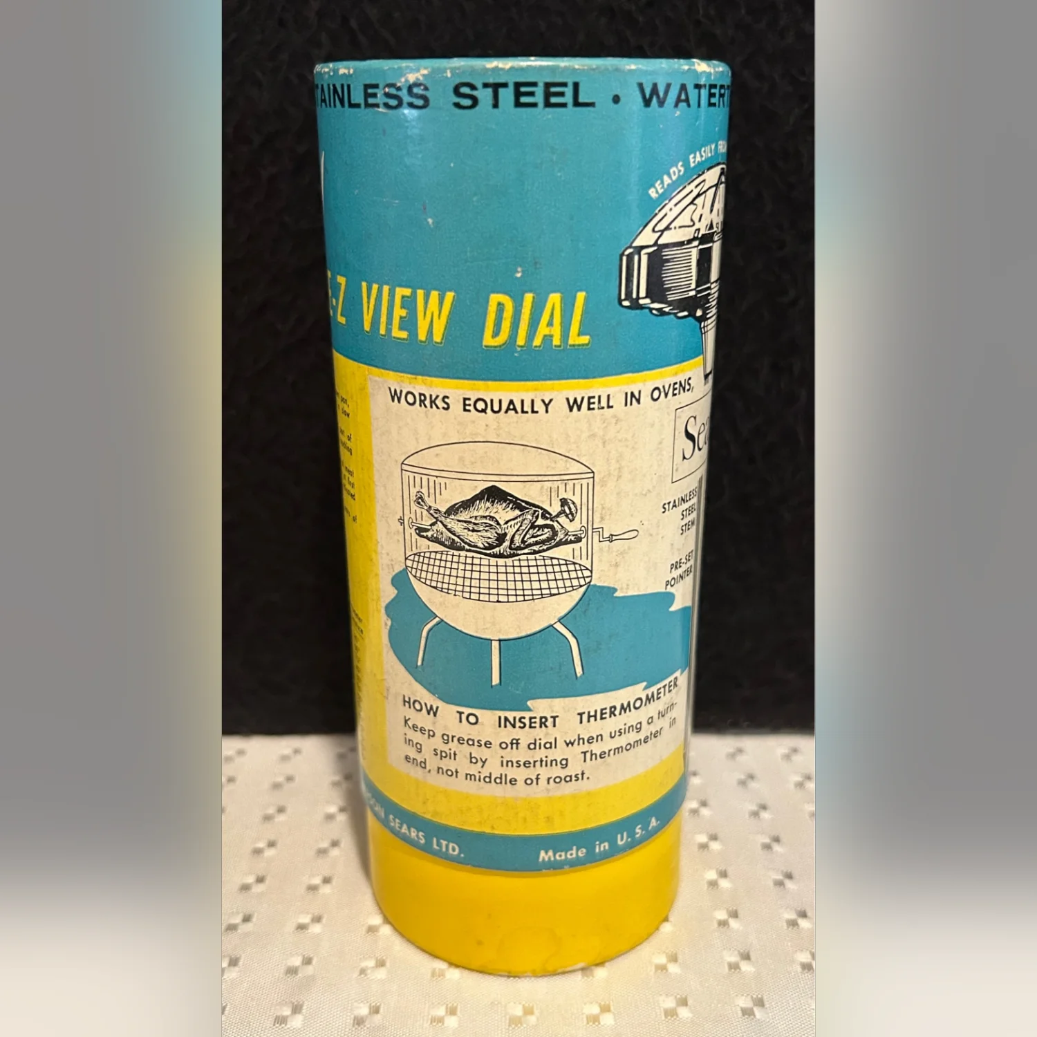 The Vintage Sears & Roebuck Maid of Honor Manual Meat Thermometer in Box No 4369 is a collectible kitchen tool with a classic design. Made of stainless steel, this thermometer is durable and precise for measuring the temperature of meats while cooking. The multicolor design adds a touch of retro charm to any kitchen decor. This authentic piece from the United States is a great addition for cooking enthusiasts looking for a reliable and stylish meat thermometer.