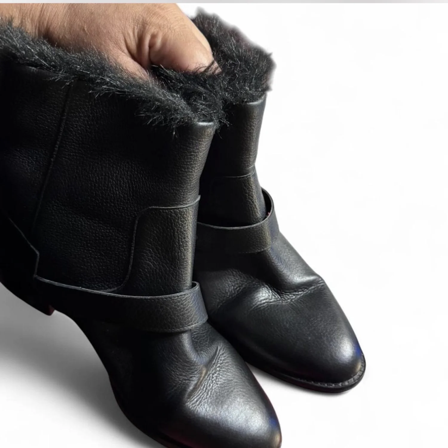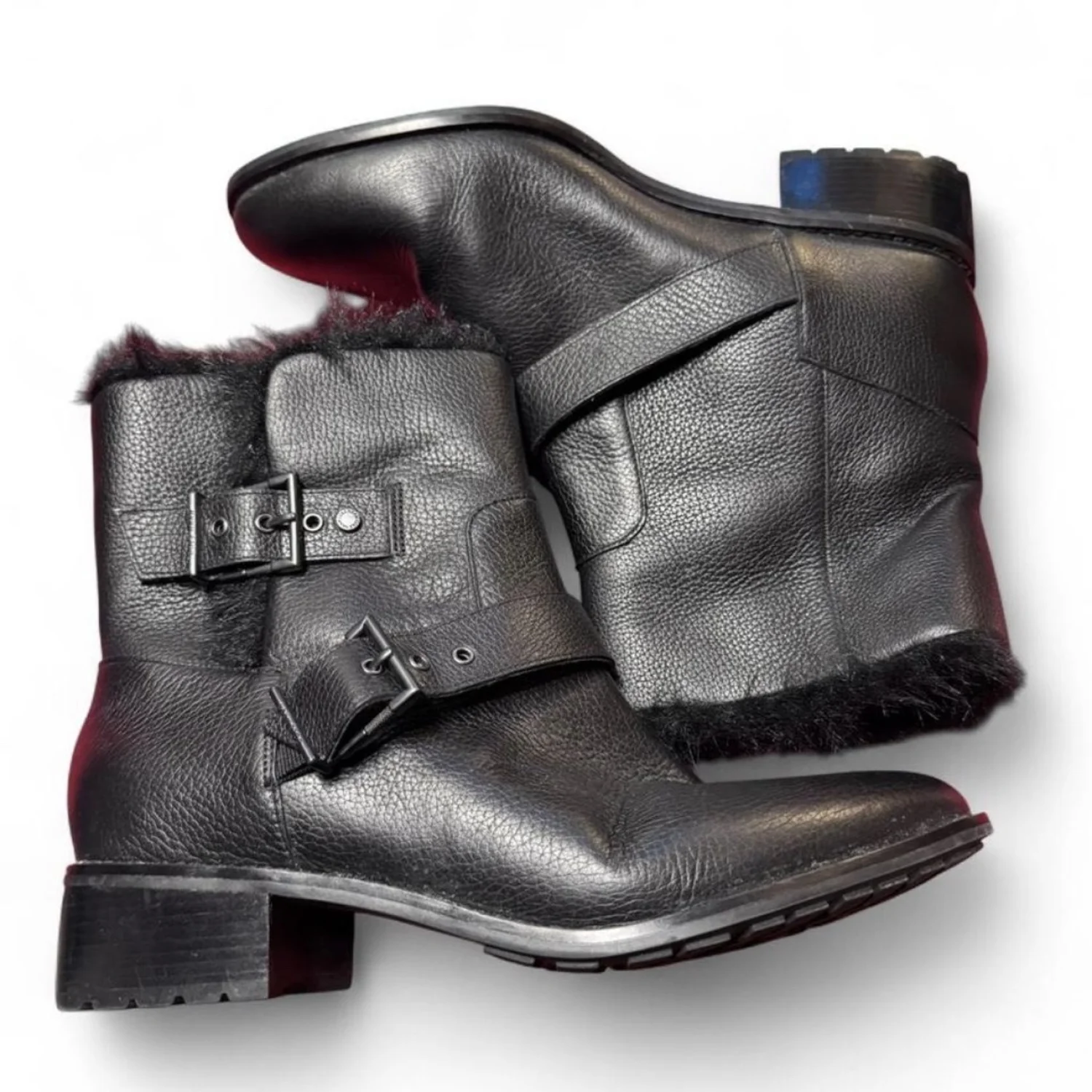 COLE HAAN GRANDSERIES Black waterproof leather ankle boots with faux fur trim and buckle details. Size 10.5B. Look just about new with minimal signs of wear the worst being a scuff on the back of one of the heels. #winterboots #snowboots #skivacation