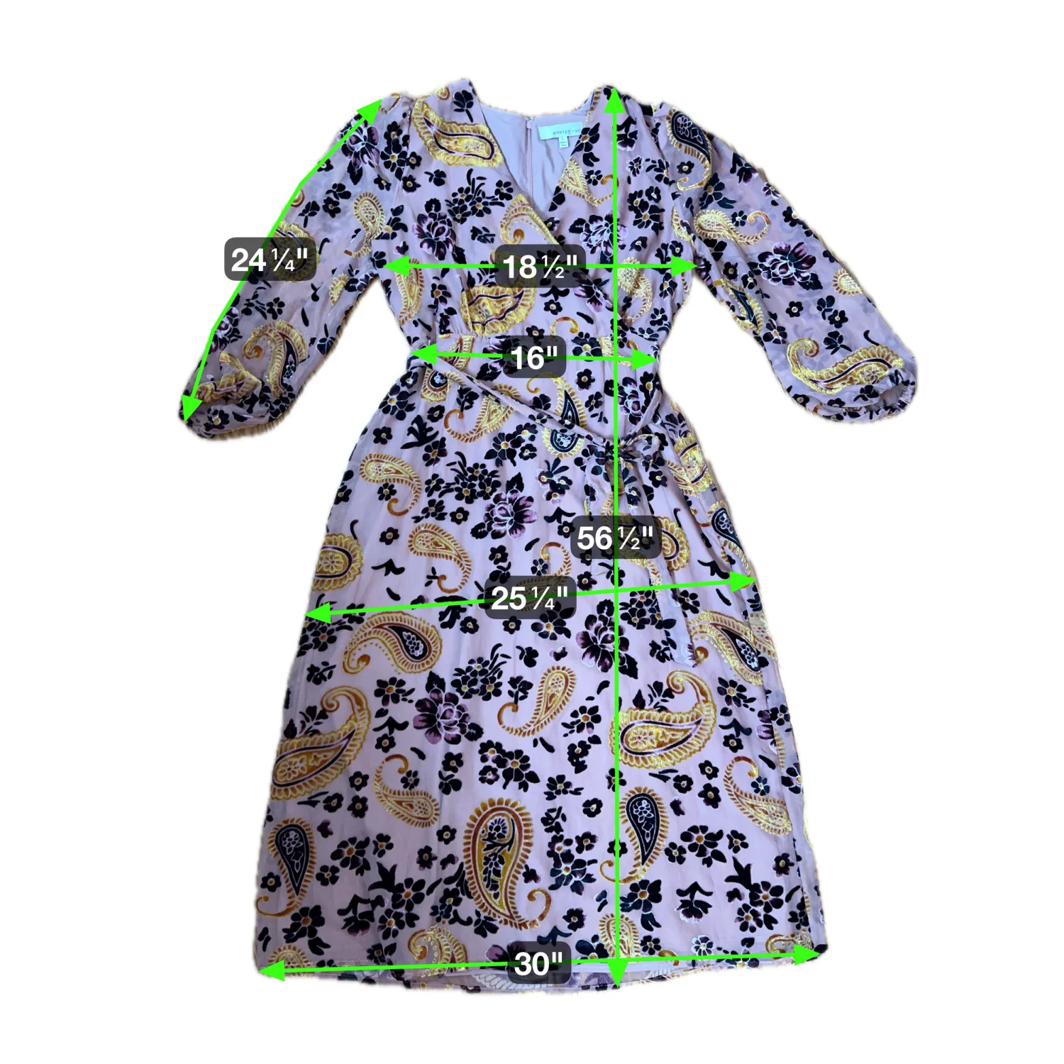Adelyn Rae Velvet Burnout Paisley Wrap Midi Dress | Romantic Boho | L