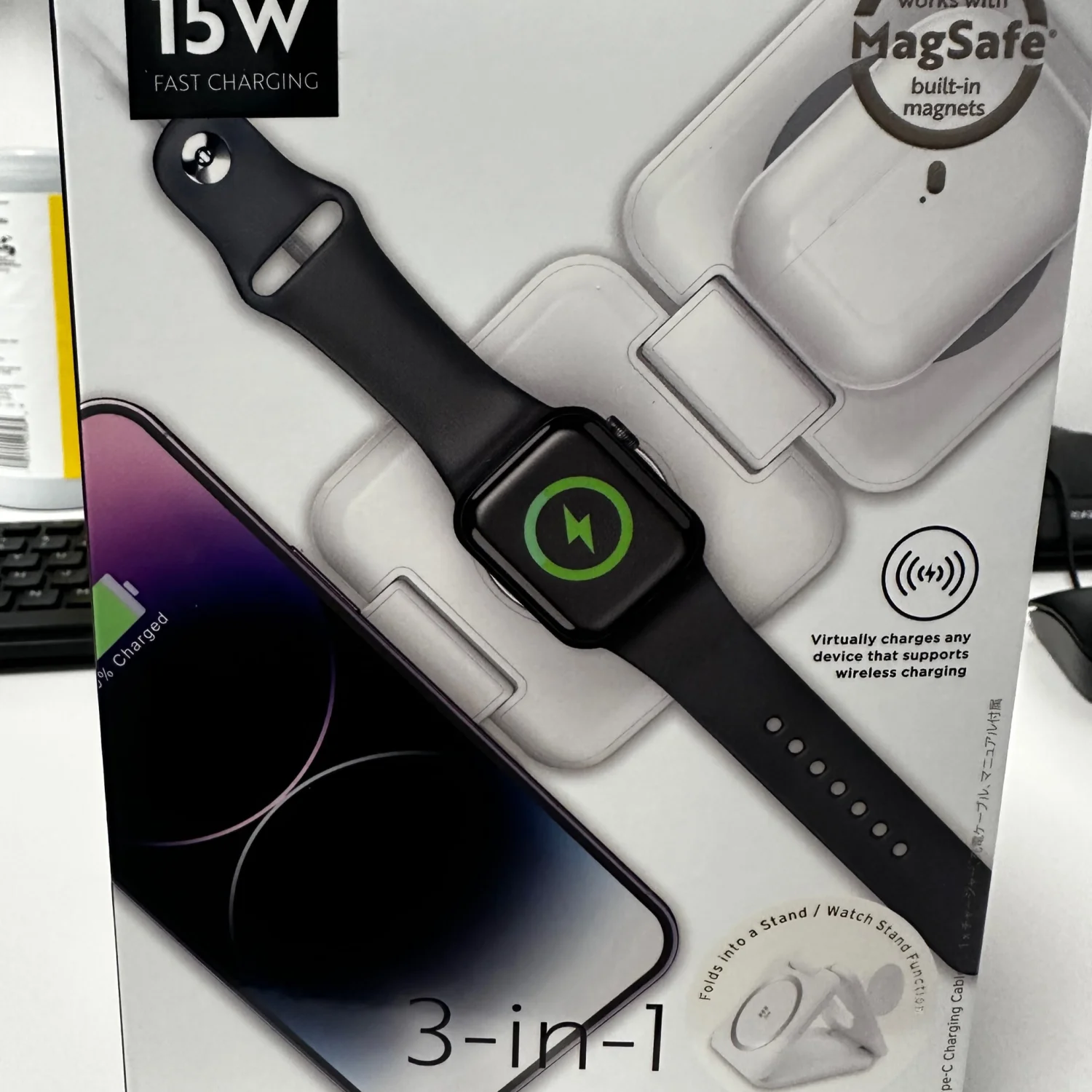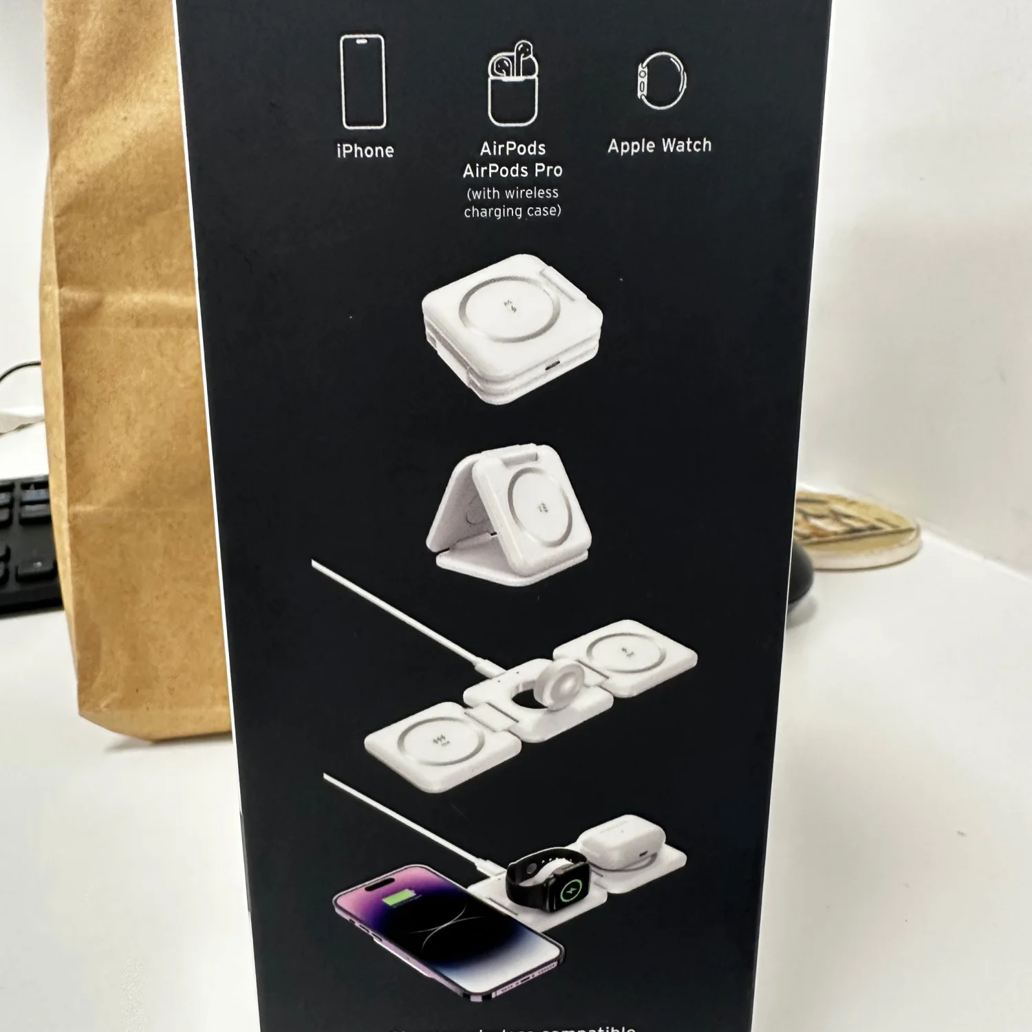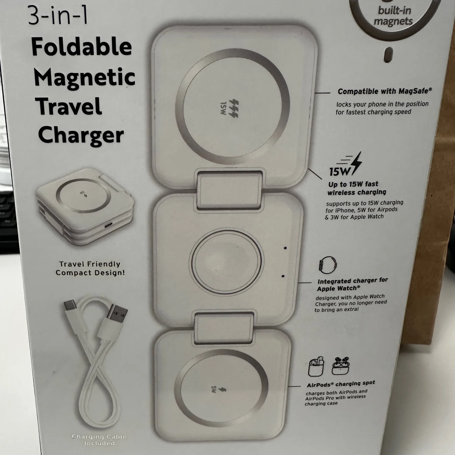 New never opened, still wrapped in the box, foldable magnetic travel charger 3-in 1, never opened or used
