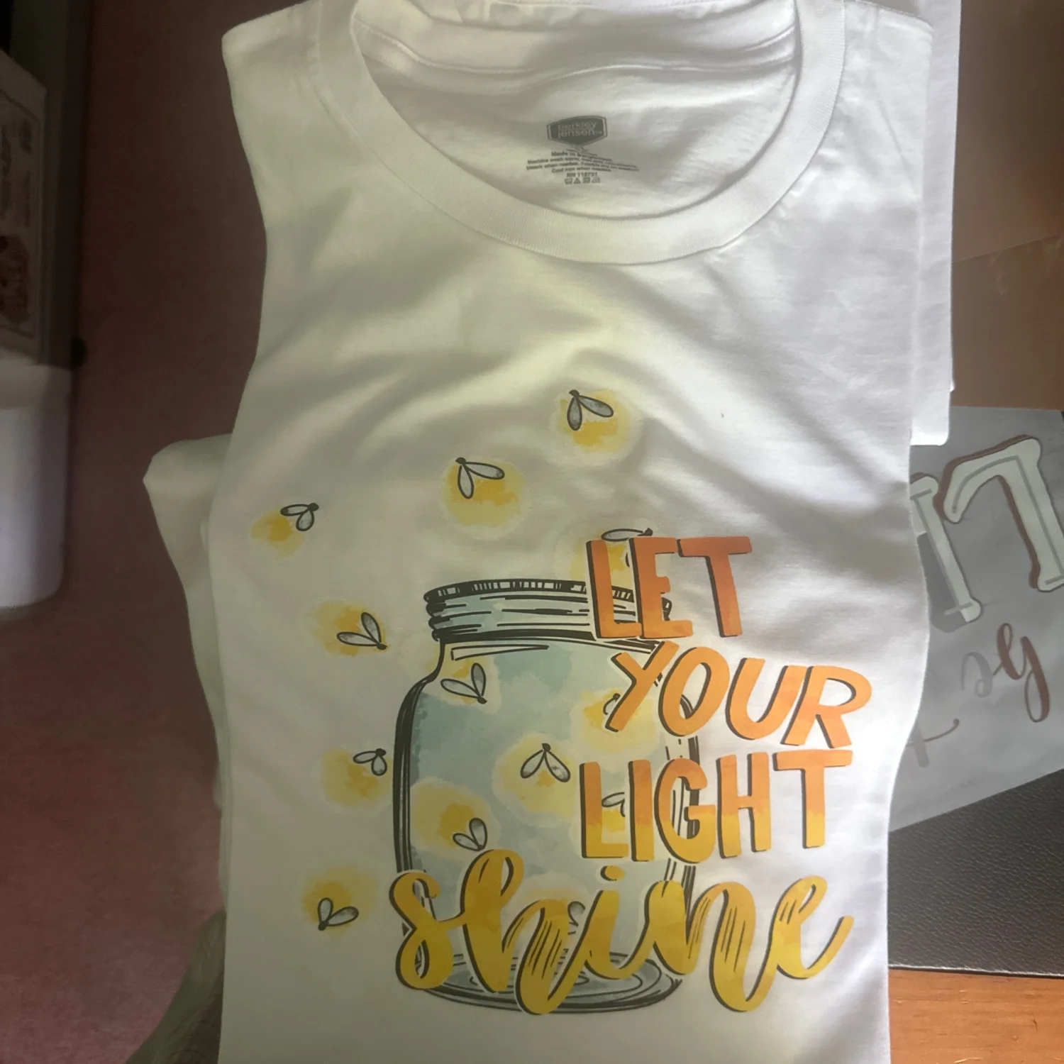 White t-Shirt, with Let your light shine, new newer used, unisex,size XL