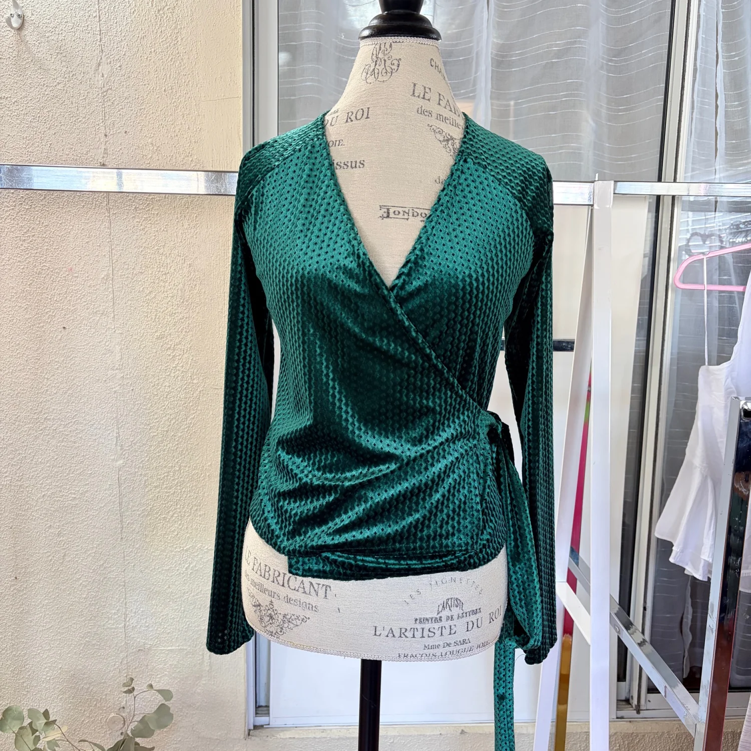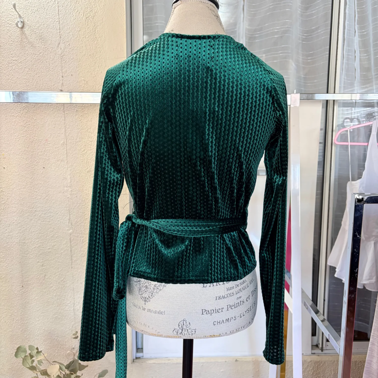 Kada Women’s Velvet Pine Green Classic Wrap Long Sleeve Blouse Size Small New