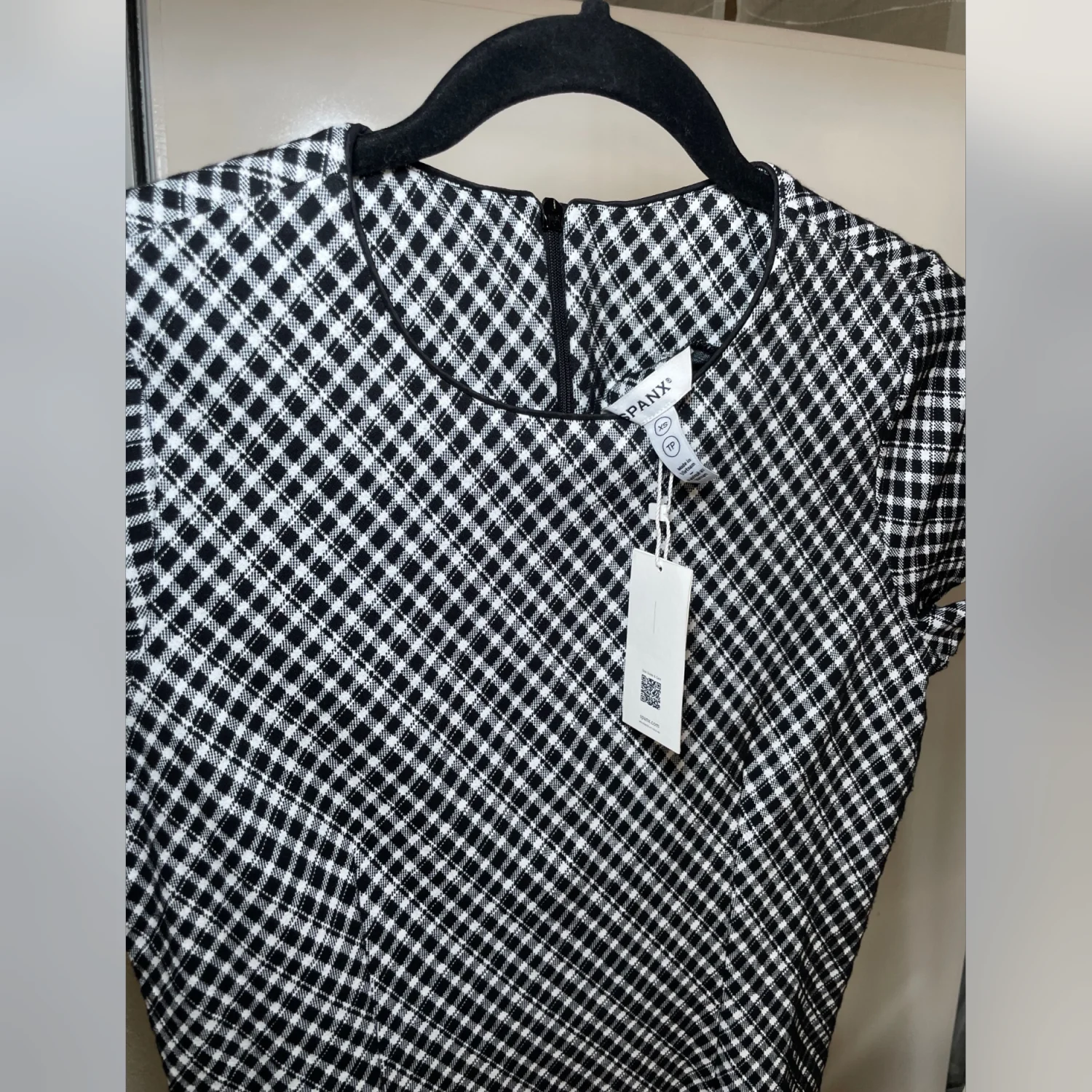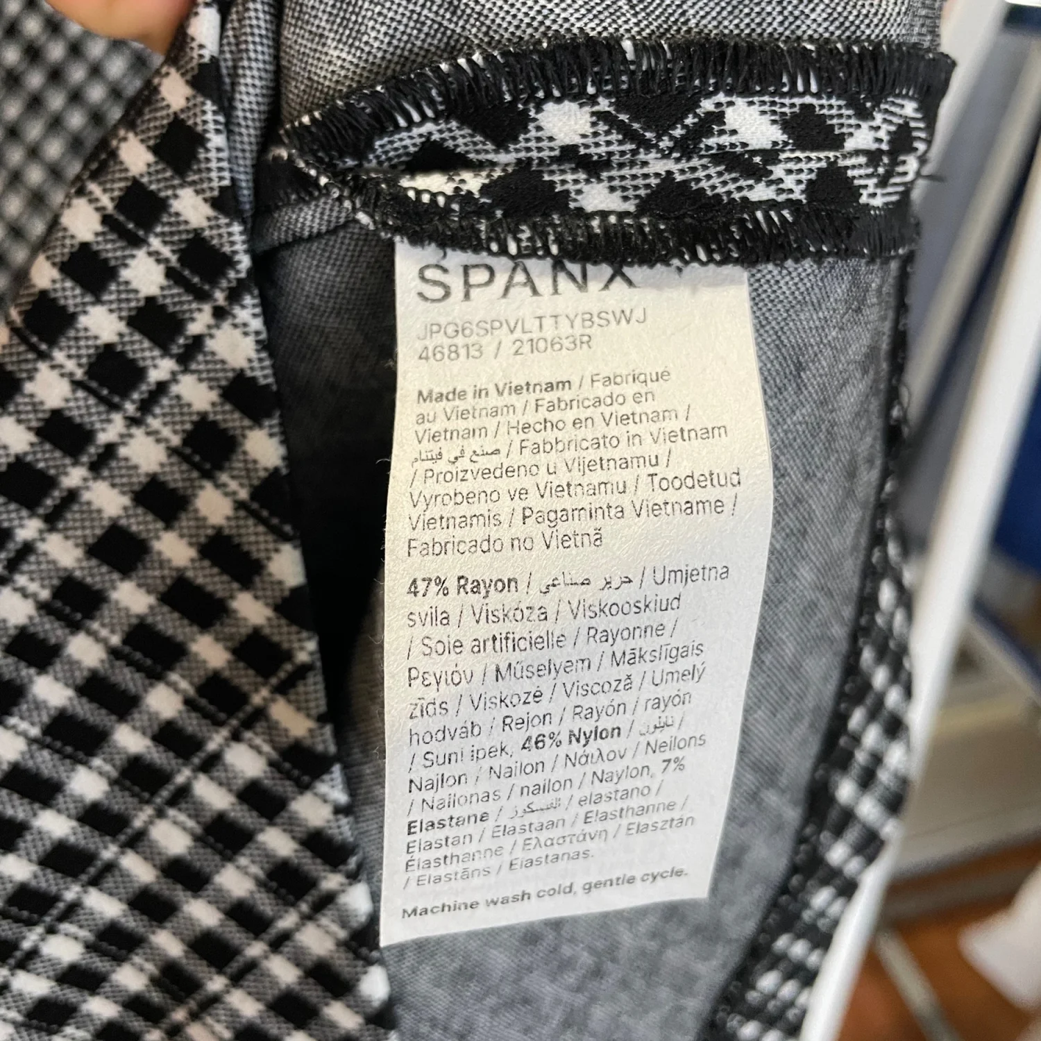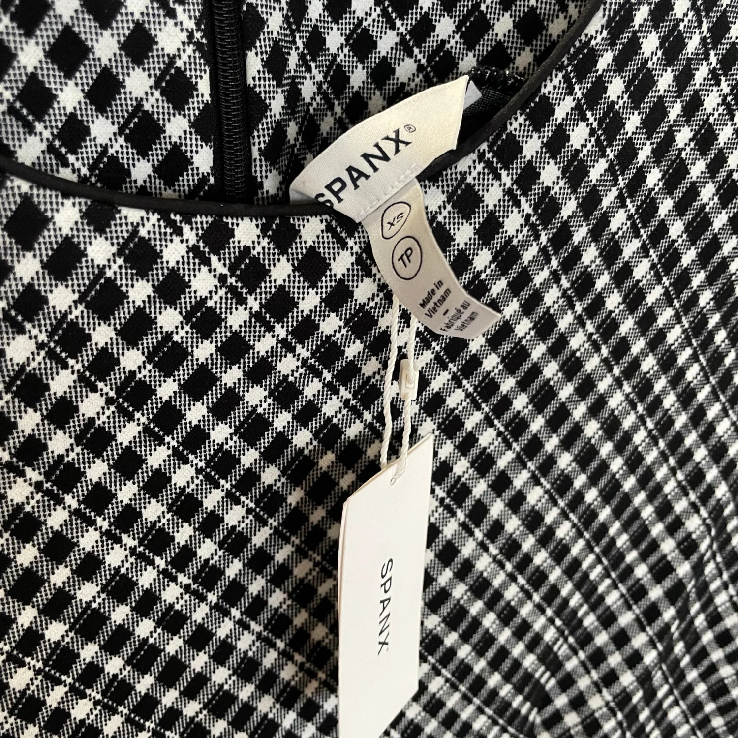 Spanx Ponte Jacquard Black Plaid Checkered Mini Dress Size Xs New Stretch Material!!! Matching Jacket In stock See Other Listings !! The SPANX Ponte Stretch Mini Dress in Jacquard Plaid is stylish and comfortable. Made from rayon material with a jacquard fabric type, this mini dress features a flattering short sleeve design and a short dress length. The black plaid pattern adds a trendy touch to the overall look, while the stretch feature ensures a comfortable fit. machine washable and perfect for everyday wear Pit to Pit 16 1/2” Length 31” Smoke free home !! Business chic, plaid , work wear