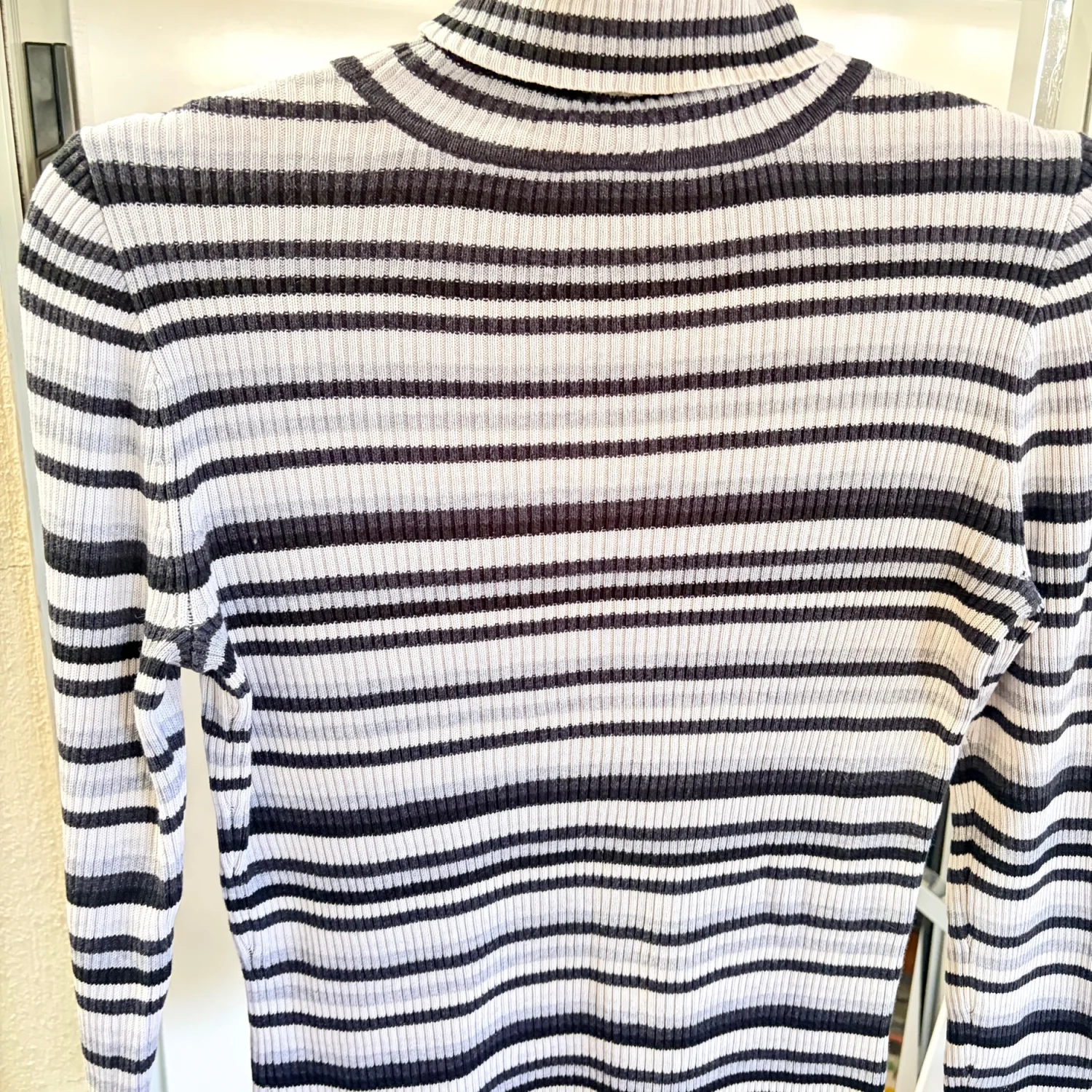 Vintage Gap 2002 Holiday Women’s Top Long Sleeve Turtleneck Size Medium Excellent Pre- owned condition Gray , black stripe tones Smoke free home Pit to pit 17” Y2K , vintage , cozy , winter , snow, holidays , Christmas