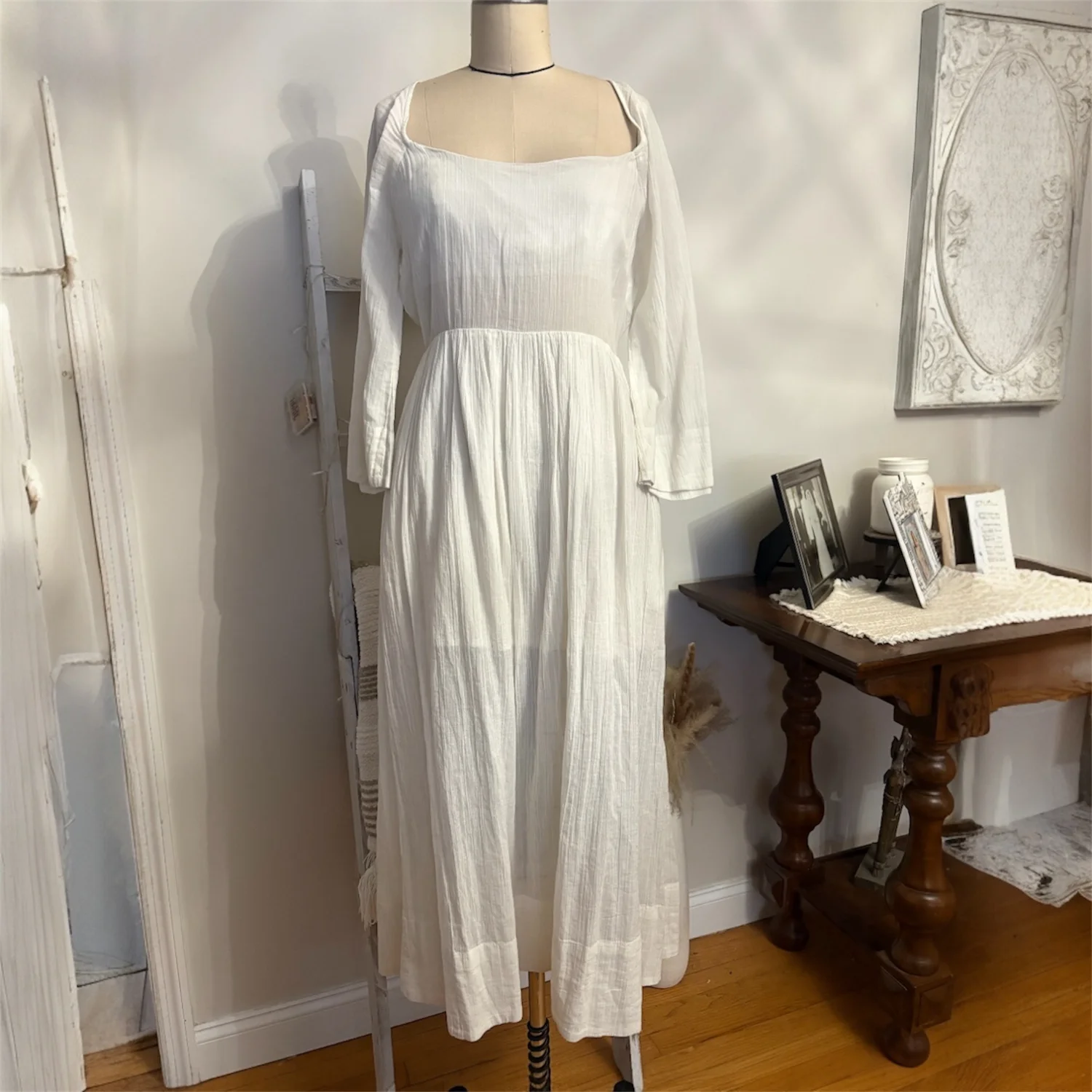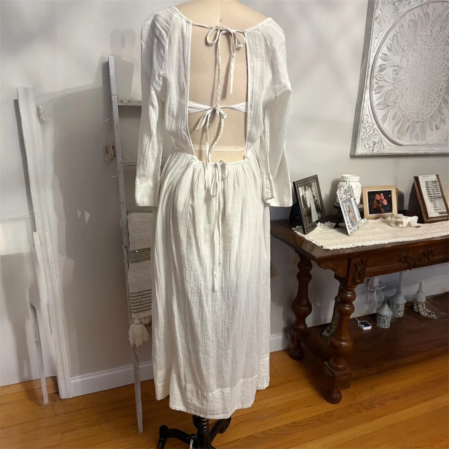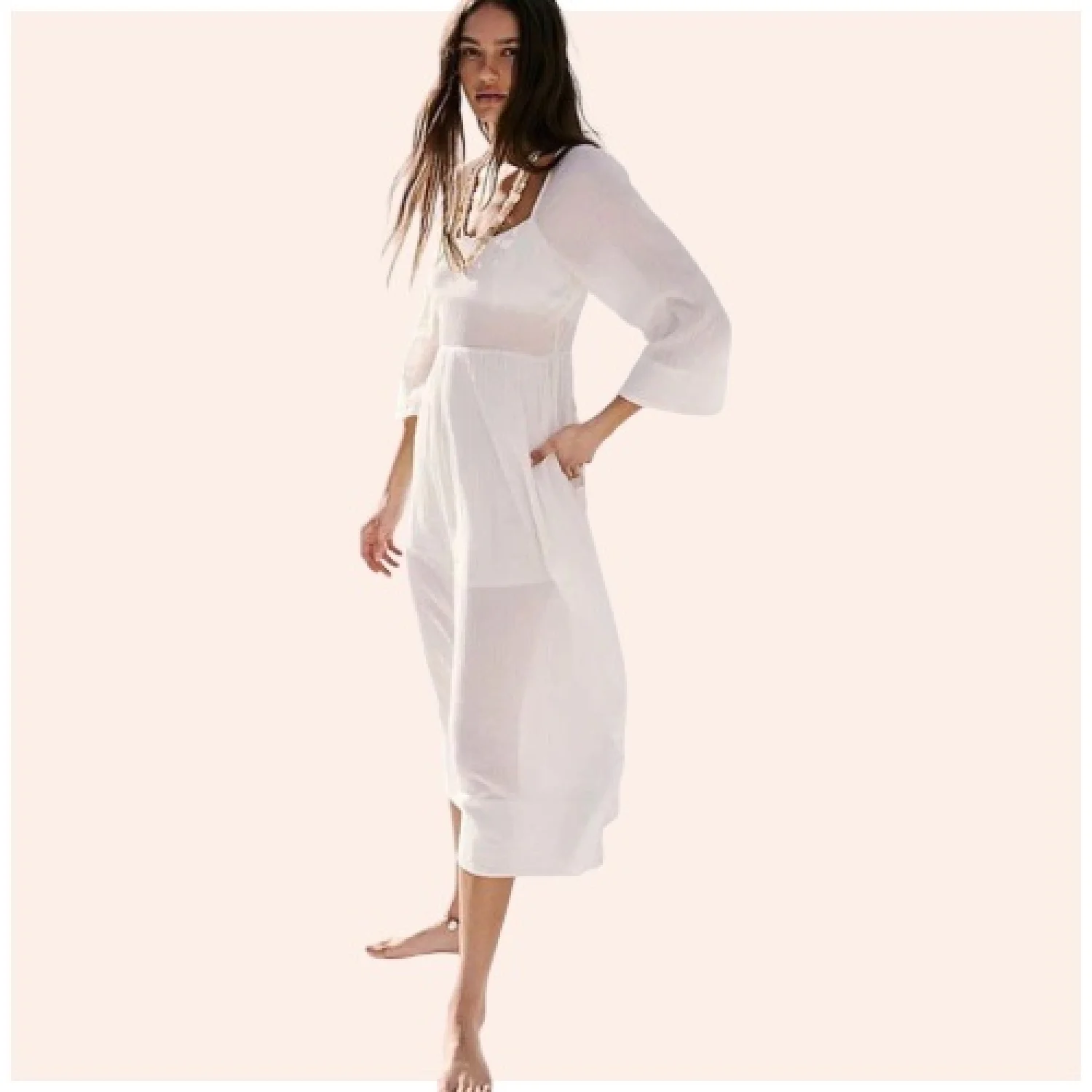 Free People Kelsie Midi Dress Color: Ivory Size: Small Very adjustable, with ties at back and waist Sweet and romantic, this stunning midi from the free-est collection is a true day-to-night staple. Fit: Billowy fit throughout with empire waistline Features: Square neckline, draped sleeves, partial lining at the bust and skirt, textured woven fabrication, open back with tie closure Why We ❤ It: Elevated with strappy heels or off-duty with sporty sneakers, this style has endless ways to wear. Measurements for size Small Sleeve Length: 22” Bust: 30” Length: 49.75” 100% cotton Hand Wash Cold