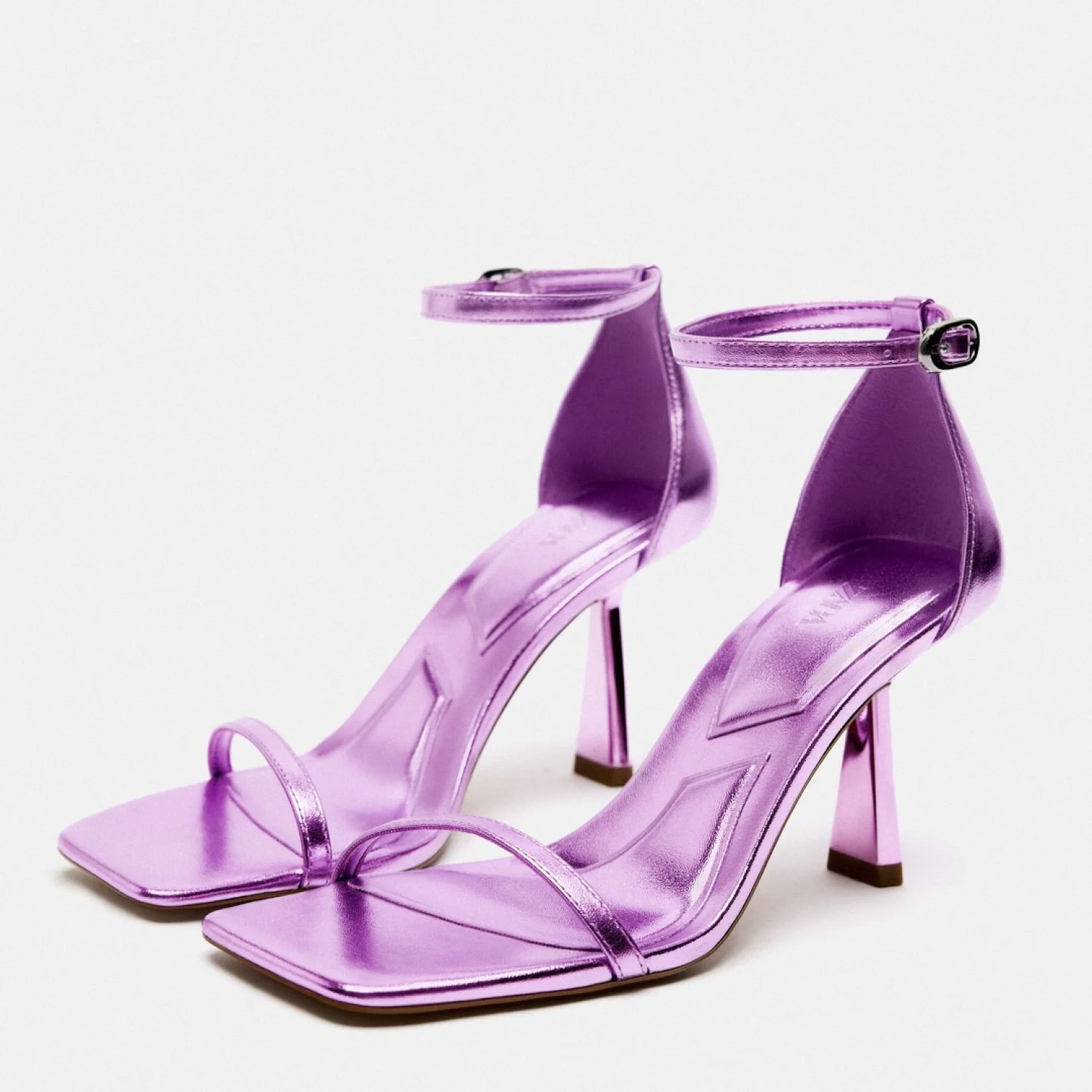 NEW Zara Light Purple Metallic Heeled Sandals US Size 9