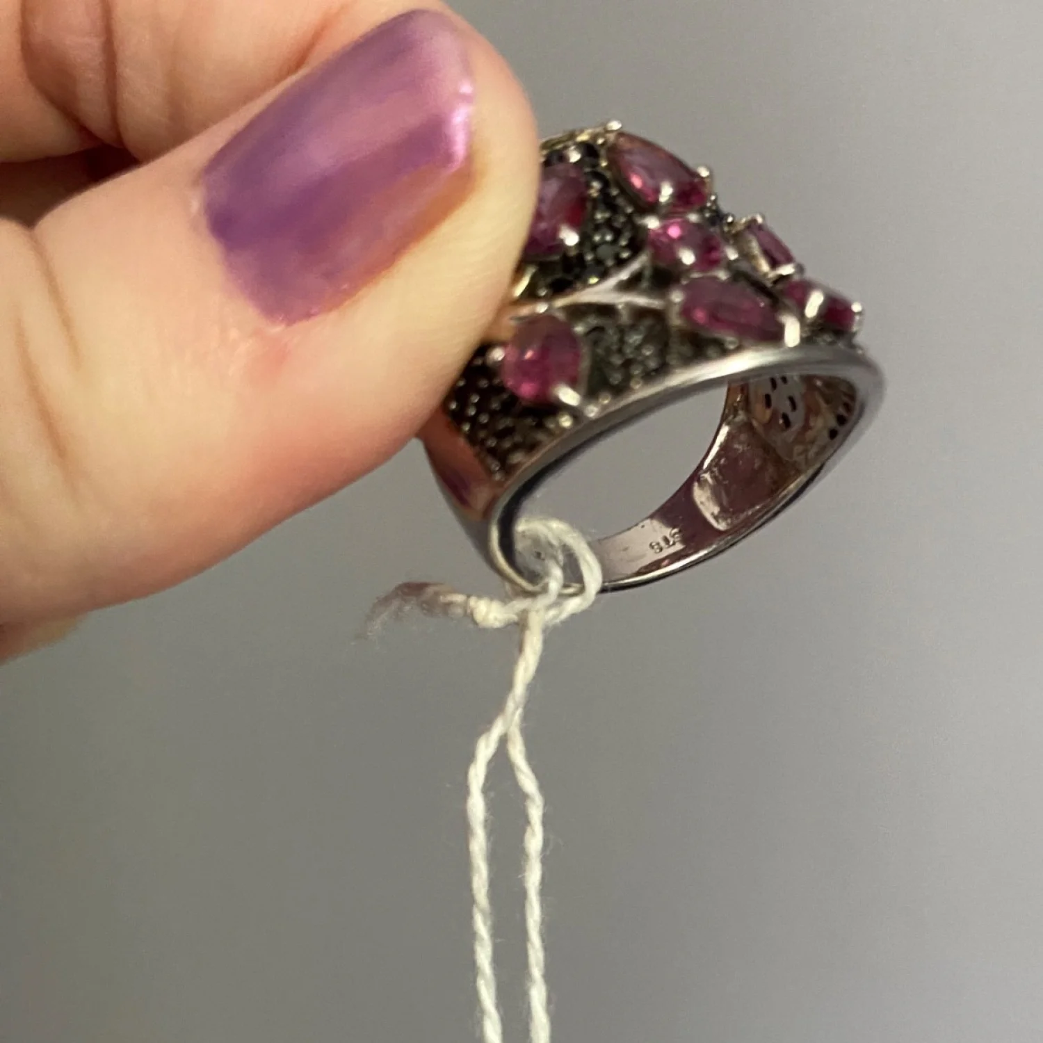 Sz 7 Amethyst 7 Stone Ring Marcasite 925 Silver Cocktail Statement Ring Jewelry