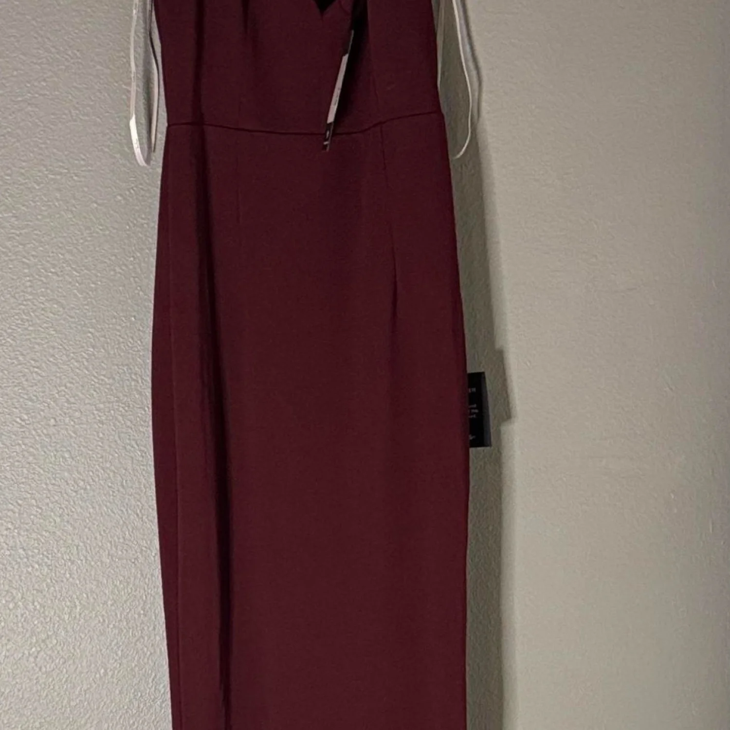 Elegant burgundy formal dress with a sleek and simple design. Made from a smooth fabric, this dress features a flattering cut ideal for formal occasions. Dress is brand new with tags attached. Perfect for evening events or special occasions. #elegant #formal #maxidress