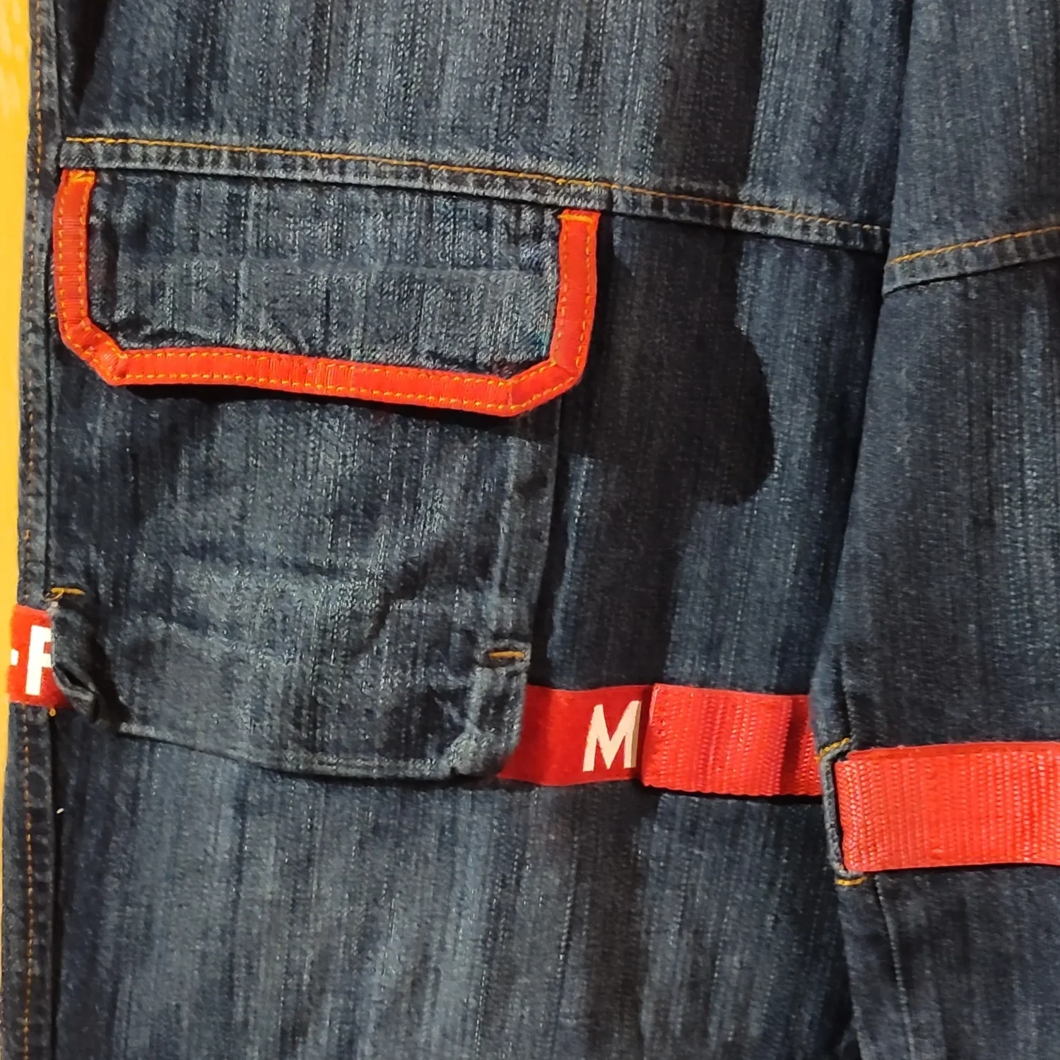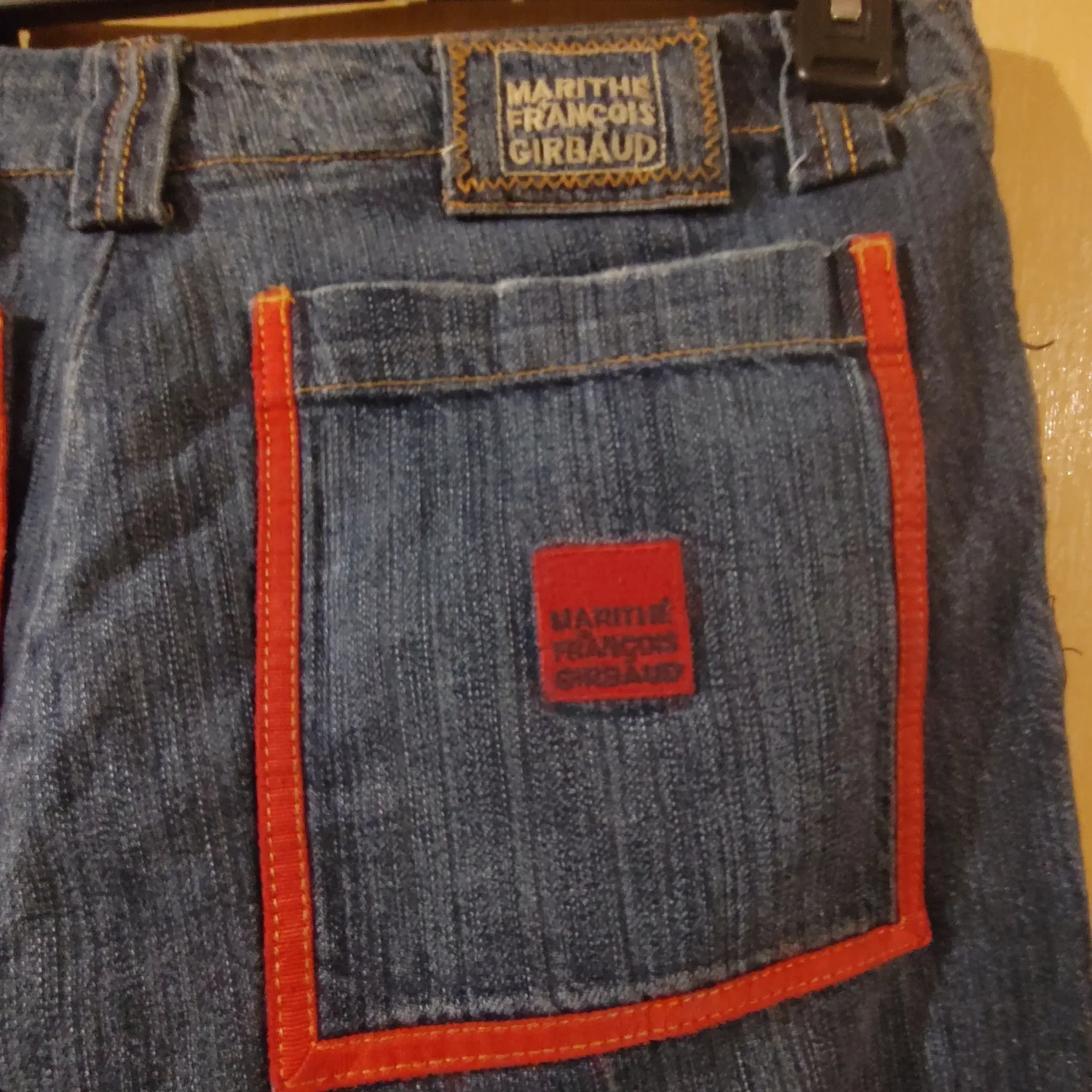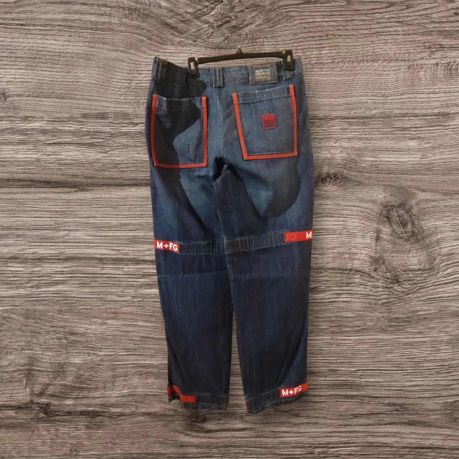 90s Vintage Marithe Francois Girbaud Jeans Sz 34 Red Shuttle Tape Blue Denim