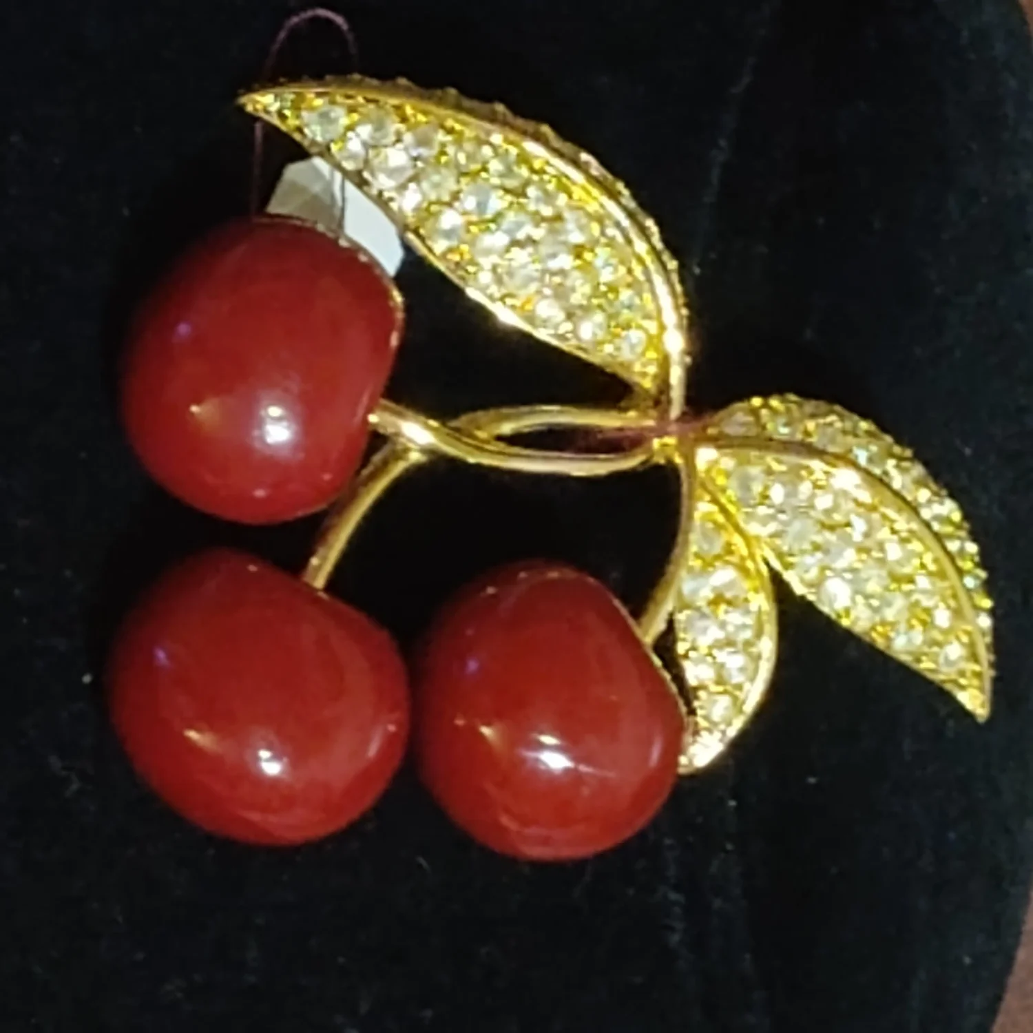 Gorgeous rare vintage Joan Rivers red cherries brooch and great condition
