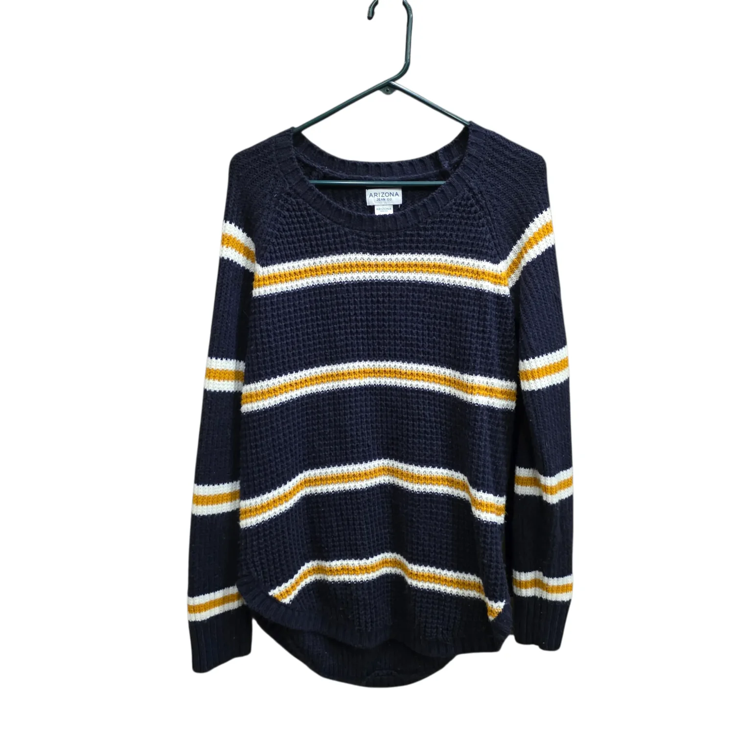 Arizona Jean Co Striped Waffle Knit Sweater Navy Mustard Yellow Large