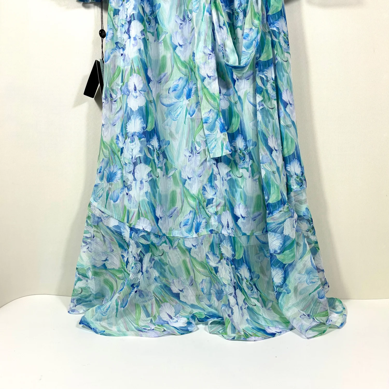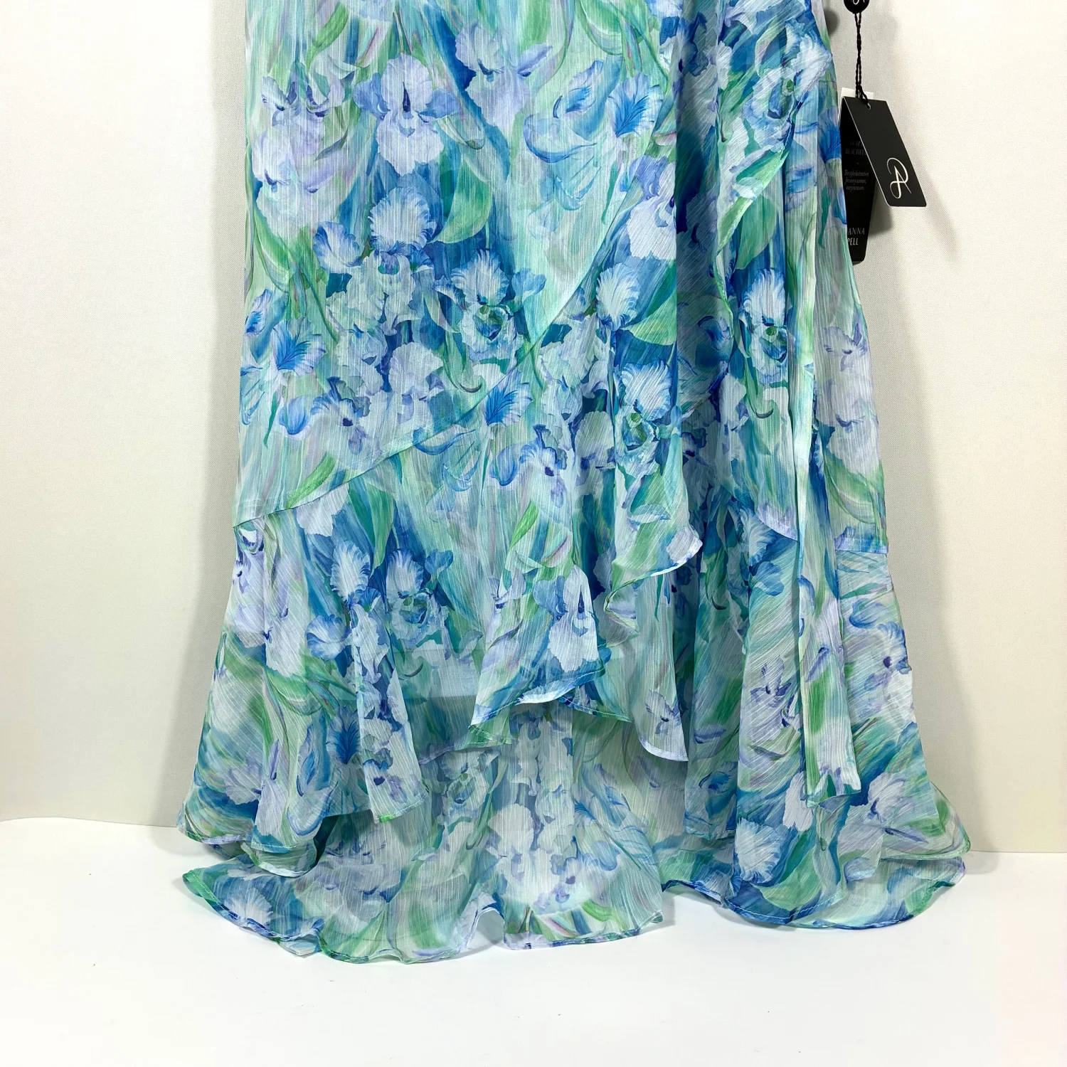 Adrianna Papell Chiffon Midi Dress Blue Multi 2 NWT Floral Watercolor Ruffle