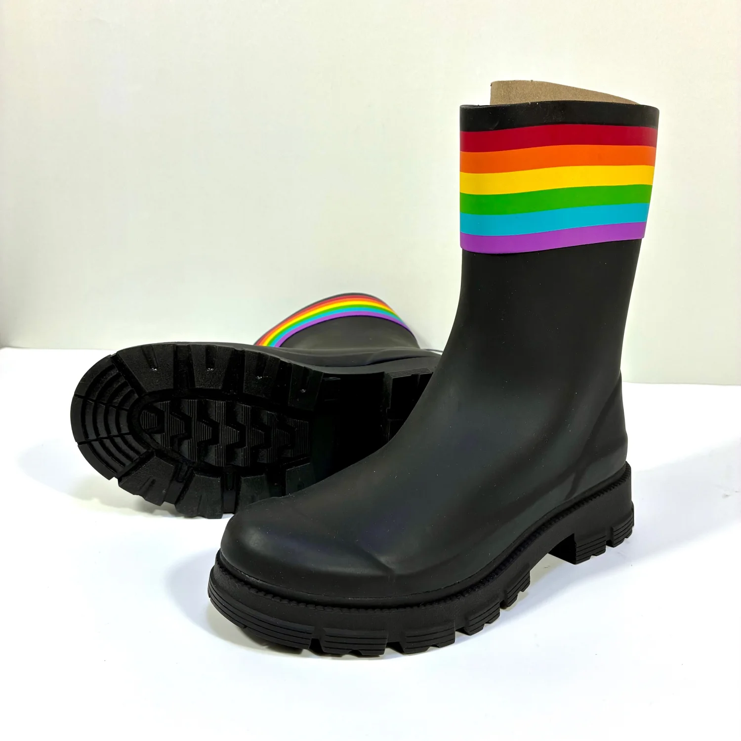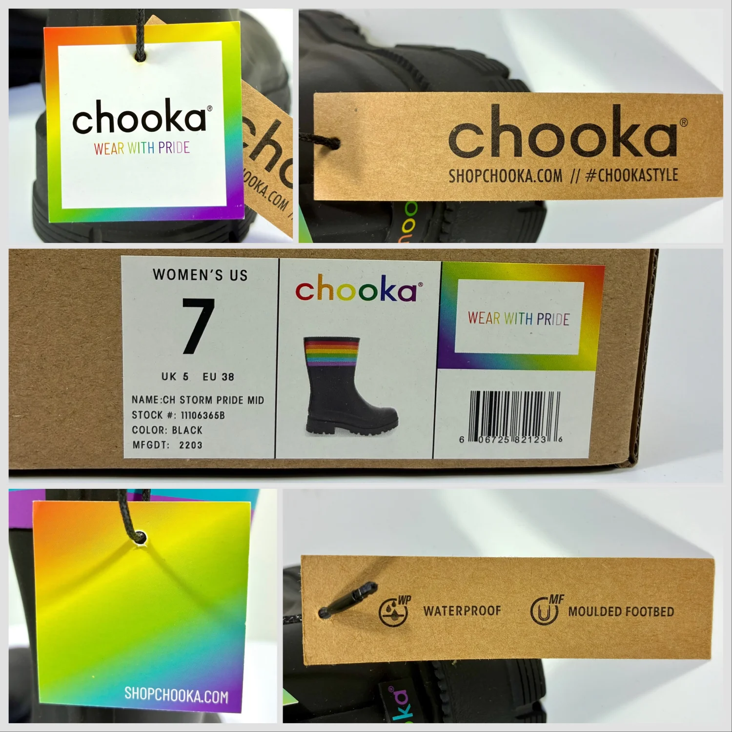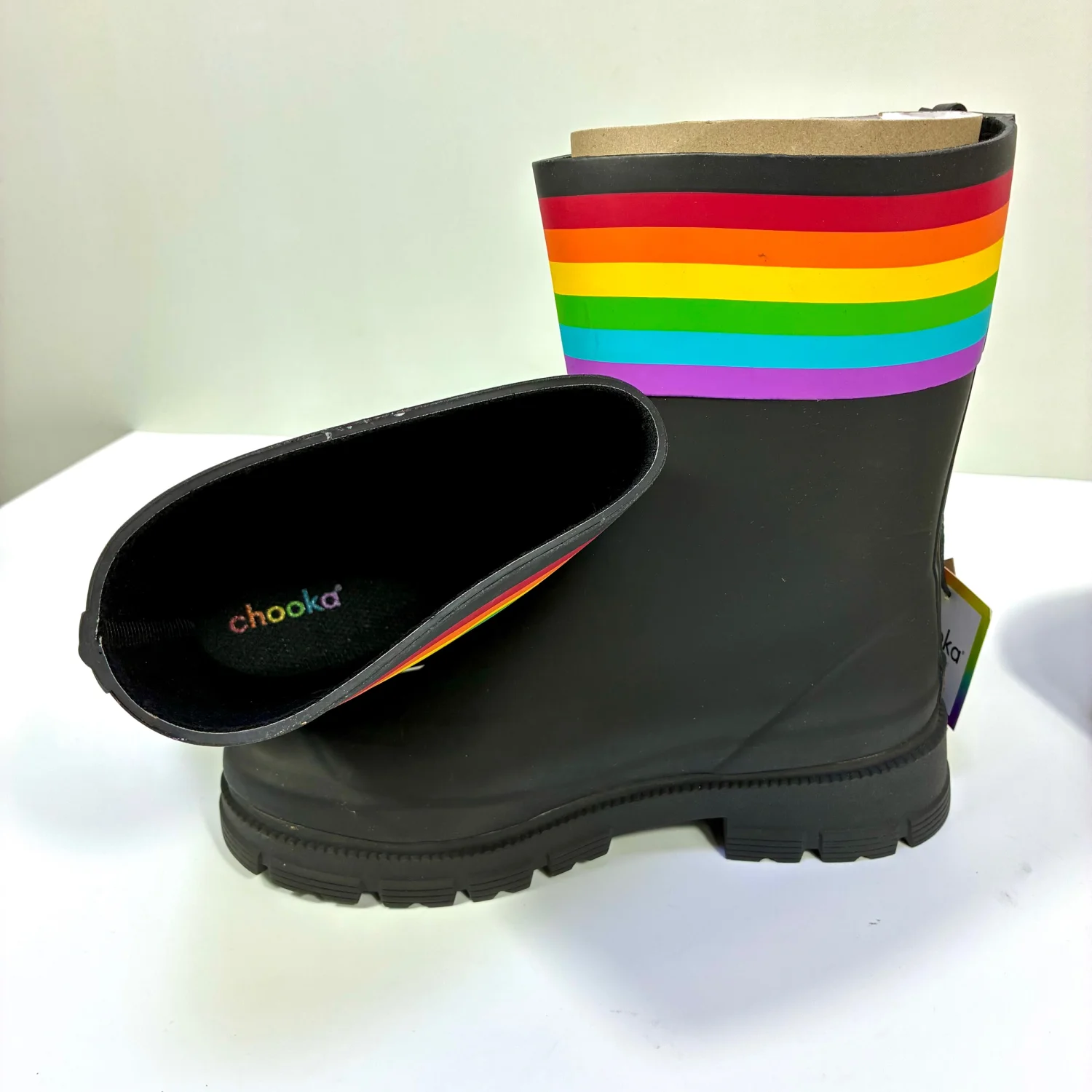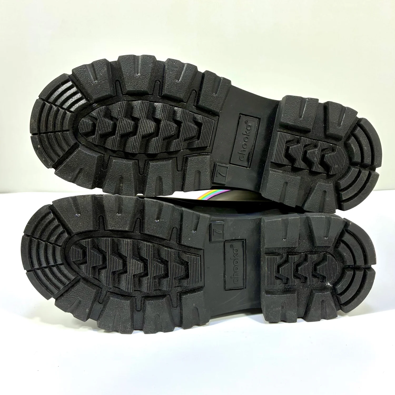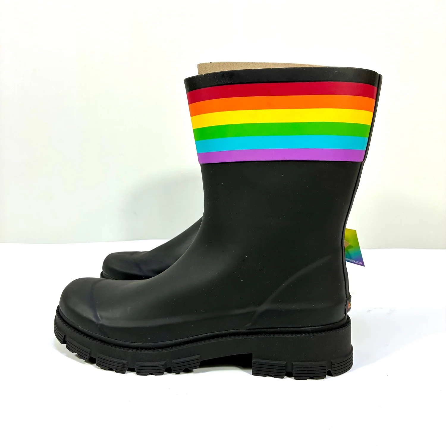 Chooka Storm Pride Waterproof Rain Boots Black 7 NEW Rainbow