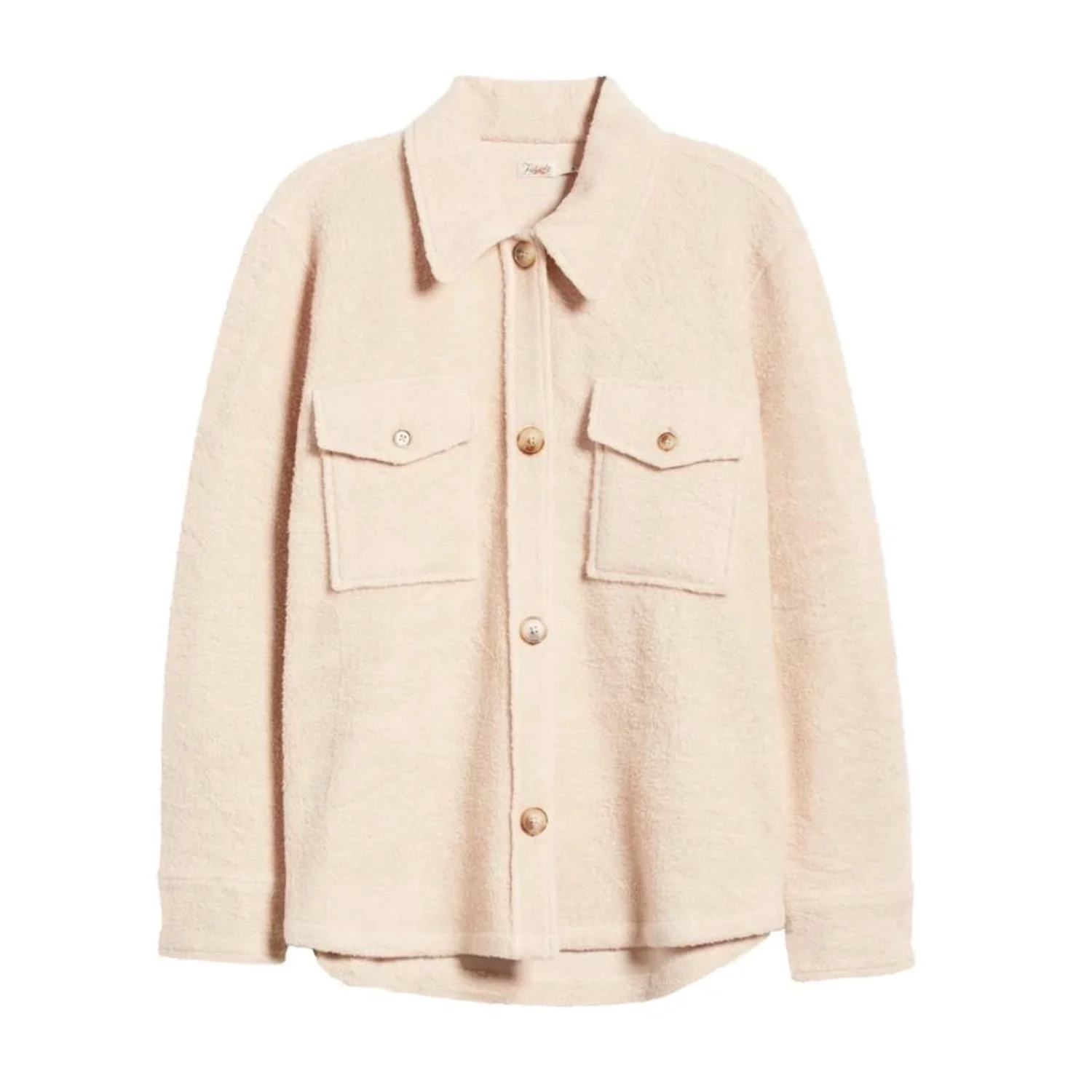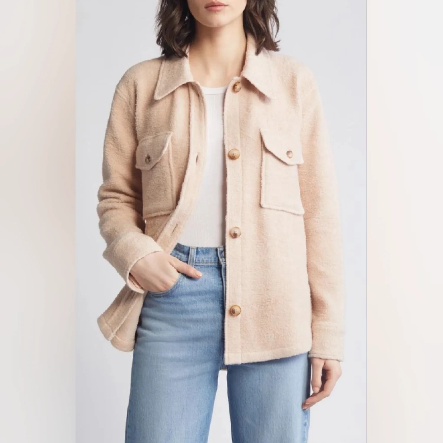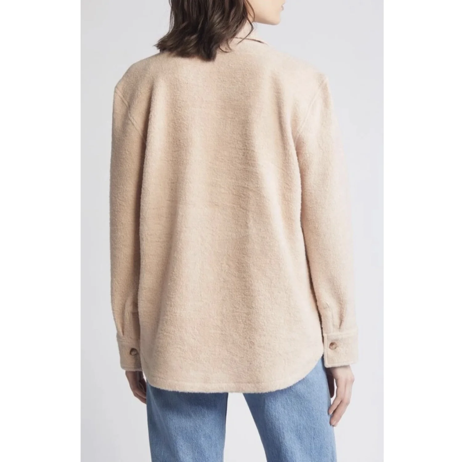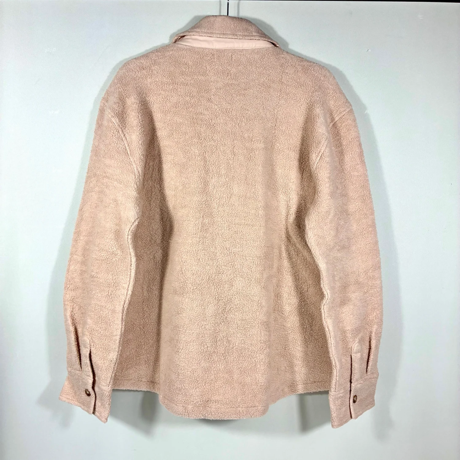 NEW with tag! Retail: $228 - Size: Large - Color: Peach Whip - Fluffy high-pile fleece makes every wear a treat in a well-structured jacket styled with a point collar and front flap pockets. - Approx. 27" length - Front flap pockets - Point collar - Button cuffs - Material: 67% polyester, 30% viscose, 3% elastane