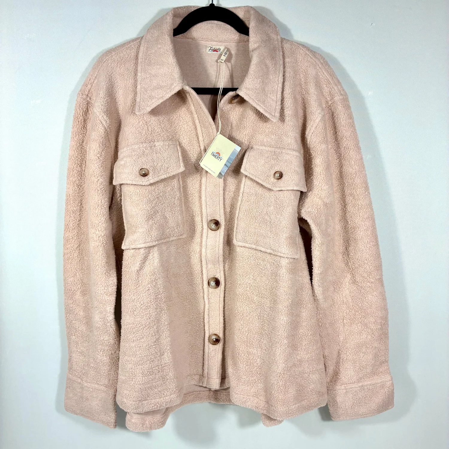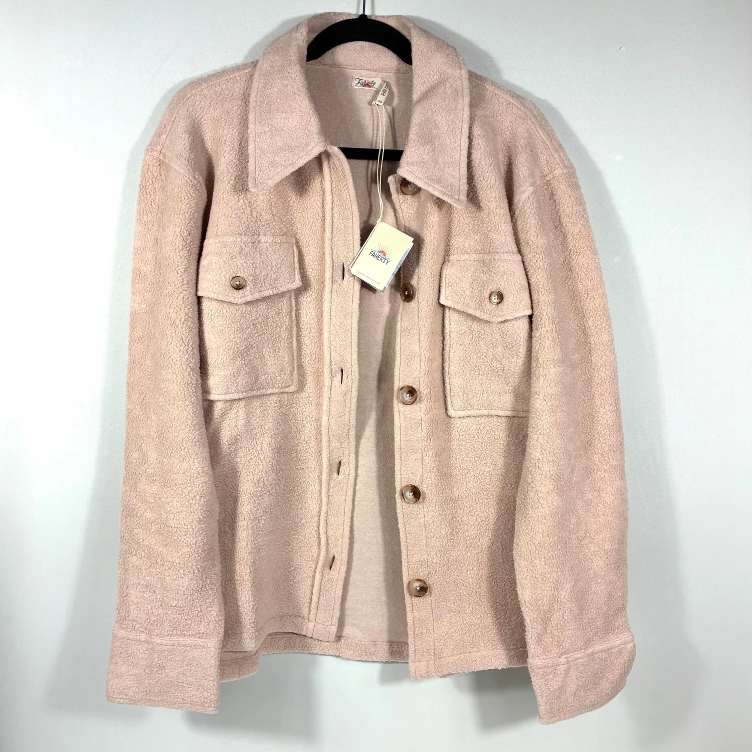 Faherty Holden High Pile Fleece Jacket Peach Whip Large NWT