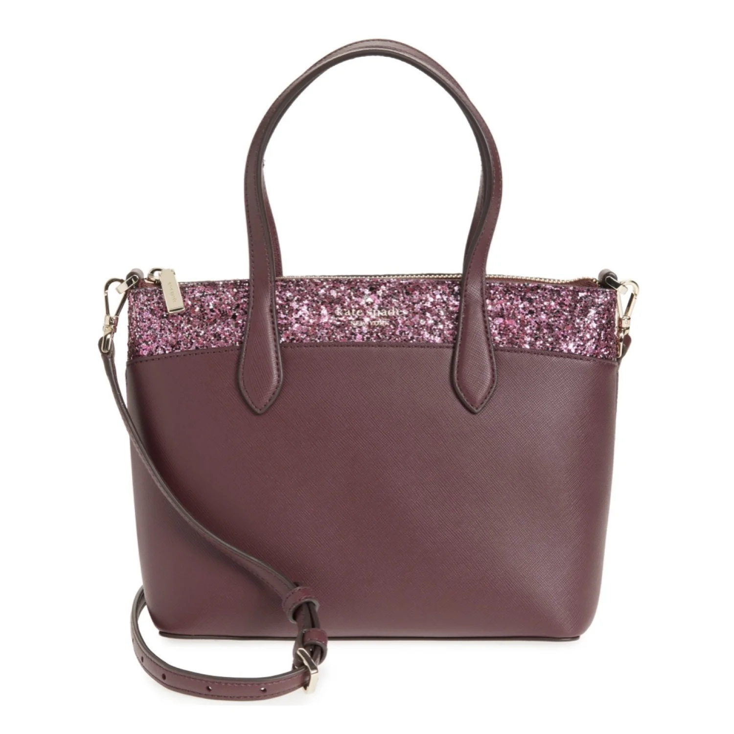 Kate Spade Flash Glitter Satchel Bag Cherrywood NWT Crossbody Adjustable Glam