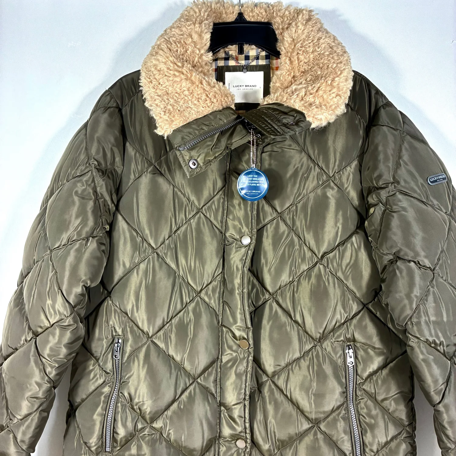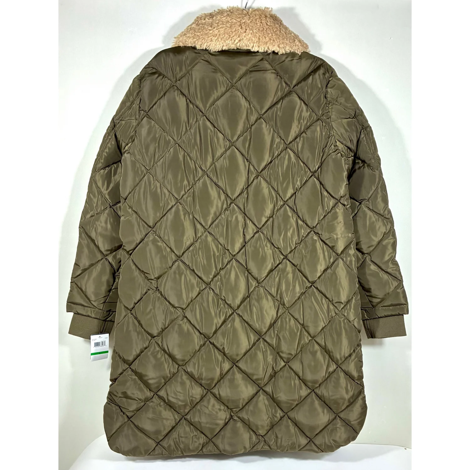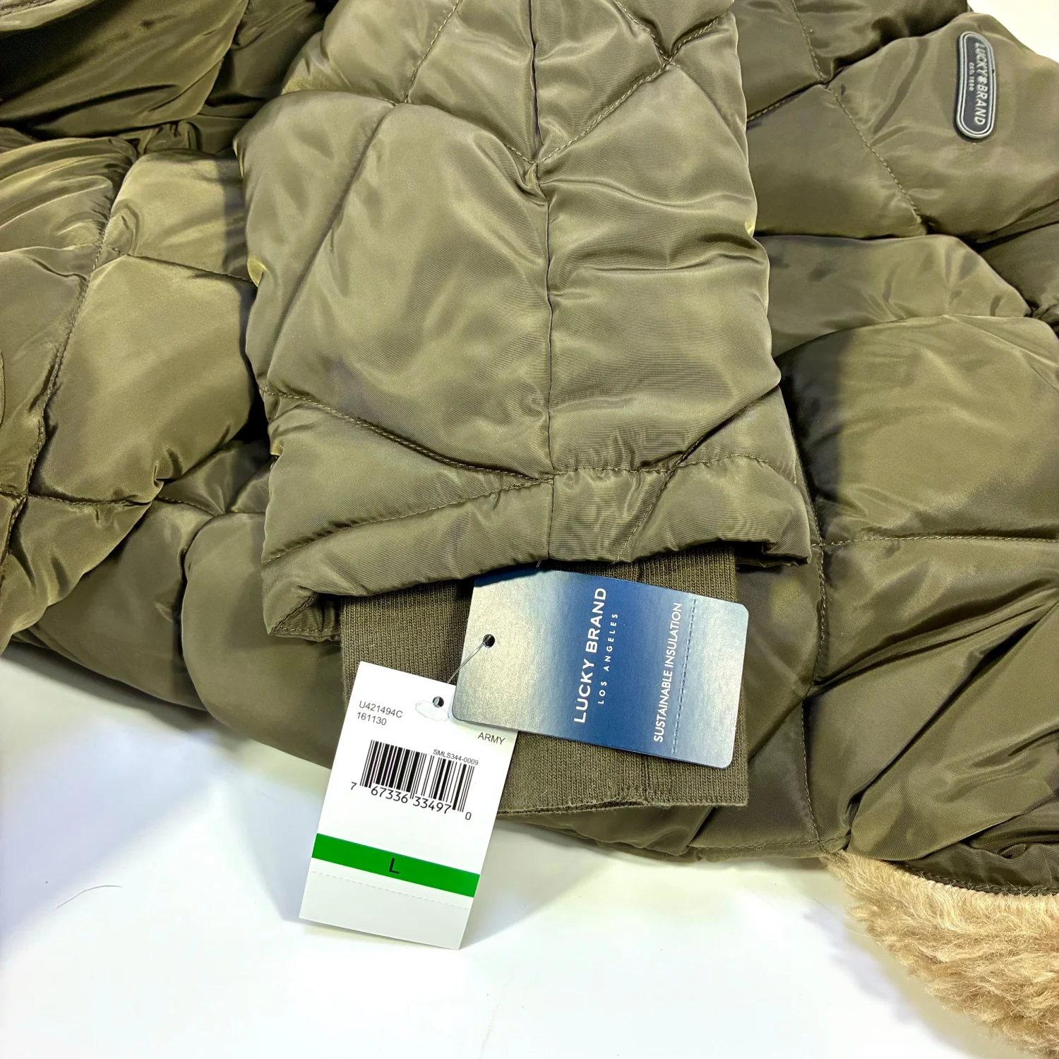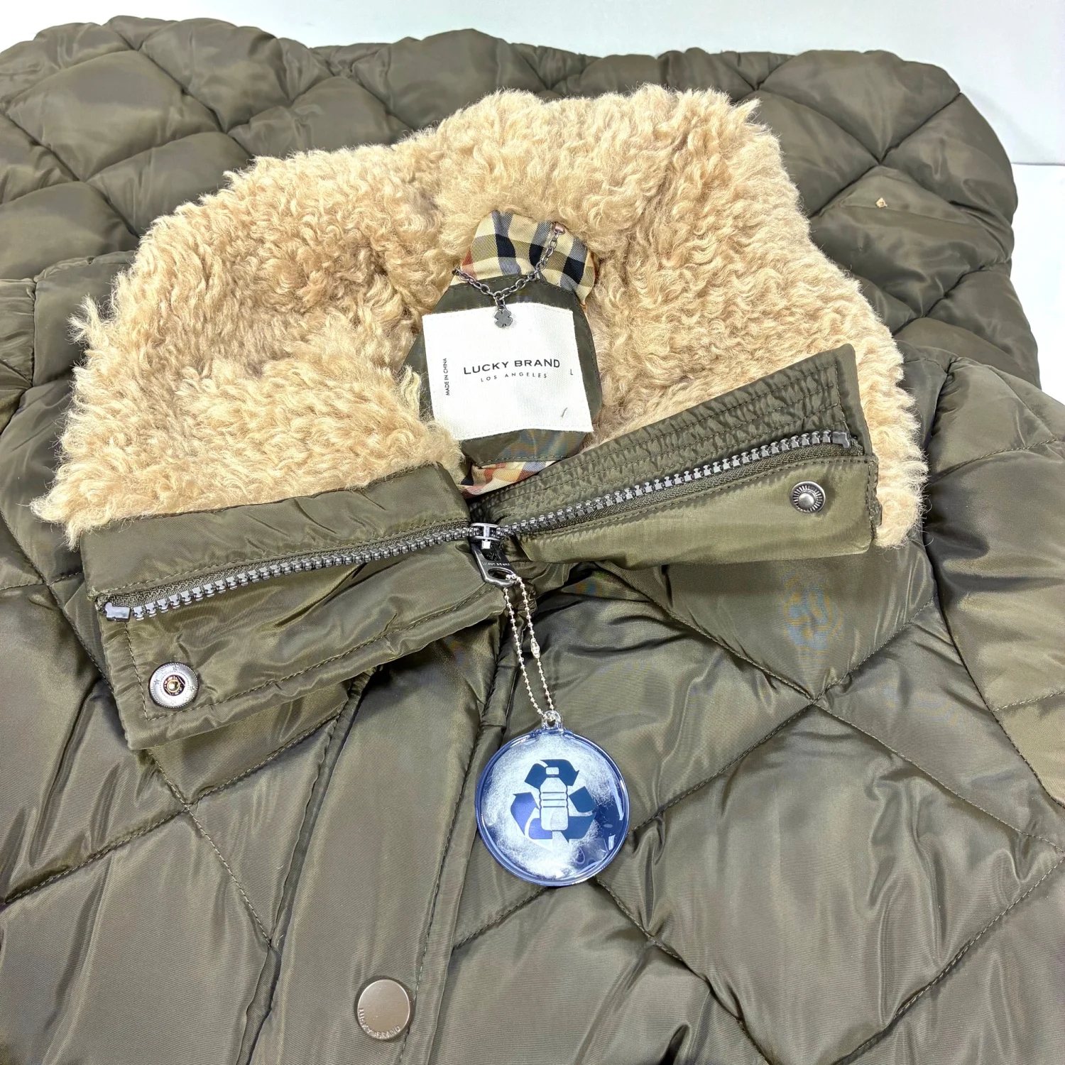 Lucky Brand Quilted Faux Shearling Coat Jacket Army Large NWT Puffer Winter