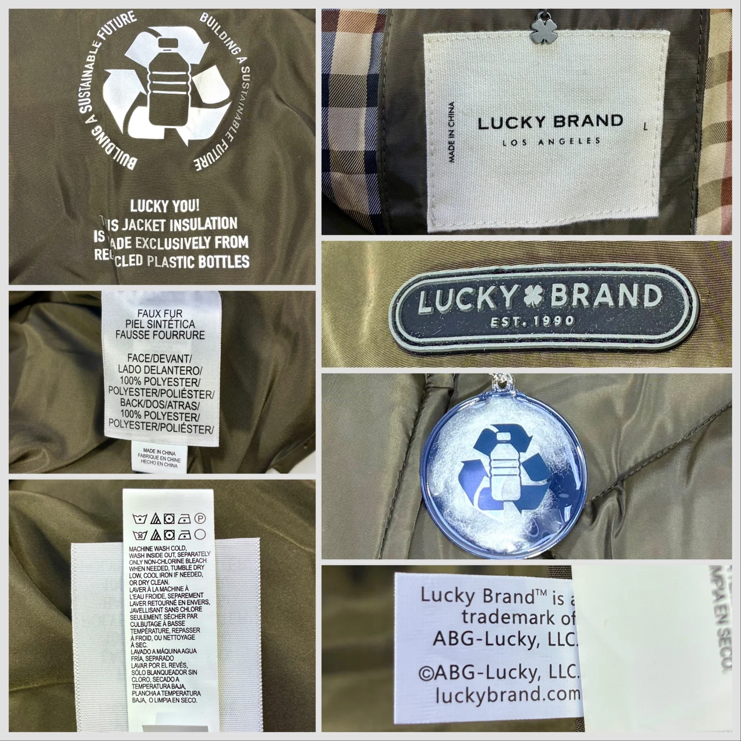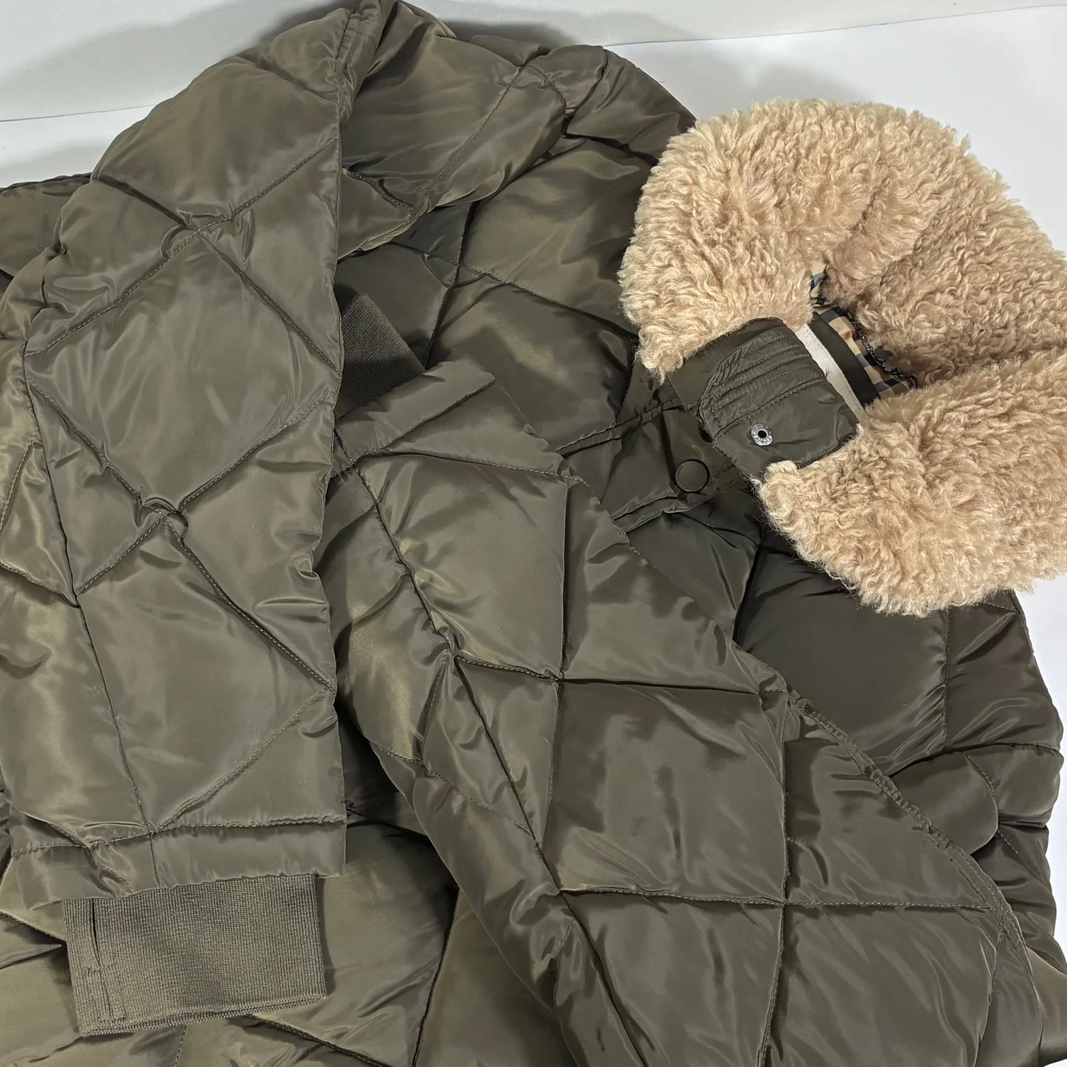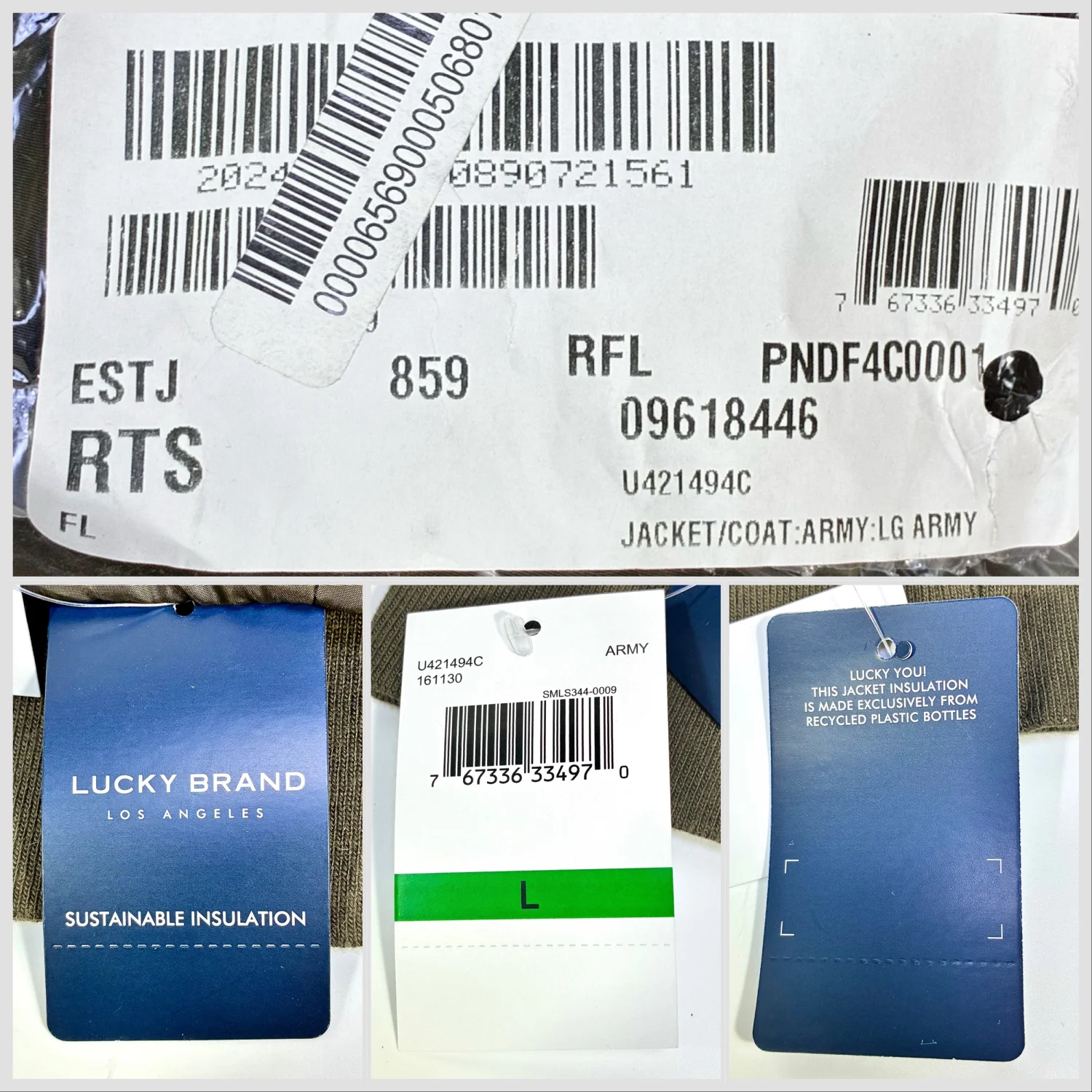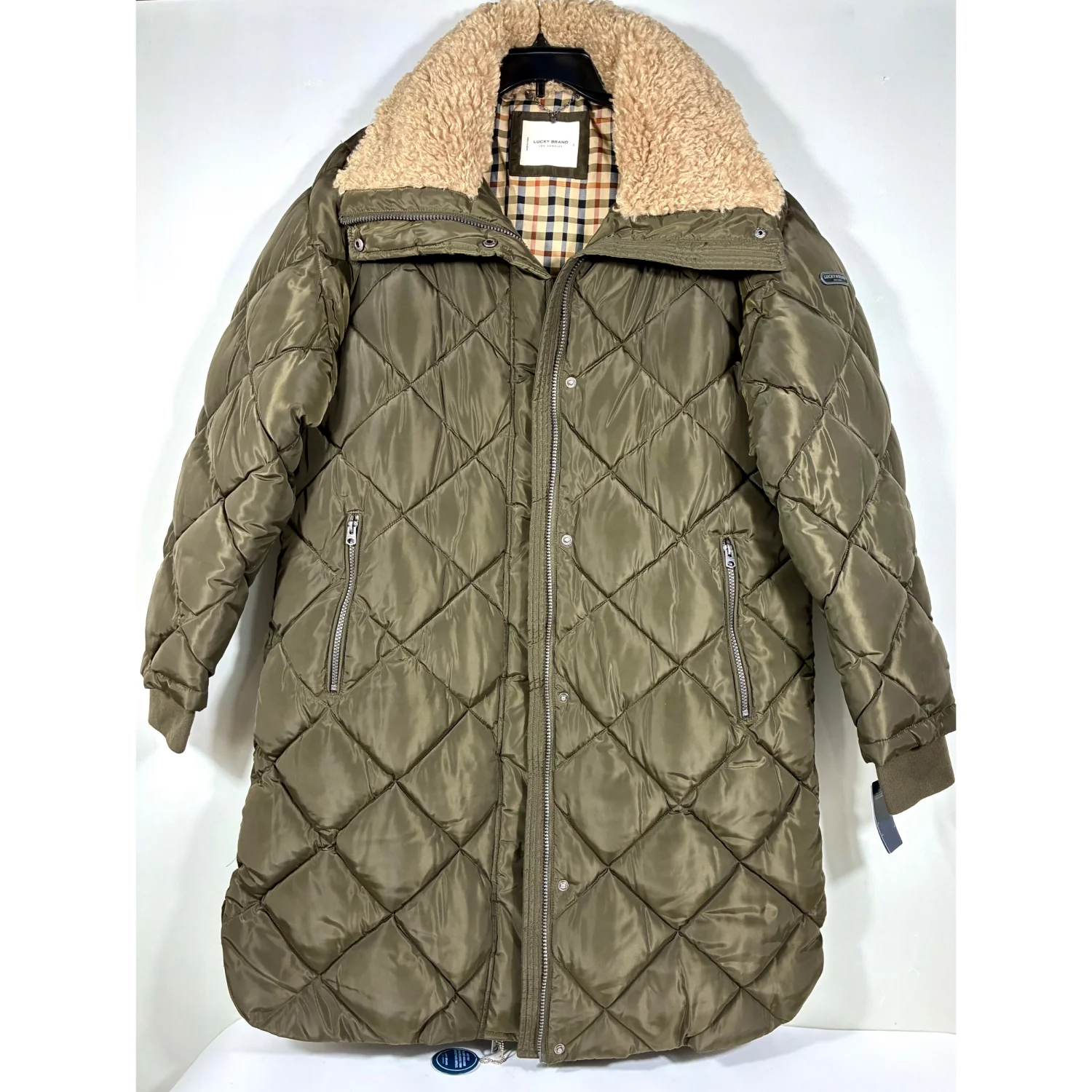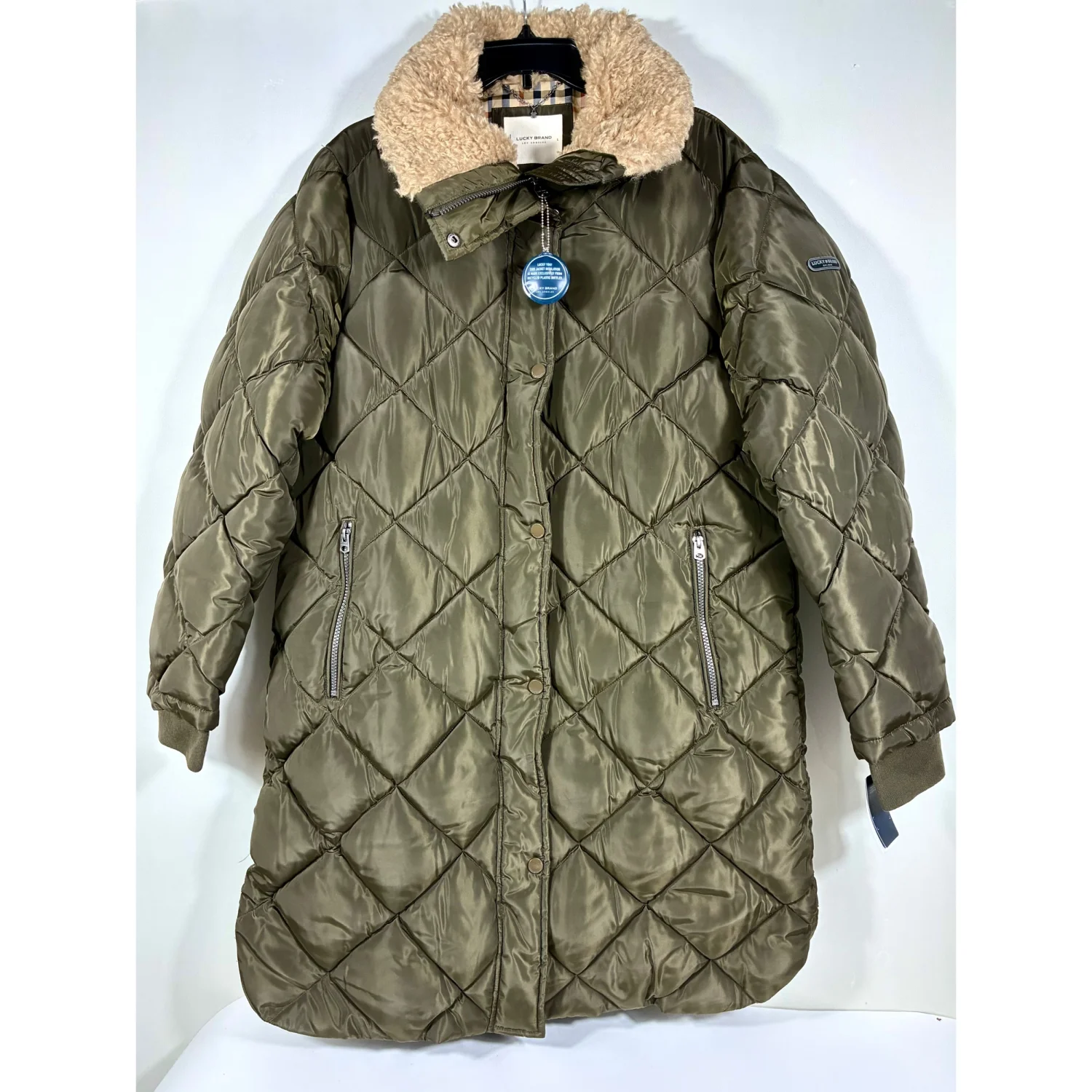 Lucky Brand Quilted Faux Shearling Coat Jacket Army Large NWT Puffer Winter