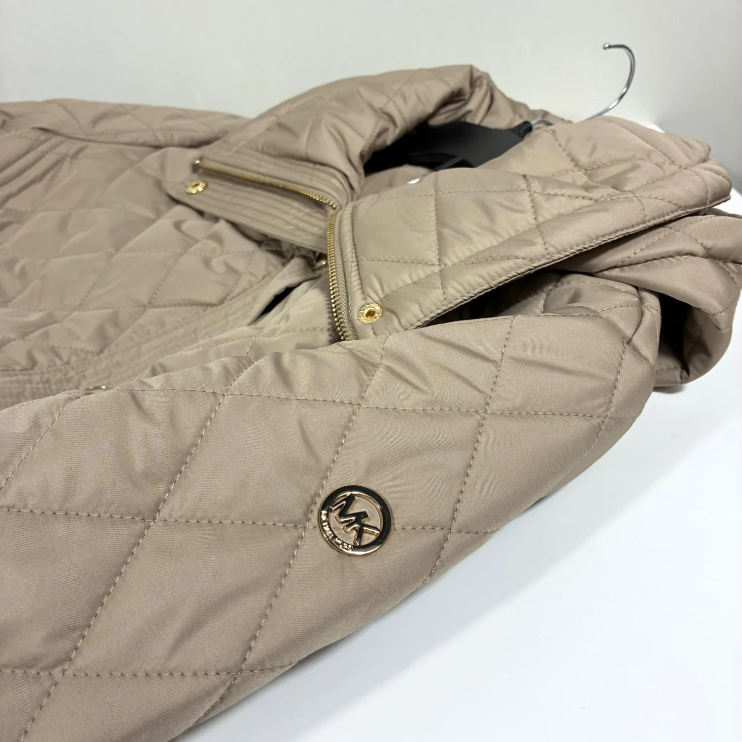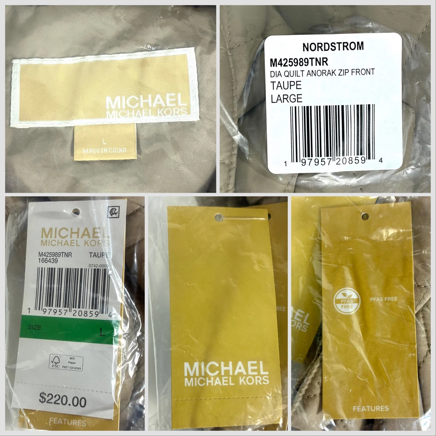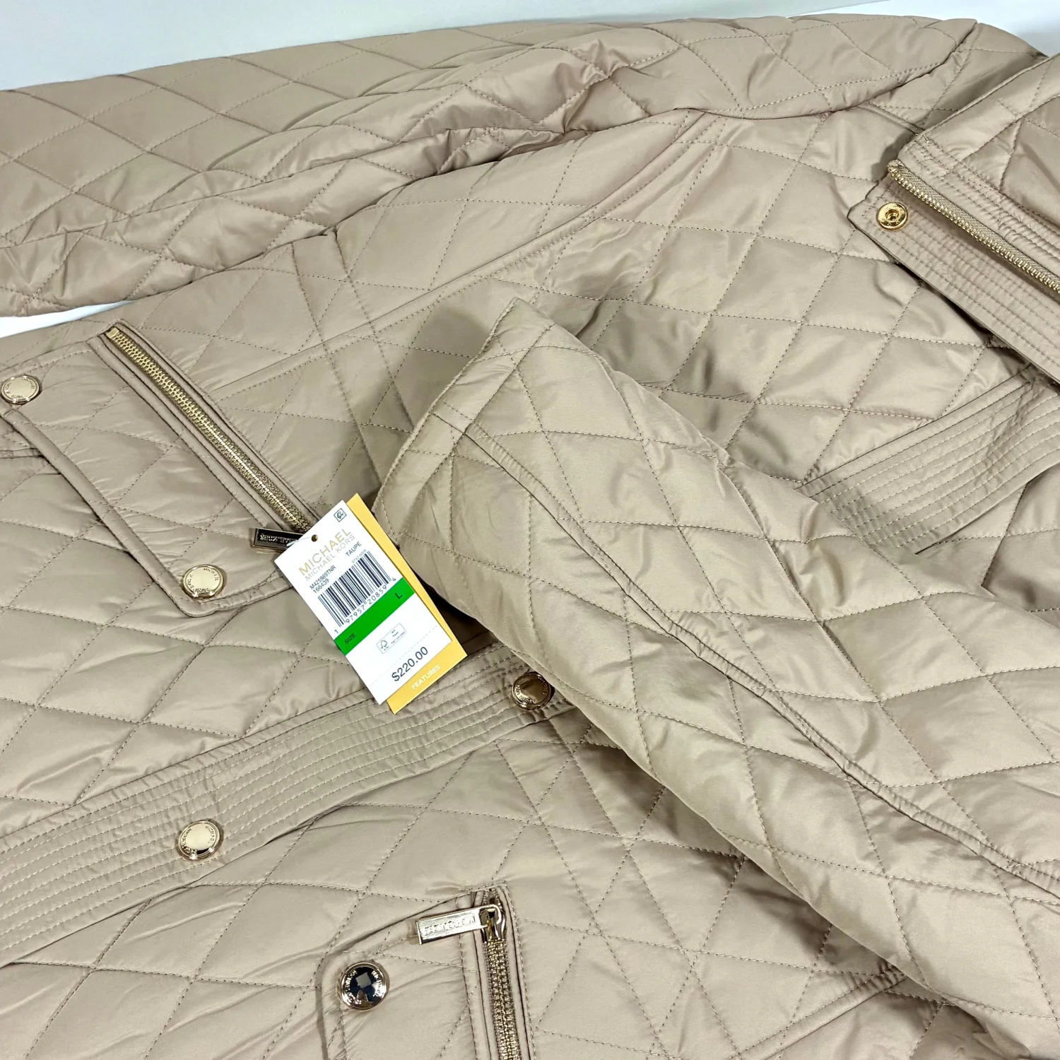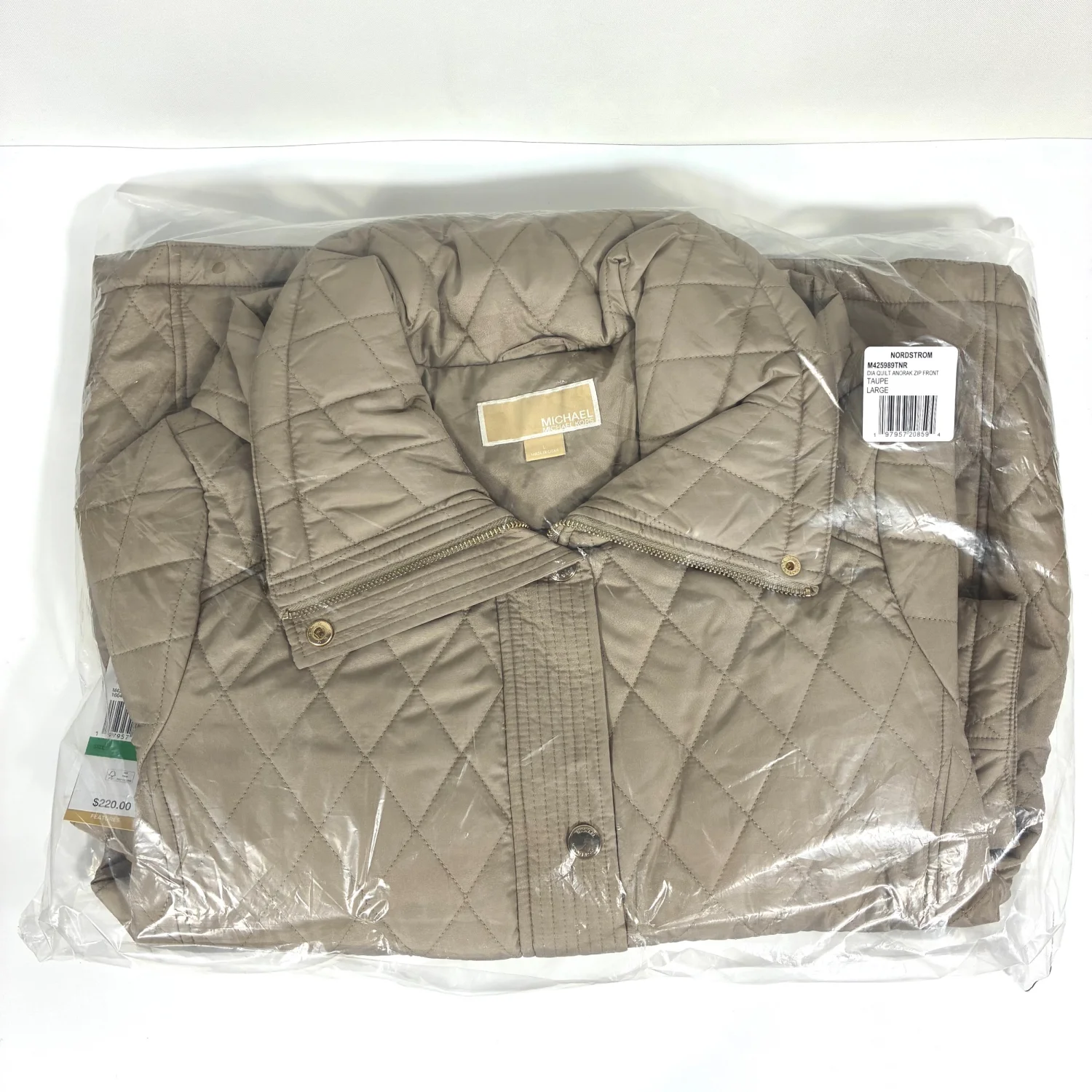 Michael Kors Diamond Quilted Zip Front Jacket Taupe Large NWT