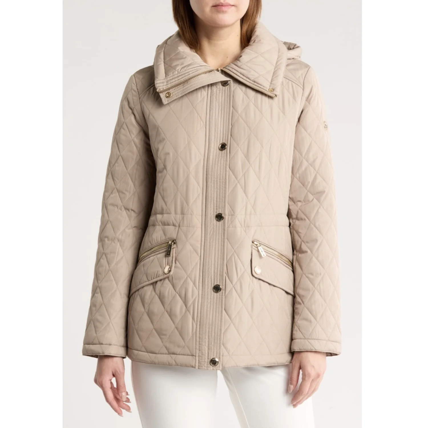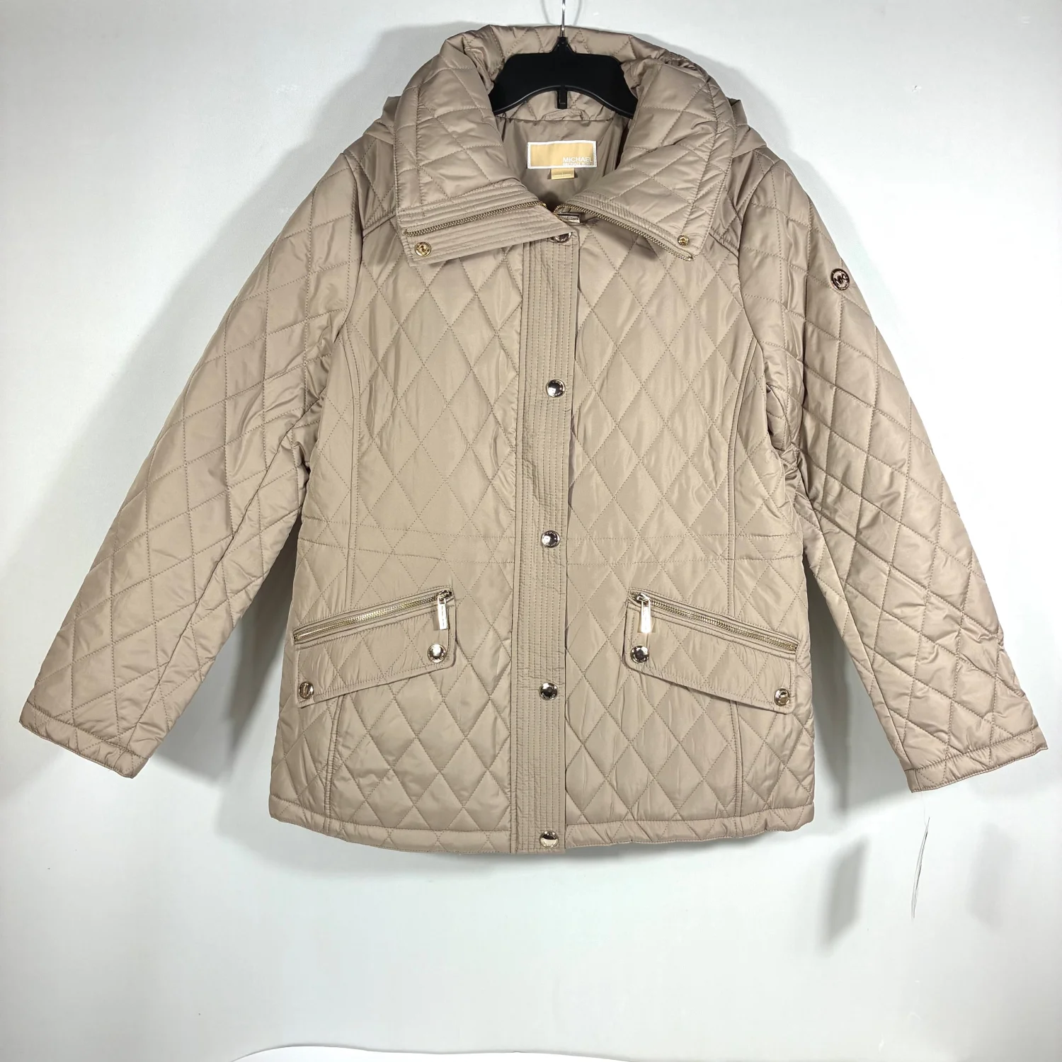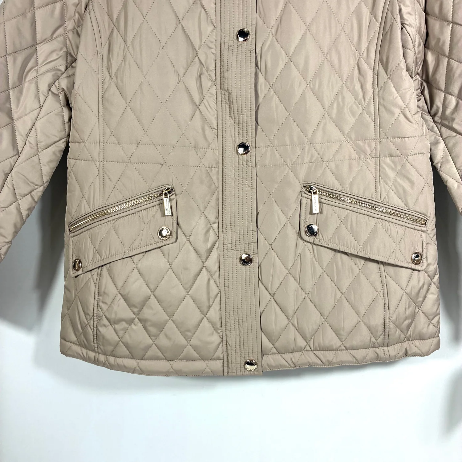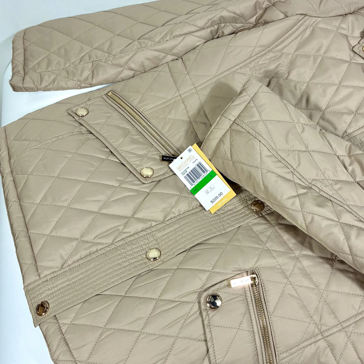 Michael Kors Diamond Quilted Zip Front Jacket Taupe Large NWT