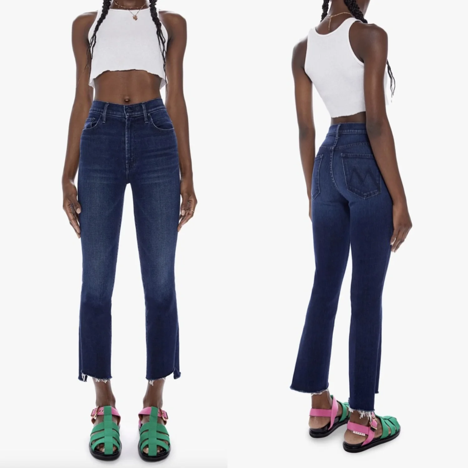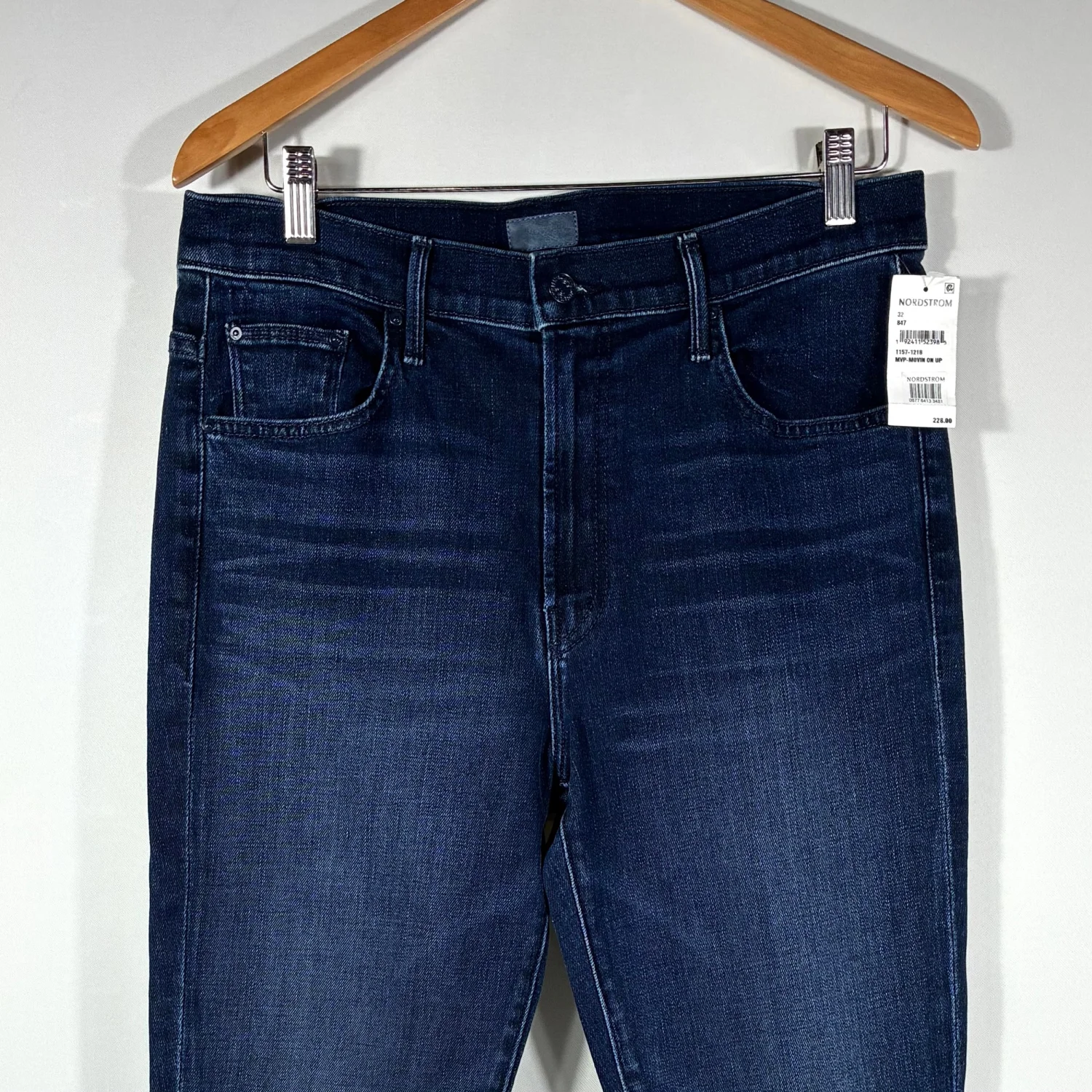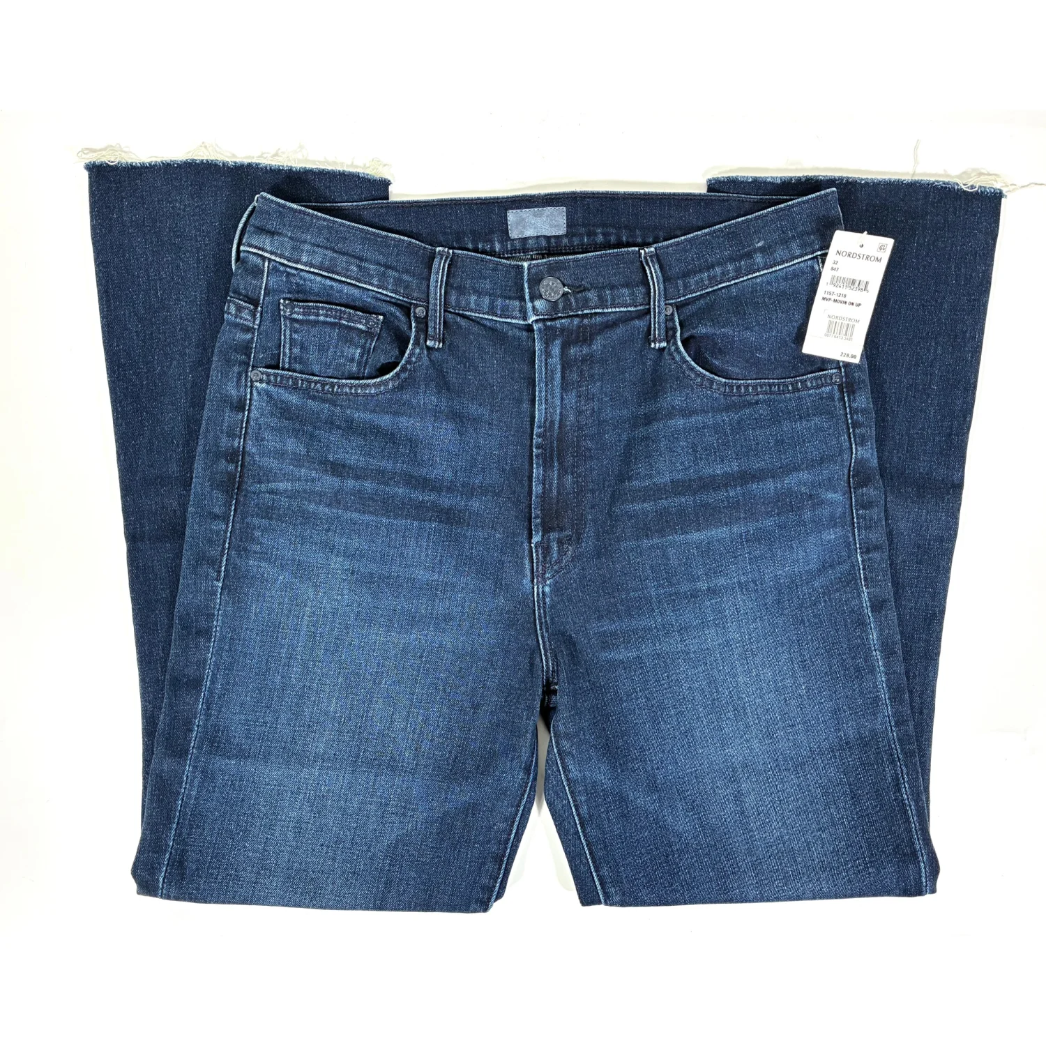 New and unworn. Nordstrom retailer tag attached. Original MOTHER brand tag is not included. - Retail Price: $228 - Size: 32 - Color/Wash: Movin’ On Up - Style: The Insider Step Hem Crop Bootcut - High-waisted bootcut silhouette - Cropped ankle length with step frayed hem - Zip fly with button closure - Classic five-pocket design - Soft stretch denim - Dark blue wash with subtle fading and whiskering - Made in Los Angeles Fabric Content: - 64% Cotton - 22% Recycled Cotton - 13% Recycled Polyester - 1% Elastane Identifiers: - MPN: 0400018406052 - UPC: 192411523985
