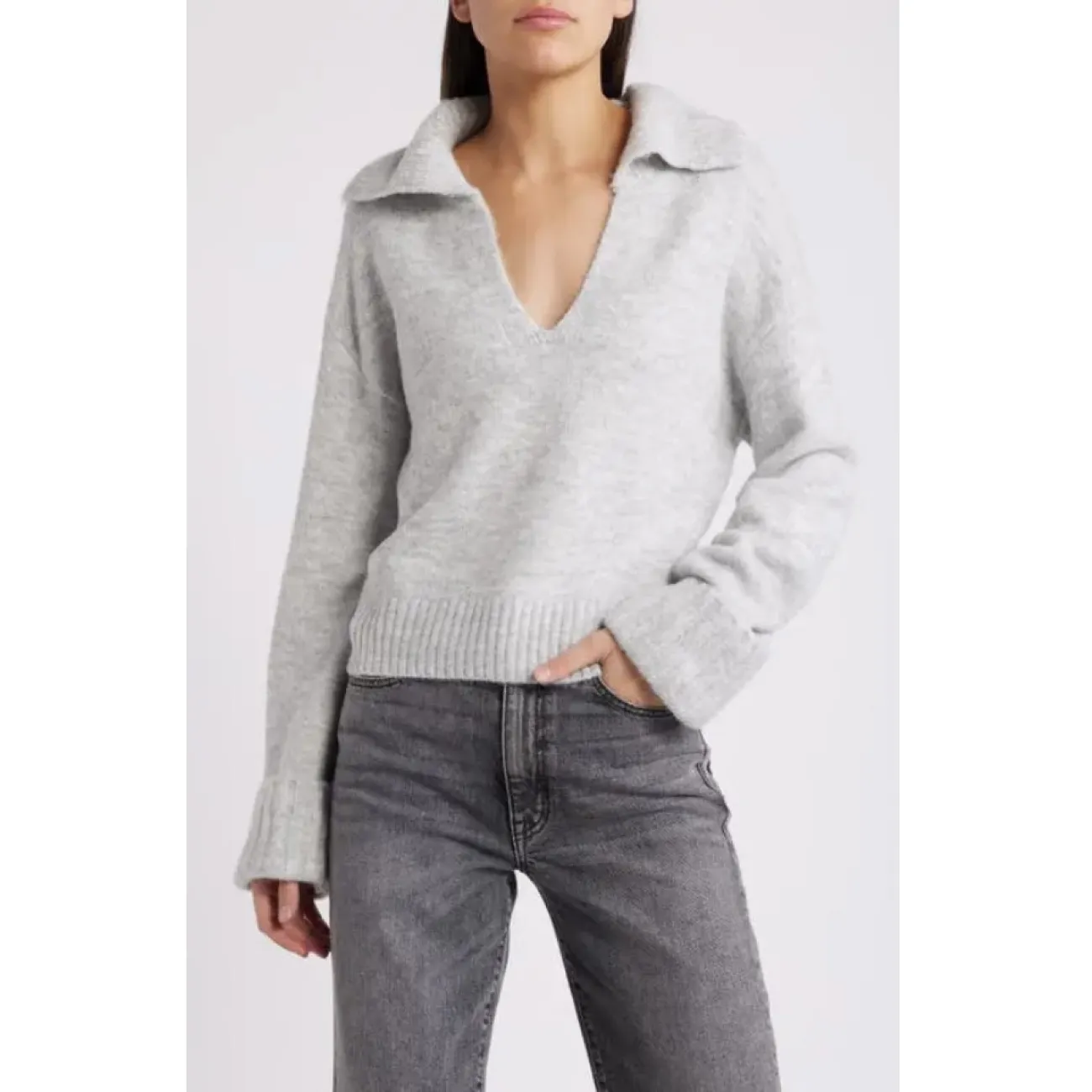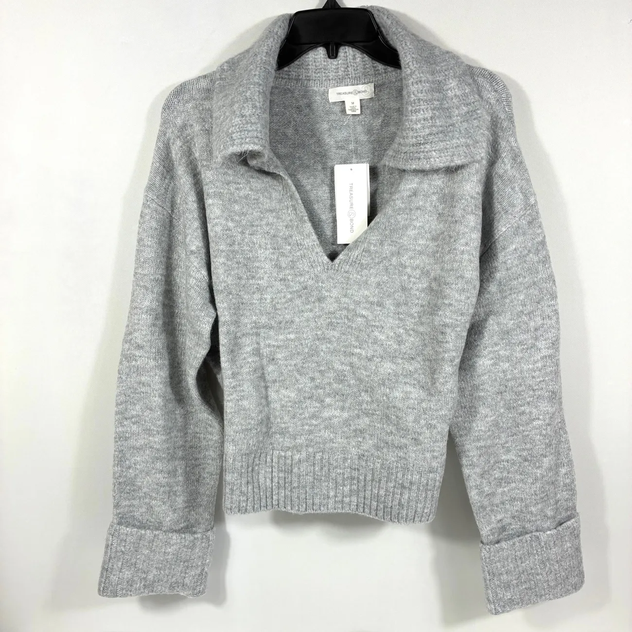 Treasure & Bond Oversize Johnny Collar Sweater Grey Heather Medium NWT