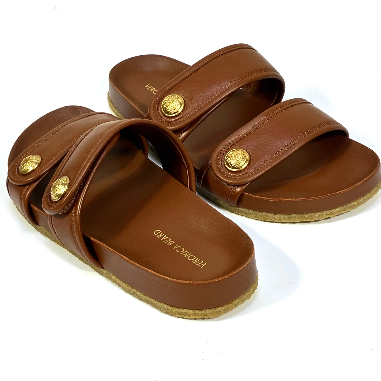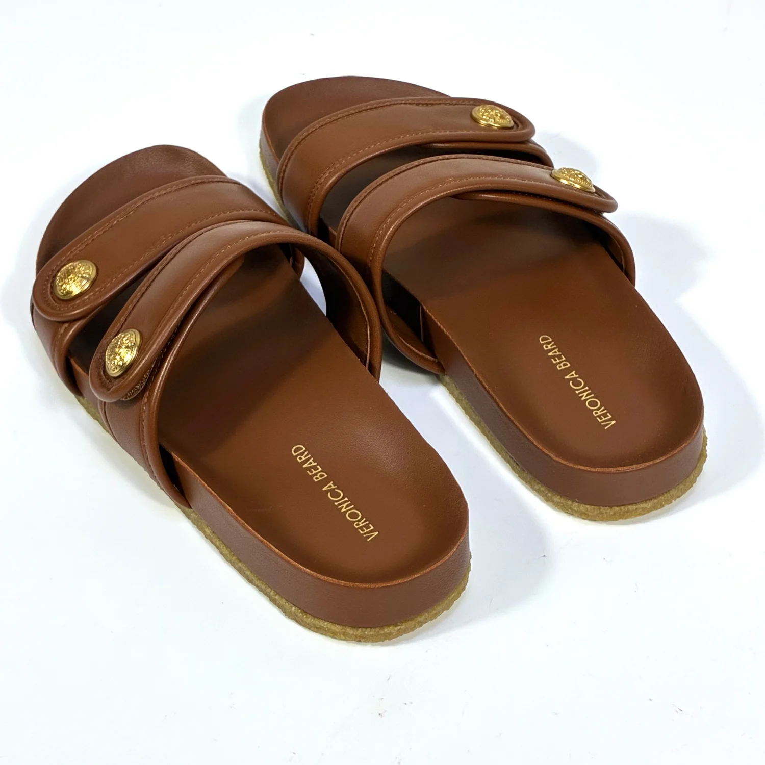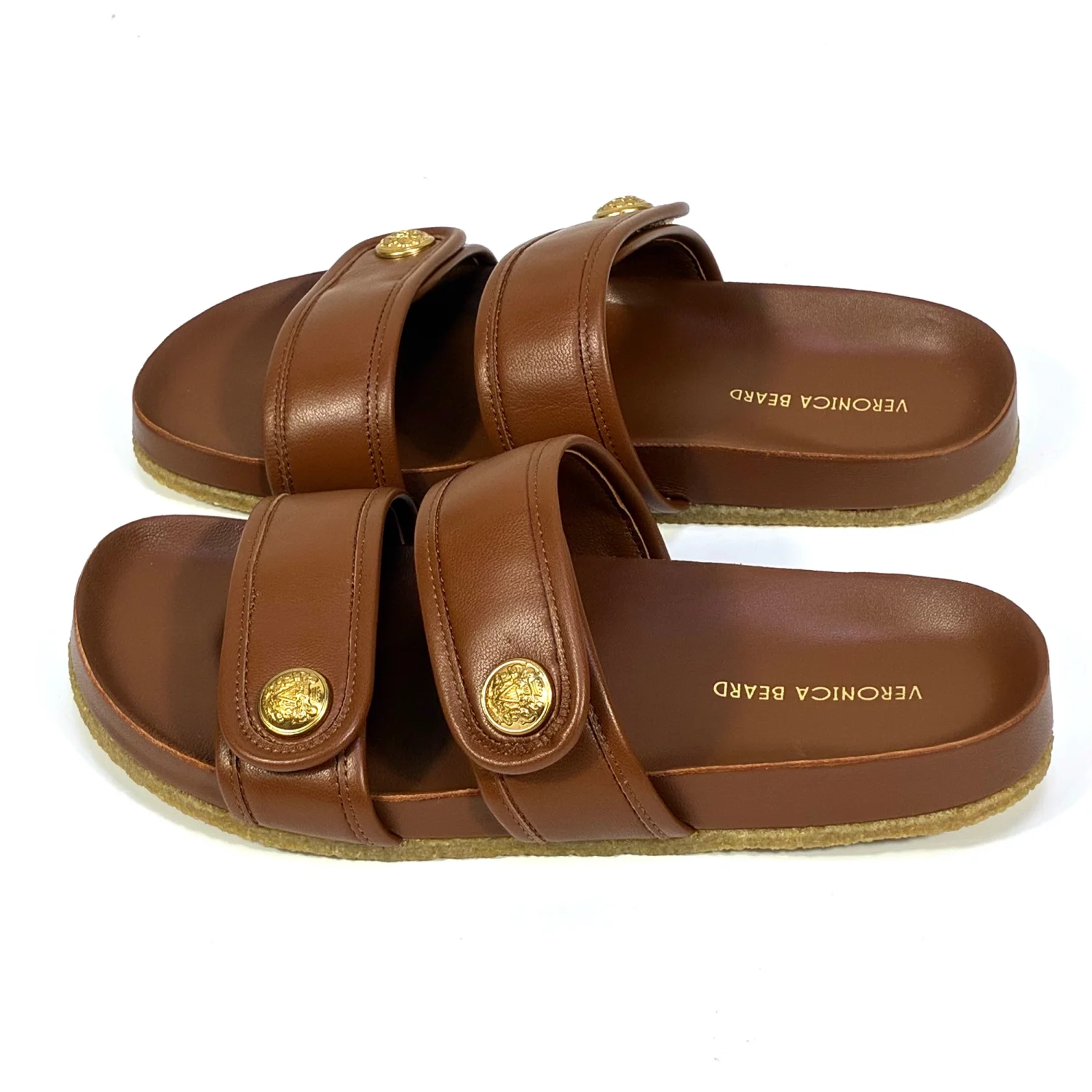 Veronica Beard Percey Leather Slide Sandals Caramel 7 M NEW Summer