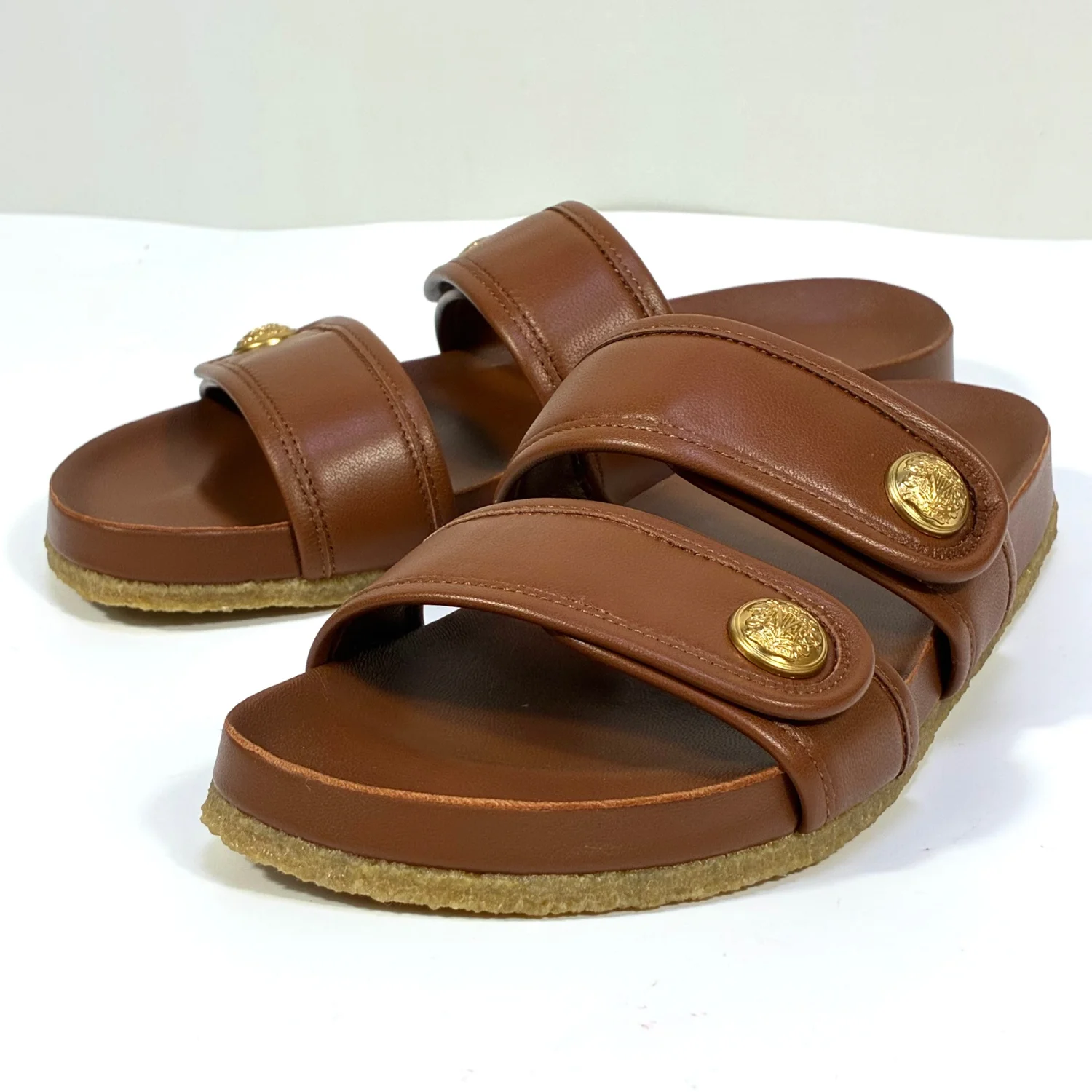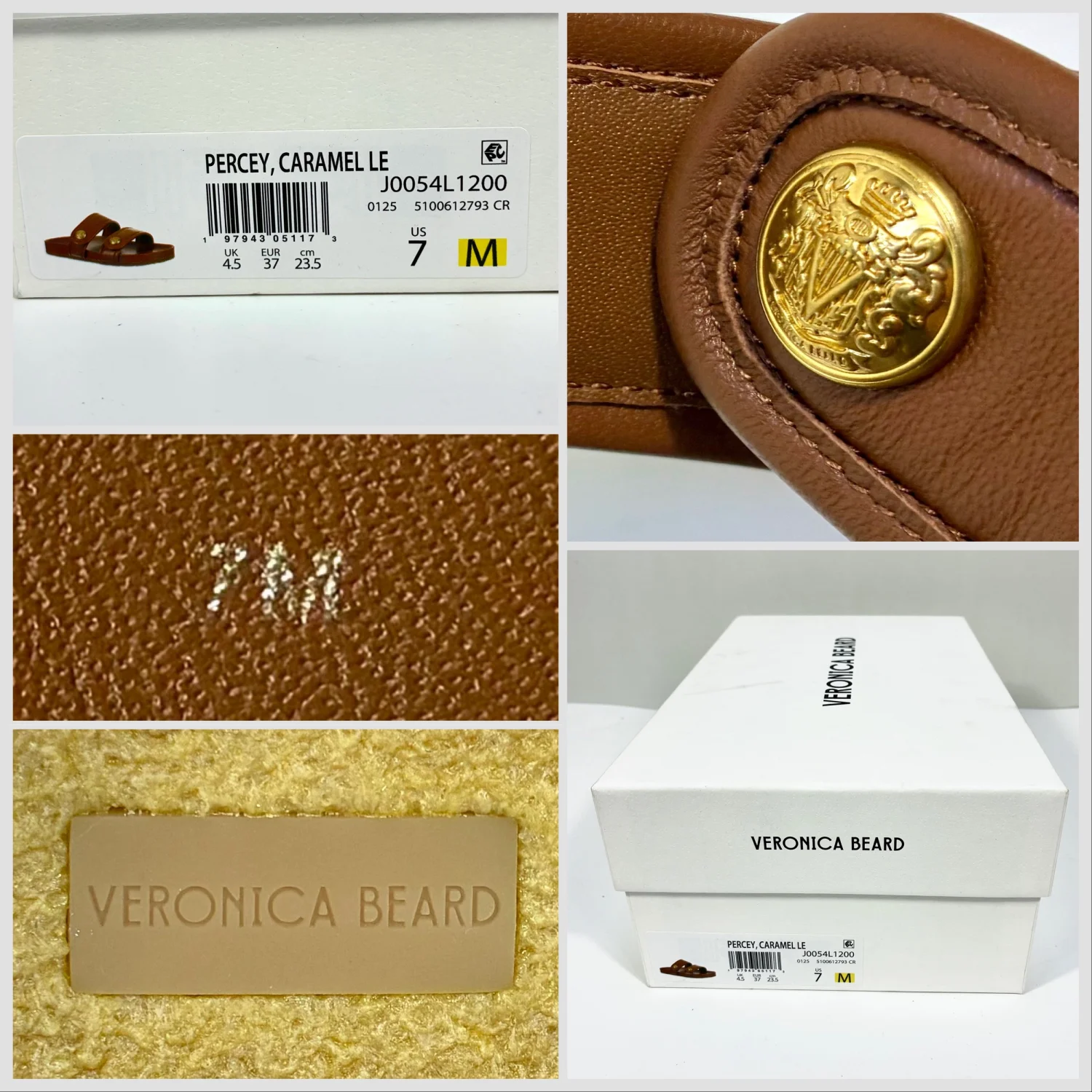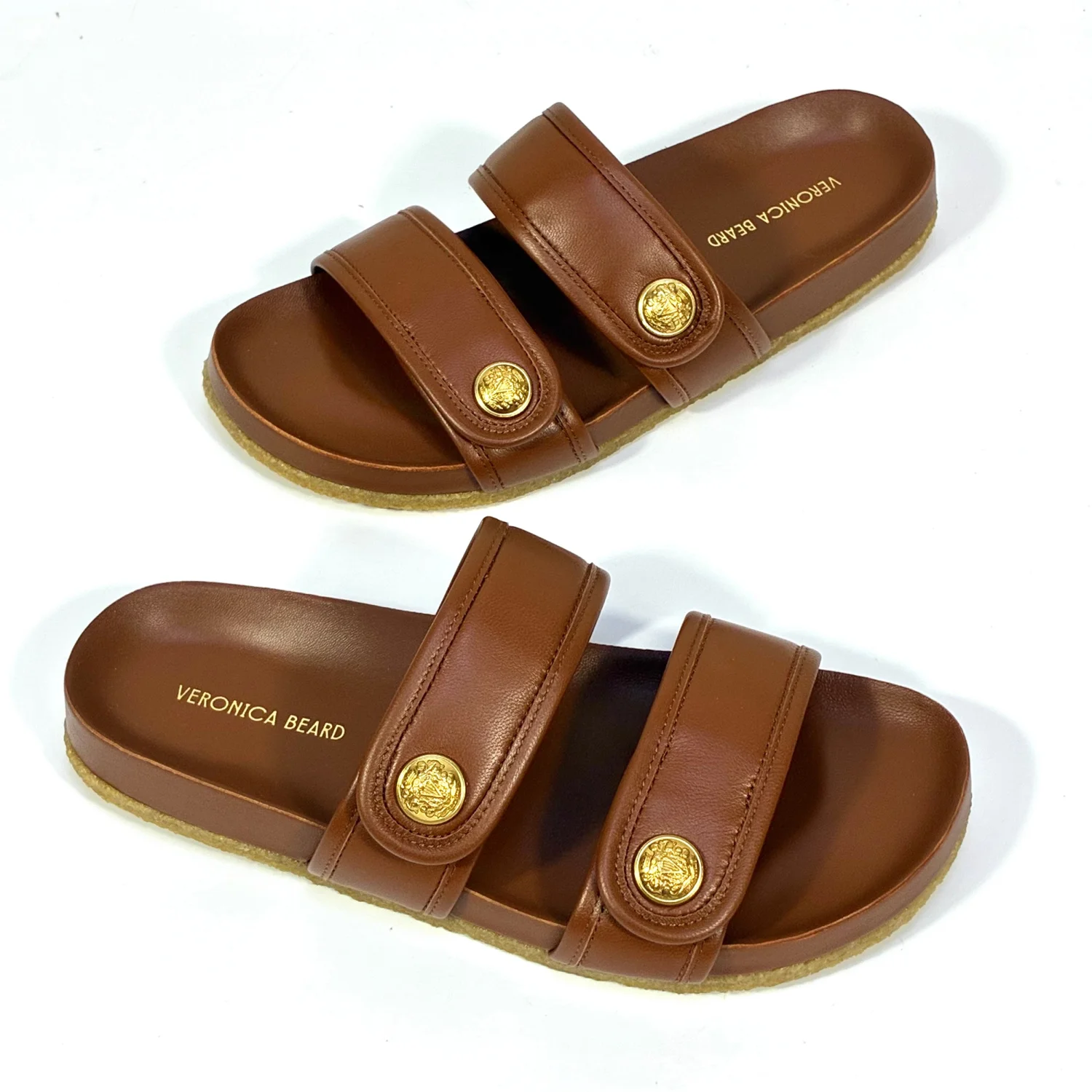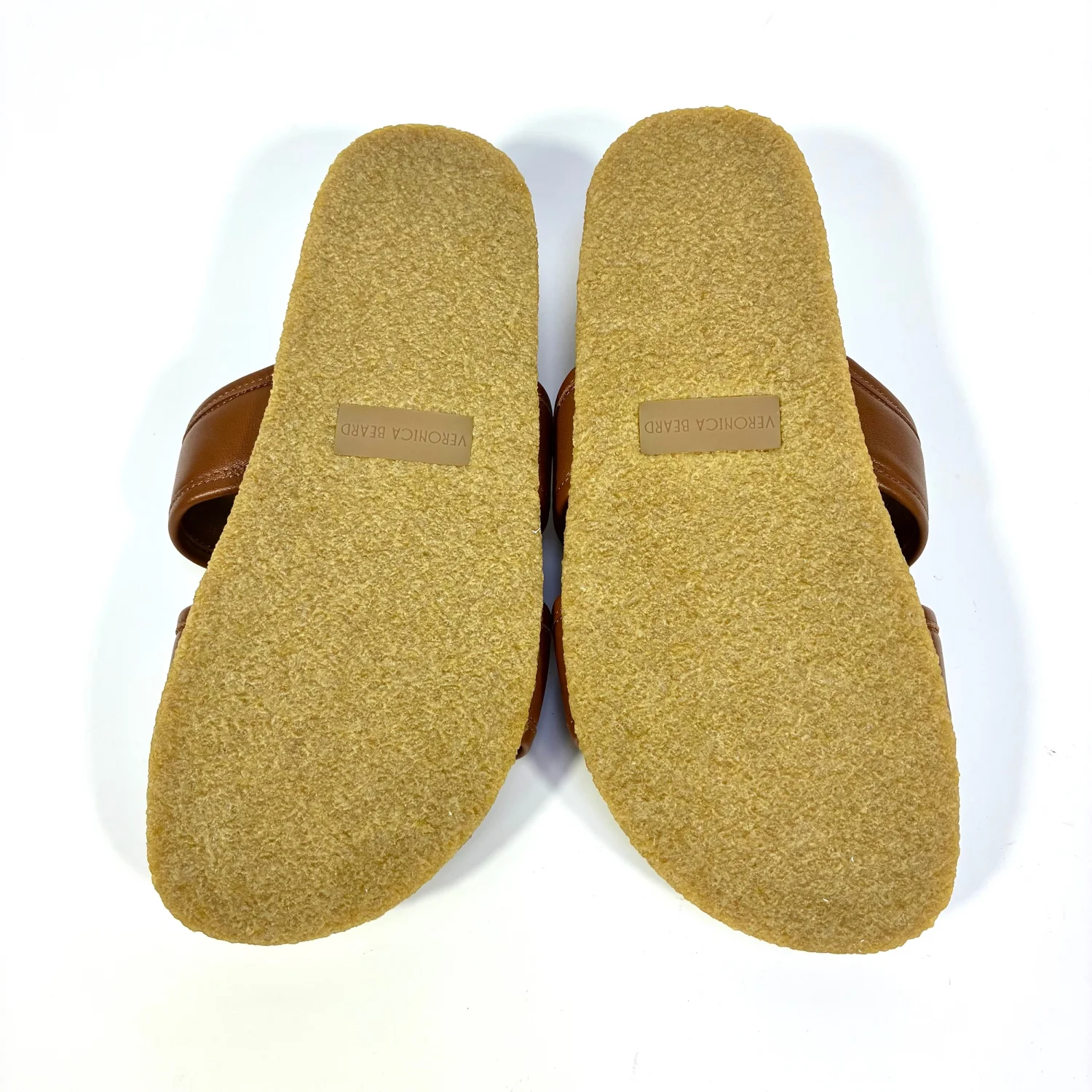 Veronica Beard Percey Leather Slide Sandals Caramel 7 M NEW Summer