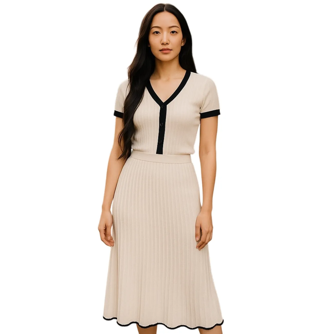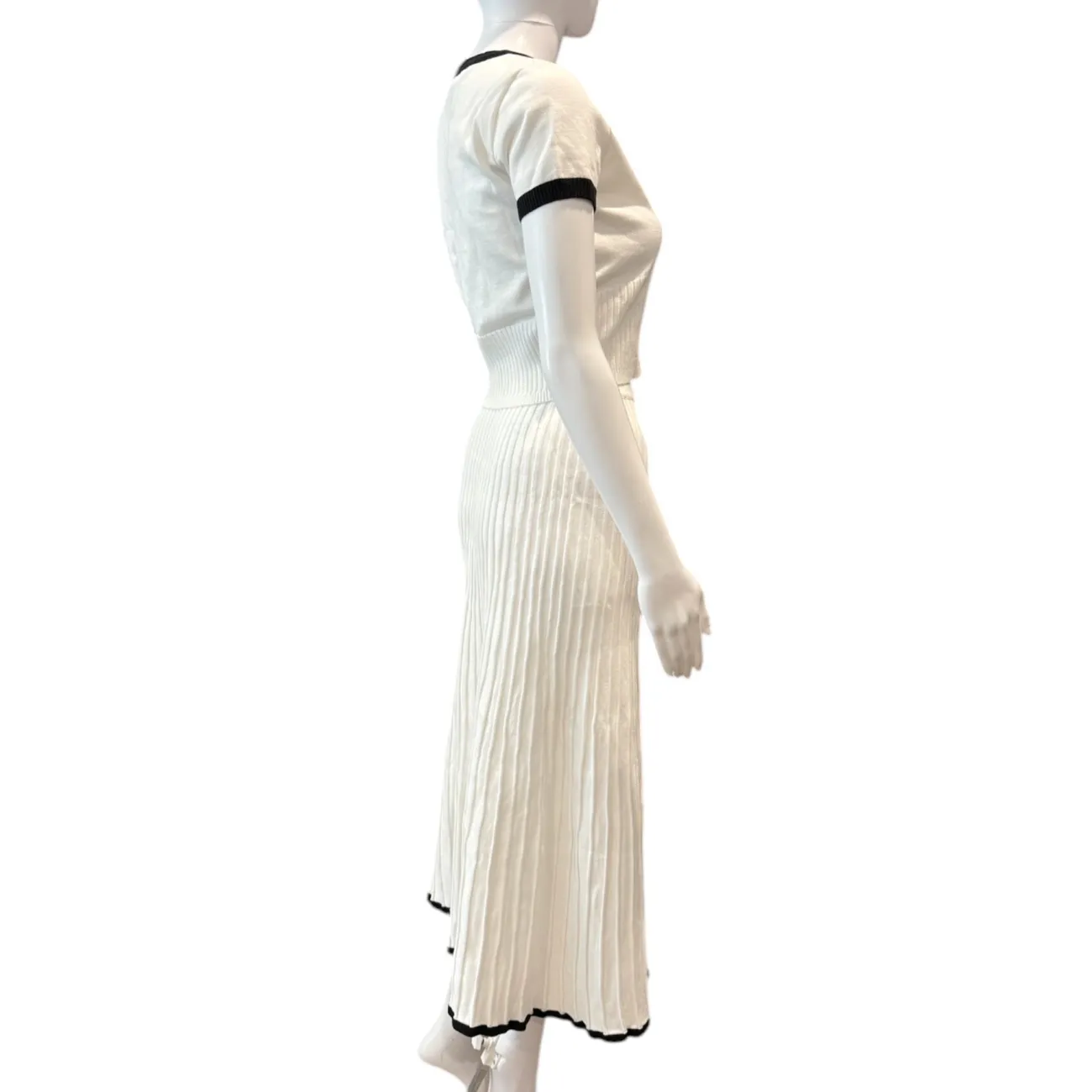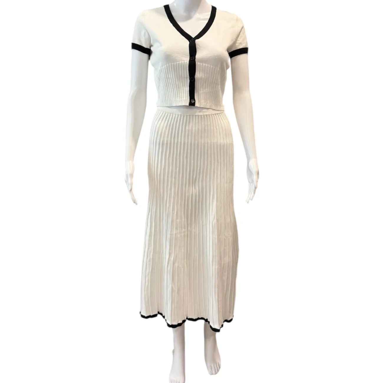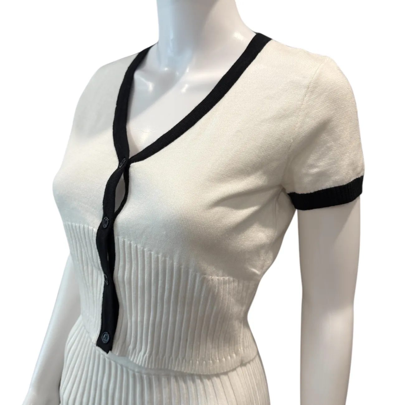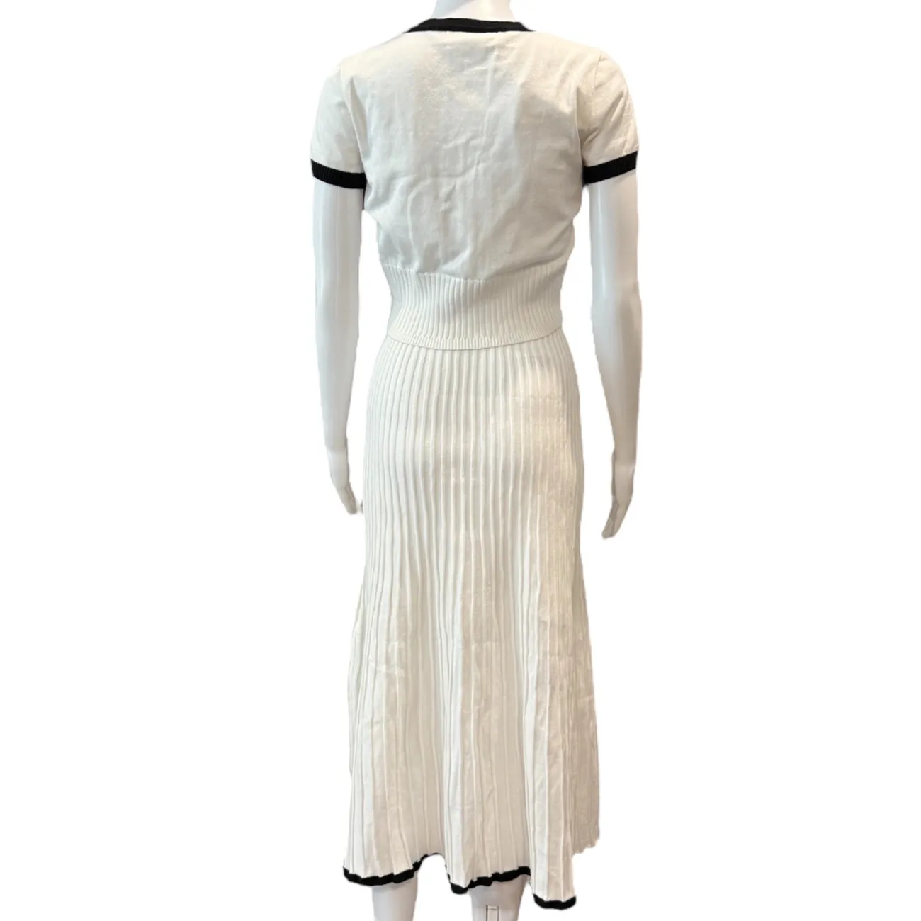 Elegant White Ribbed Knit Two-Piece Set with Black Trim - Sz. S, Juniors - NWT