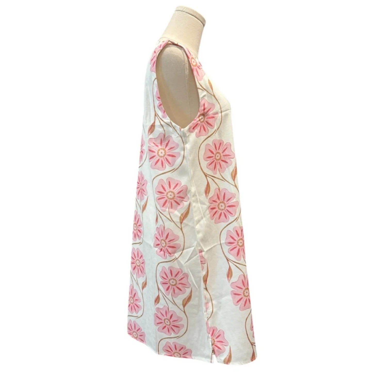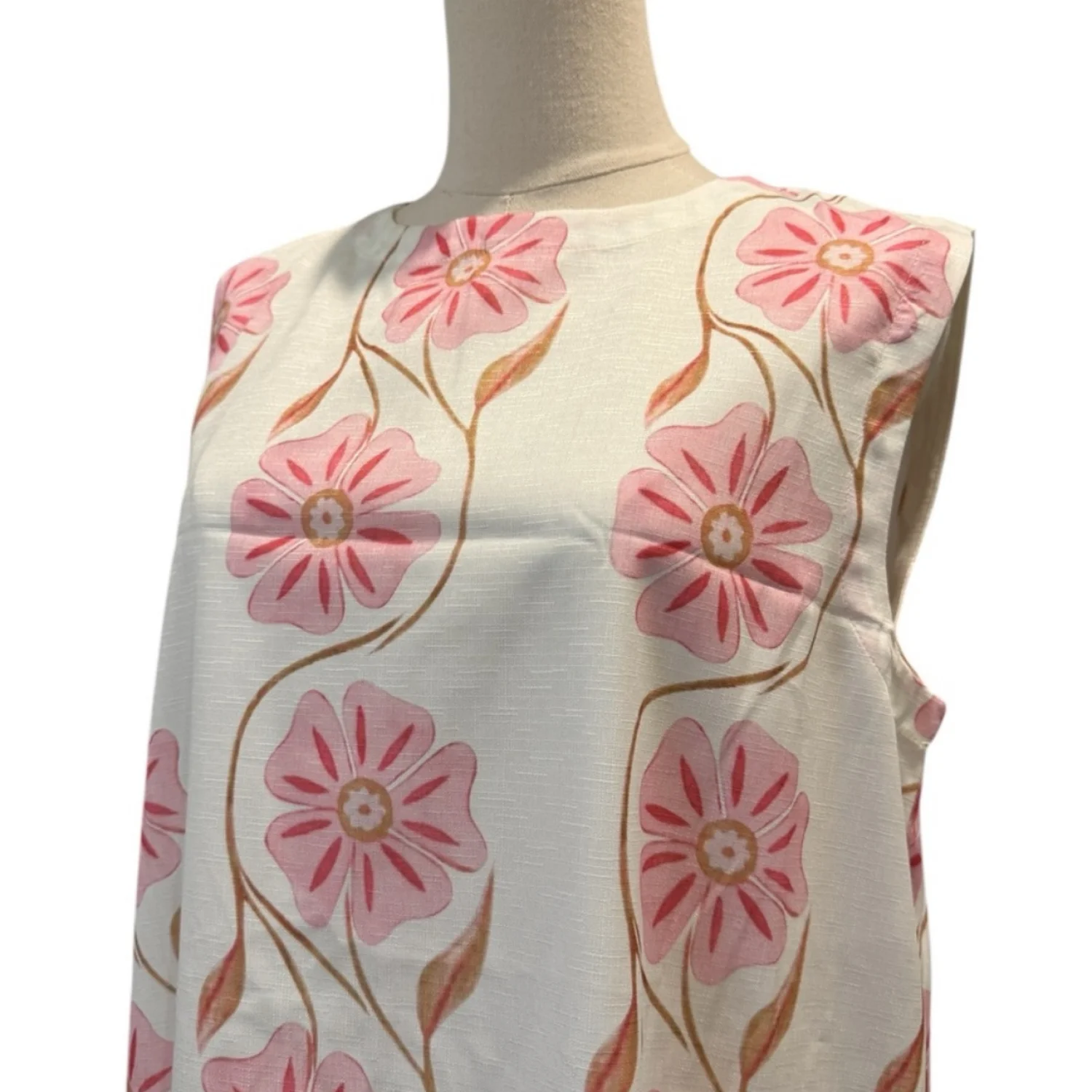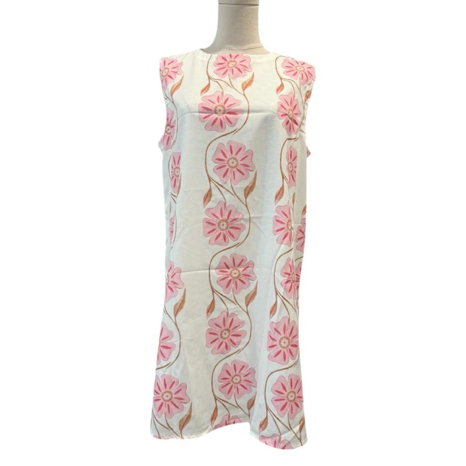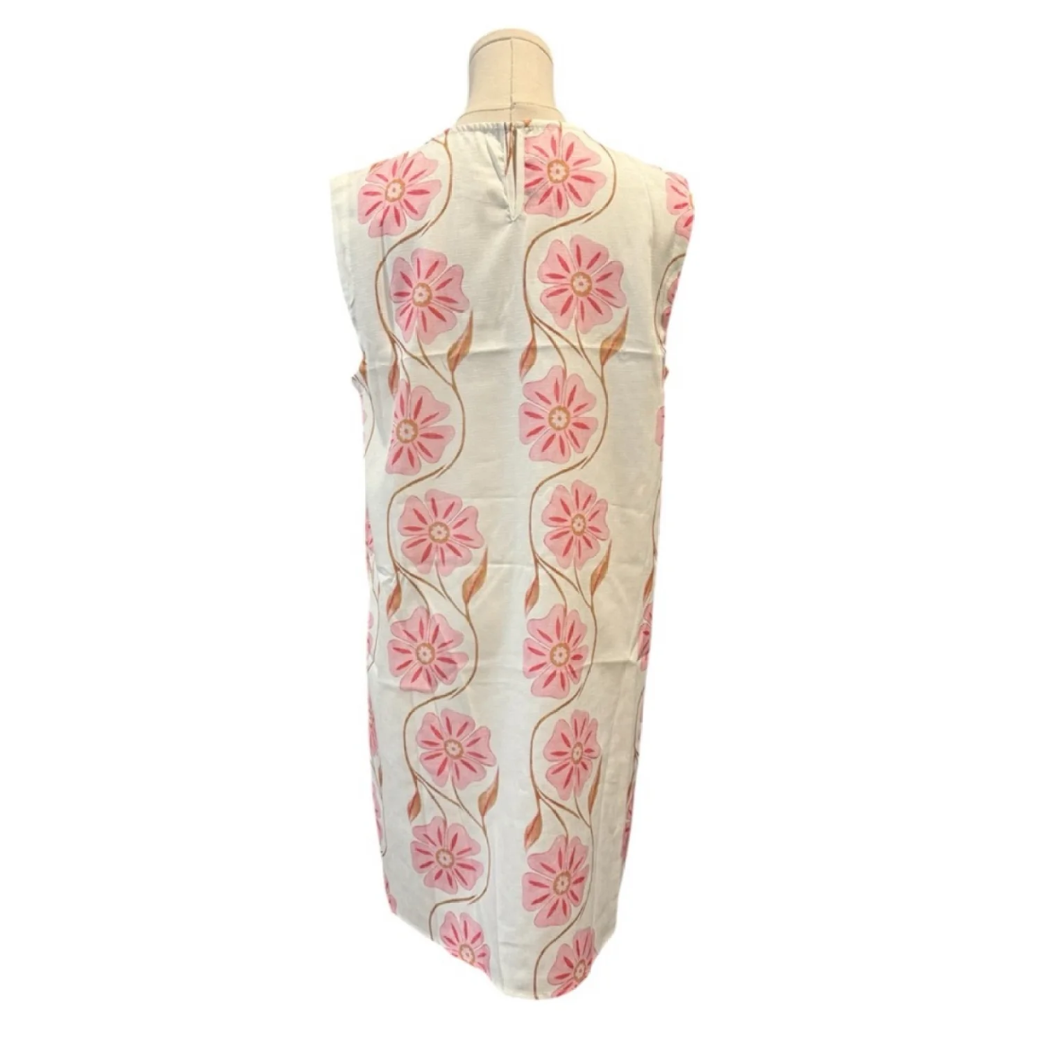 Ivory Sleeveless Shift Dress with Pink Floral Motif - Sz. Large NWT