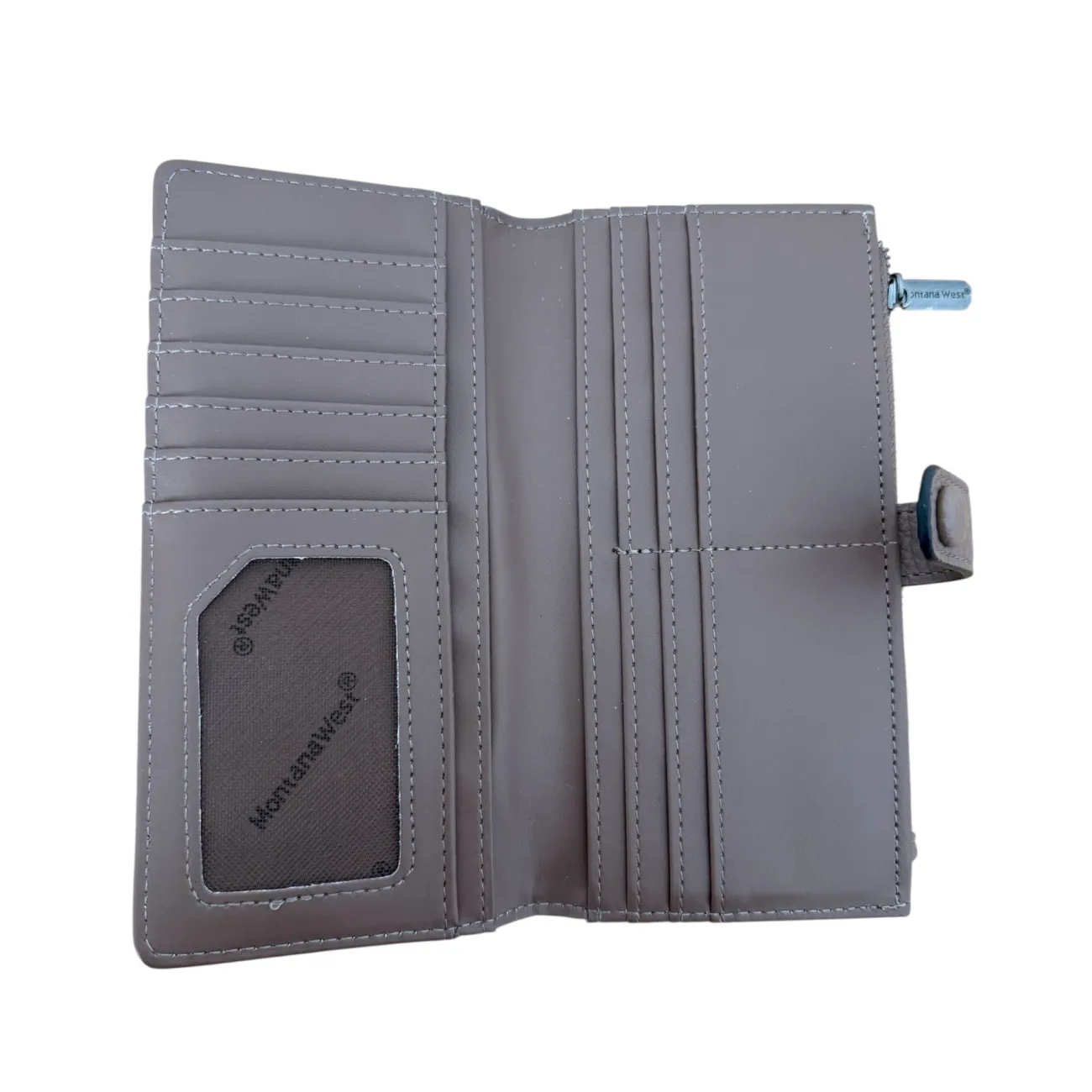 This Montana West wallet is crafted from quality brown leather with a textured finish. It features multiple card slots, a transparent ID window, and a secure zippered compartment for coins. The wallet folds shut with a snap button clasp, ensuring your essentials are kept safe. Perfect for everyday use, balancing functionality with a sleek design. #wallet #leather • Taupe pebbled faux leather • Snap button closure • Zippered coin compartment • Multiple card slots and ID window • Slim, rectangular profile • Measurements: 7 1/2” L x 4” H ••REASONABLE OFFERS ARE WELCOMED••