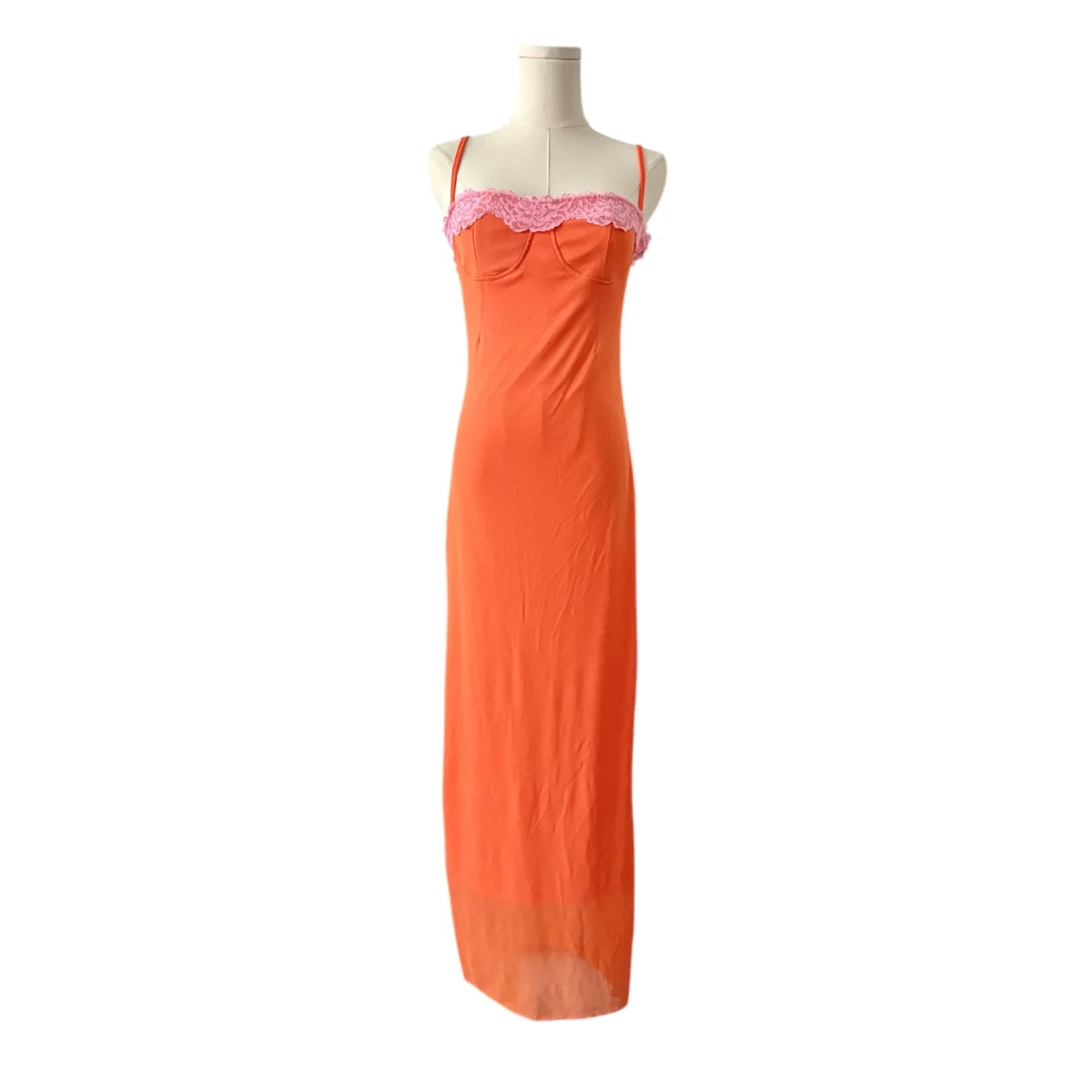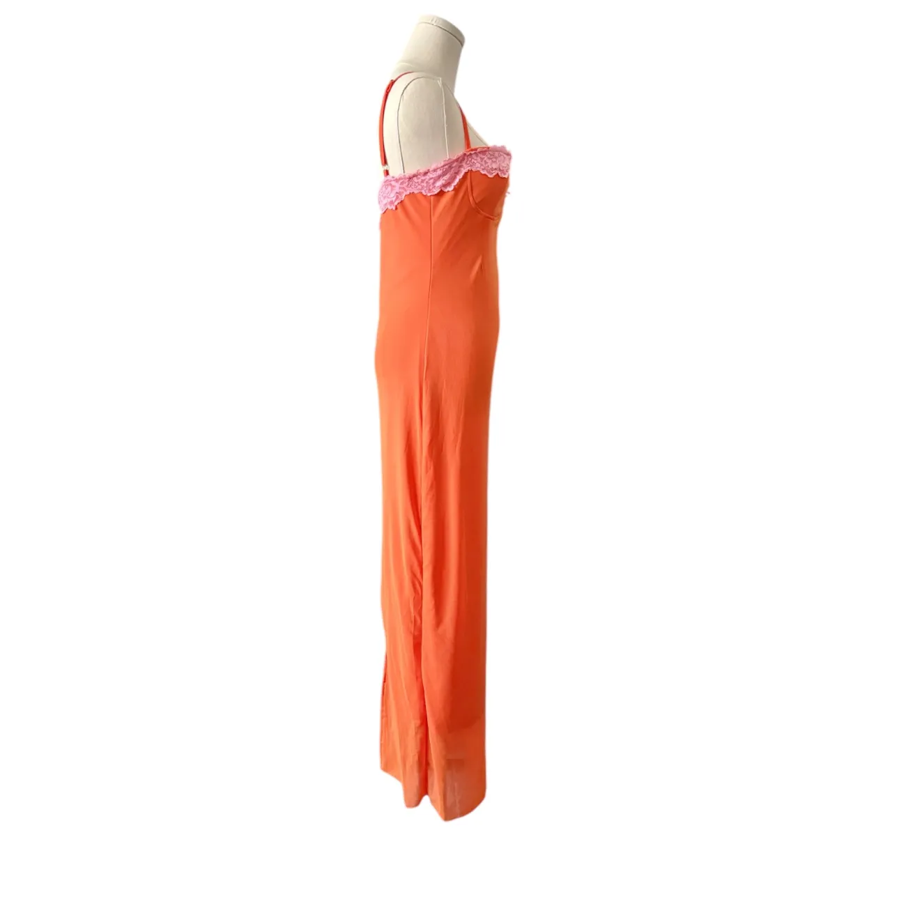 Orange Maxi Dress with Pink Lace Trim and Slim Fit - Sz. Large, Women’s Reg - NWT