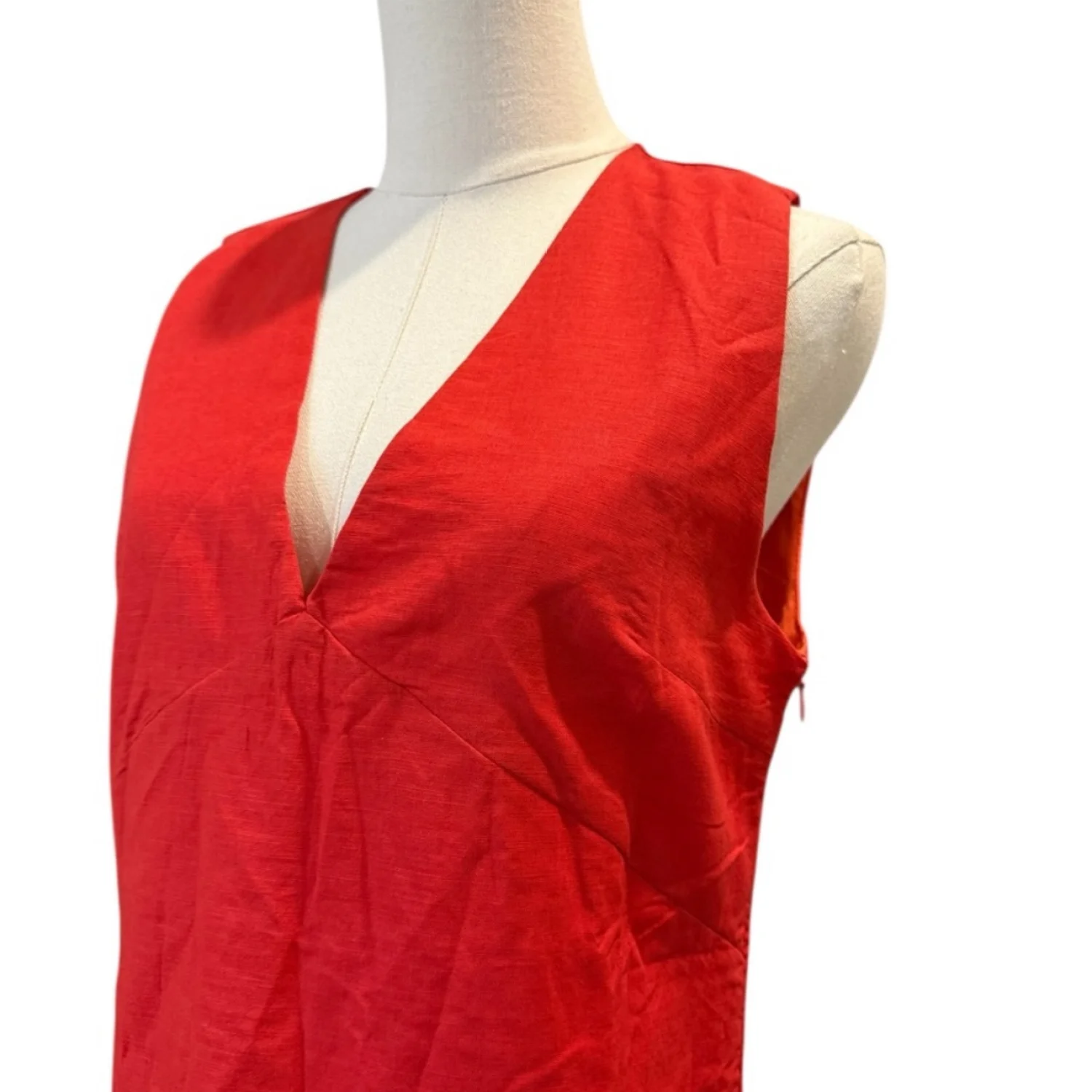 Red Sleeveless V-Neck Dress With Elegant Silhouette - Sz. Medium, Women’s Reg