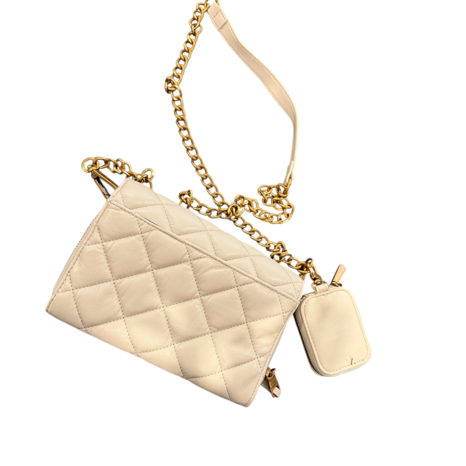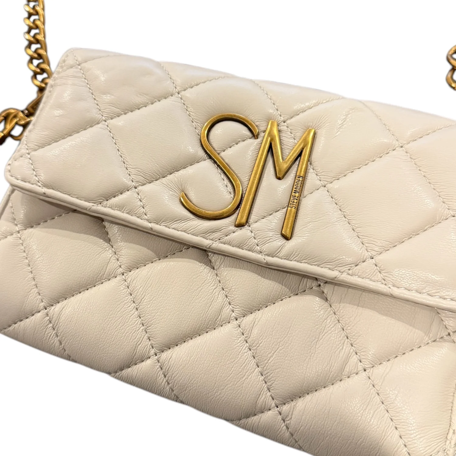 Steve Madden Cream Quilted Leather Crossbody Bag with Gold Chain