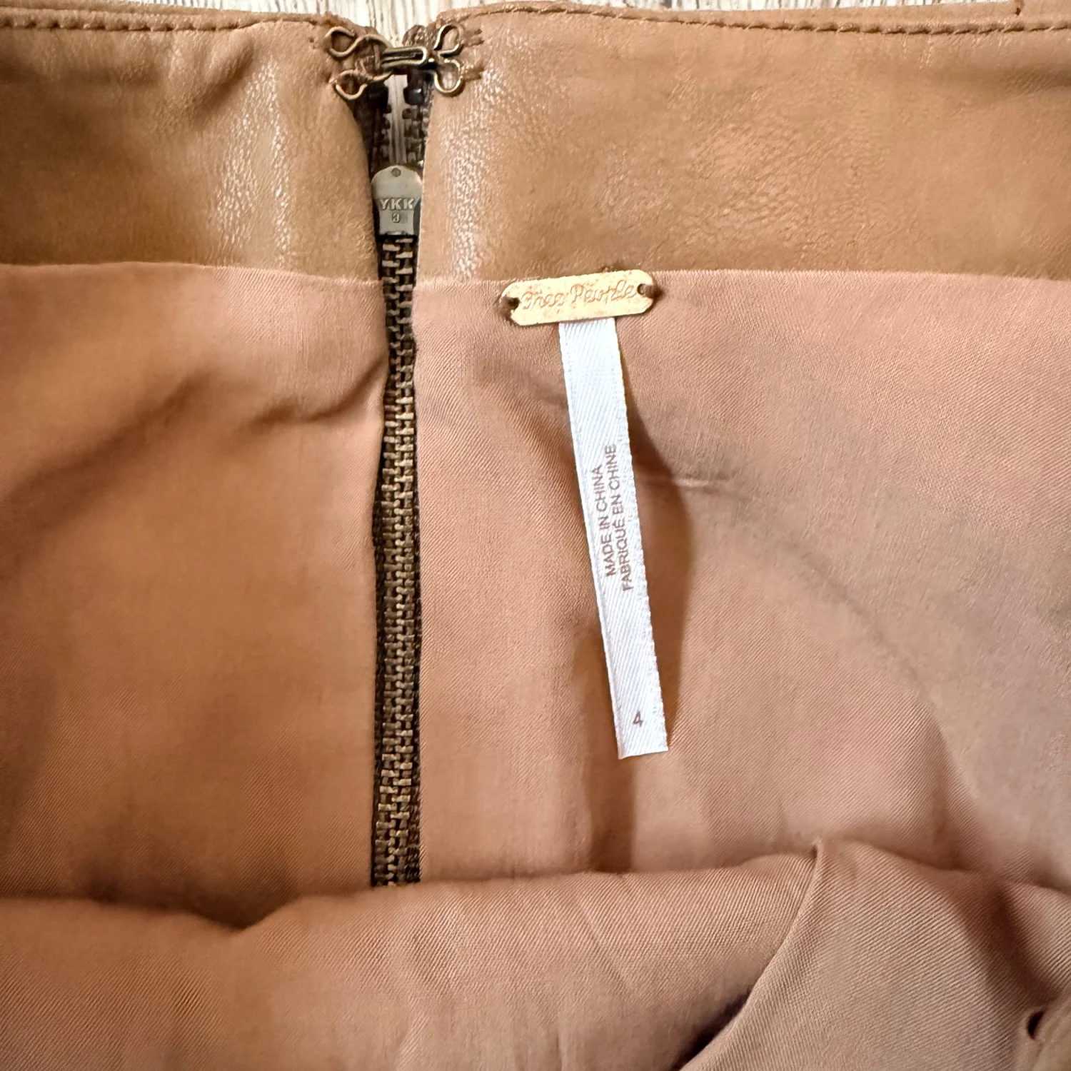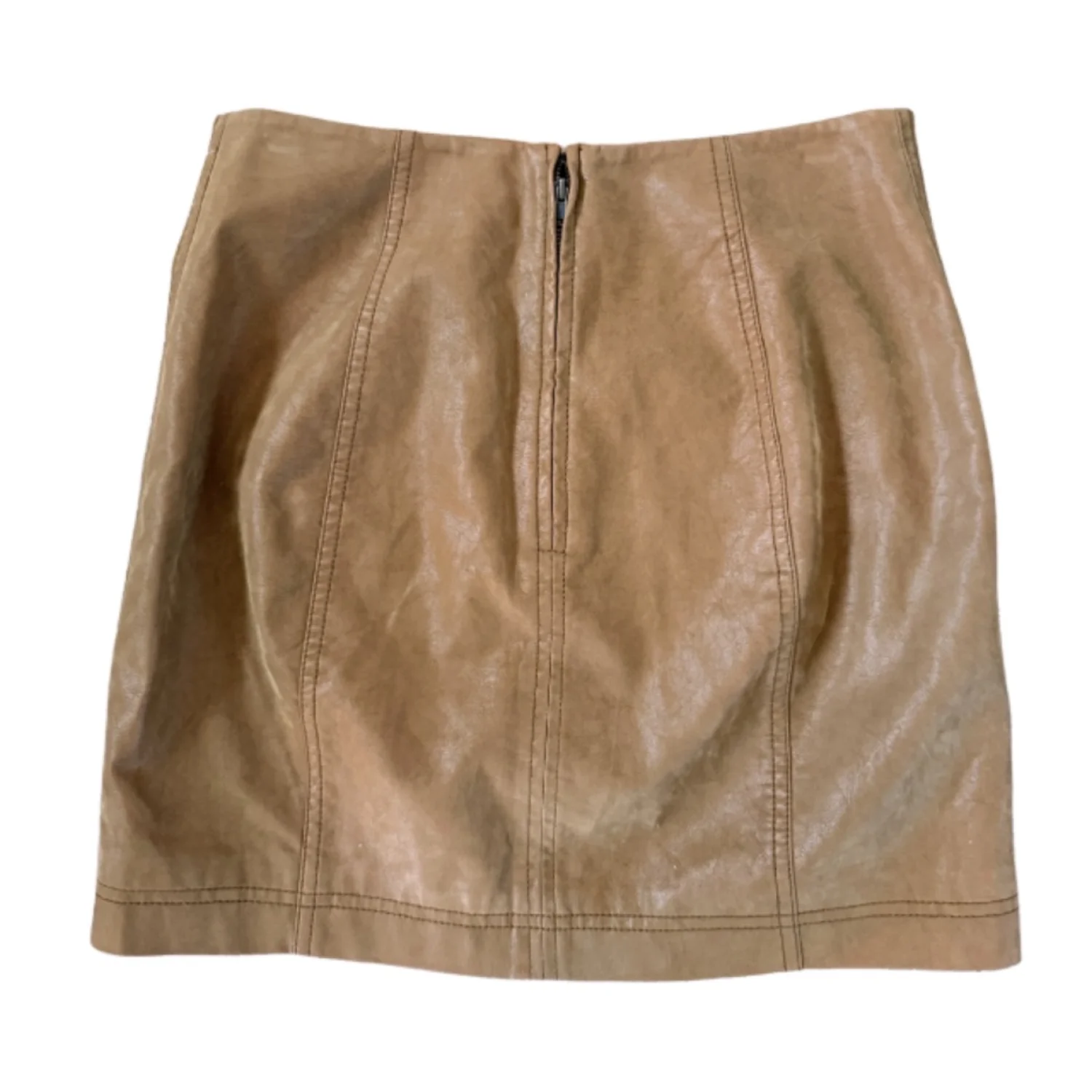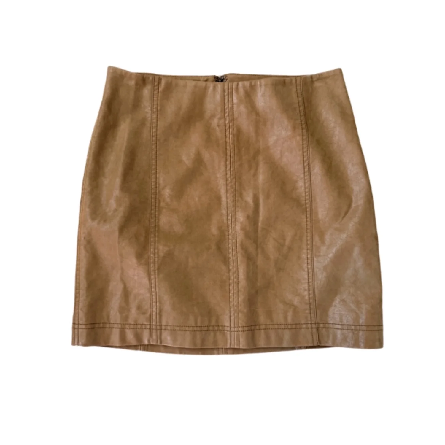 NWT Free People Faux Leather Mini Skirt Size 4 Chestnut Brown Zip Back Closure Lined