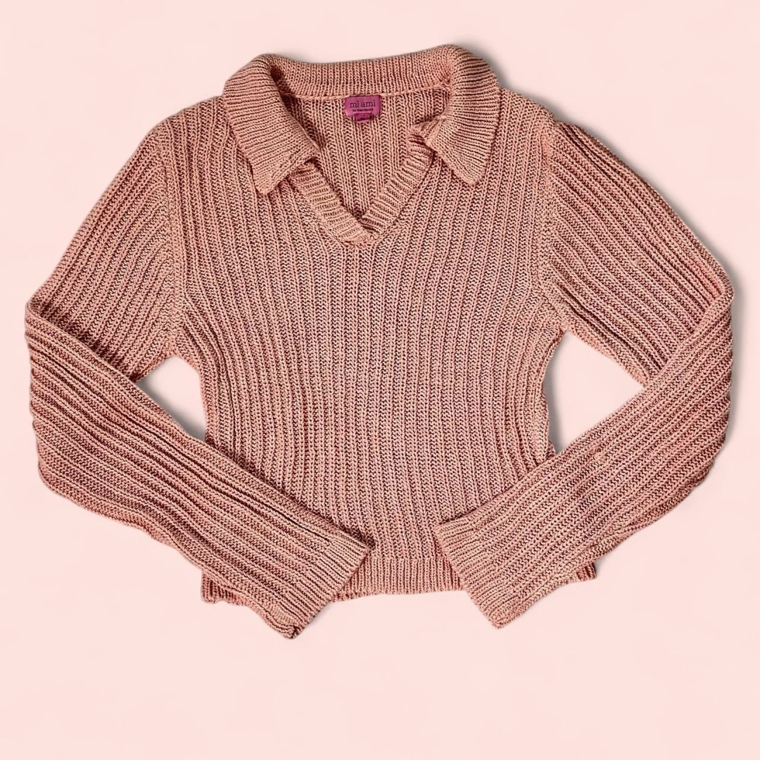 Cozy and cute dusty pink knit sweater by mi ami. Features a chunky ribbed texture, soft feel, and a flattering fitted cut. Perfect for layering in cooler months or wearing solo with high-waisted jeans or a skirt. Size Medium and in great condition! Has a tiny snag on the left sleeve but there is no rip or other imperfections, just super cozy and ready to wear. A must-have for soft, feminine wardrobe vibes! Size M but can also fit size S